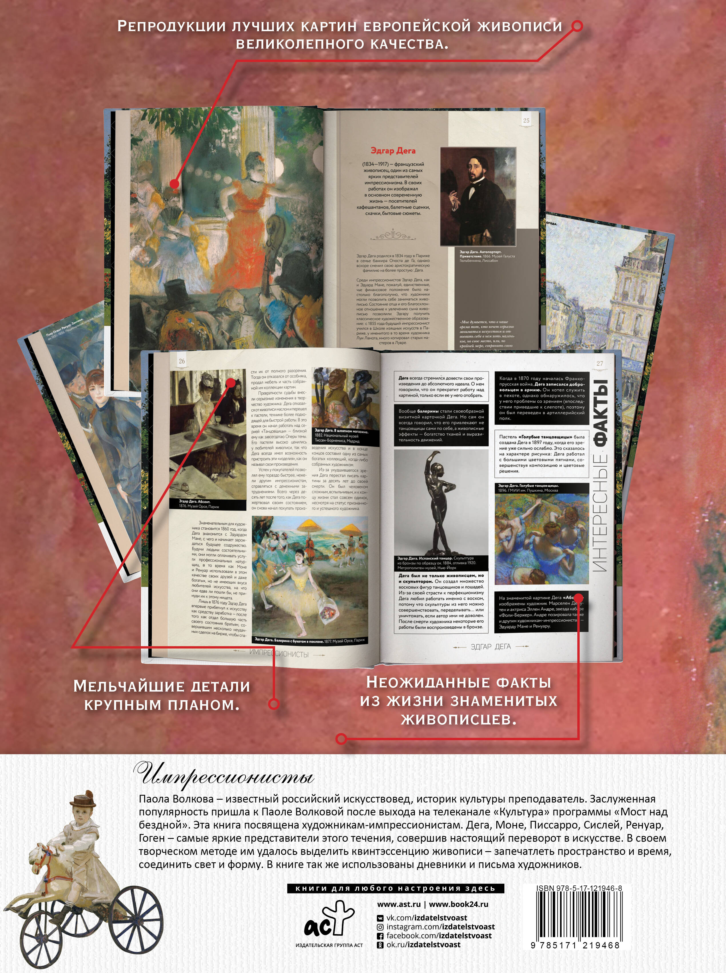 Богато иллюстрированное издание, посвященное твочеству художников- импрессионистов. В книгу вошли самые интересные лекции знаменитого искусствоведа Паолы Волковой, посвященные этим художникам, а так же их письма и дневники.| Издательство | Издательство "АСТ" |