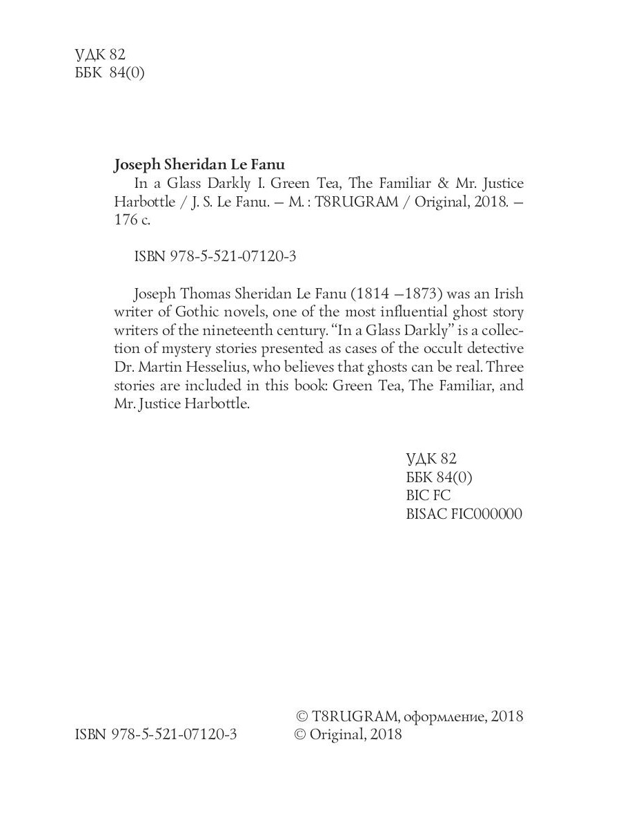 Аннотация: In a Glass Darkly 1. Green Tea, The Familiar & Mr. Justice Harbottle = Сквозь тусклое стекло 1: на англ.яз