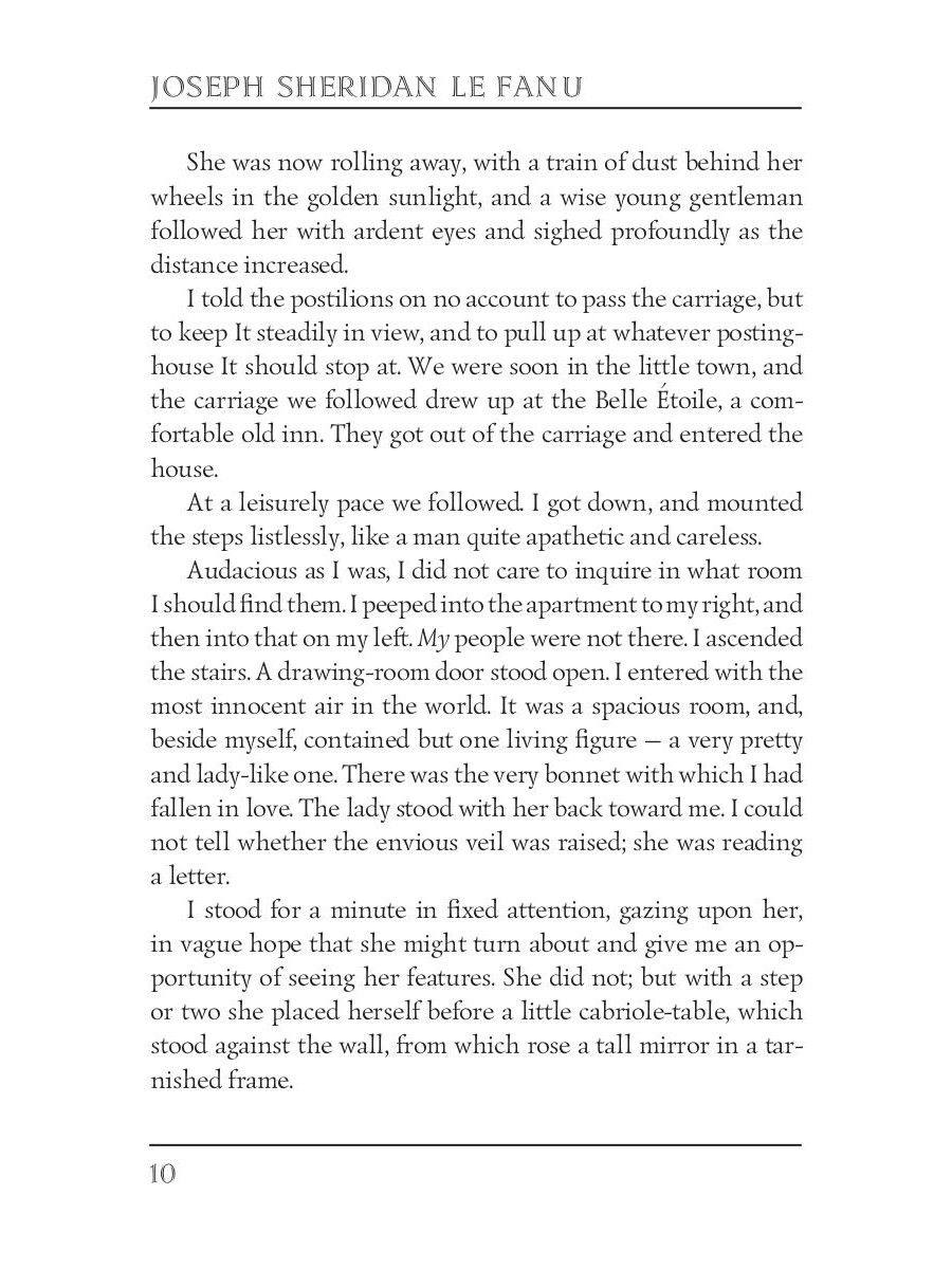 Joseph Thomas Sheridan Le Fanu (1814 -1873) was an Irish writer of Gothic novels, one of the most influential ghost story writers of the nineteenth century. Filled with mystery and gothic horror elements, "The Room in the Dragon Volant" takes place in post-Napoleonic Wars France. Young Englishman Richard Beckett falls in love with the mysterious Countess. To be closer to her, he takes a room in the "Dragon Volant" inn, which has a rather nasty reputation.