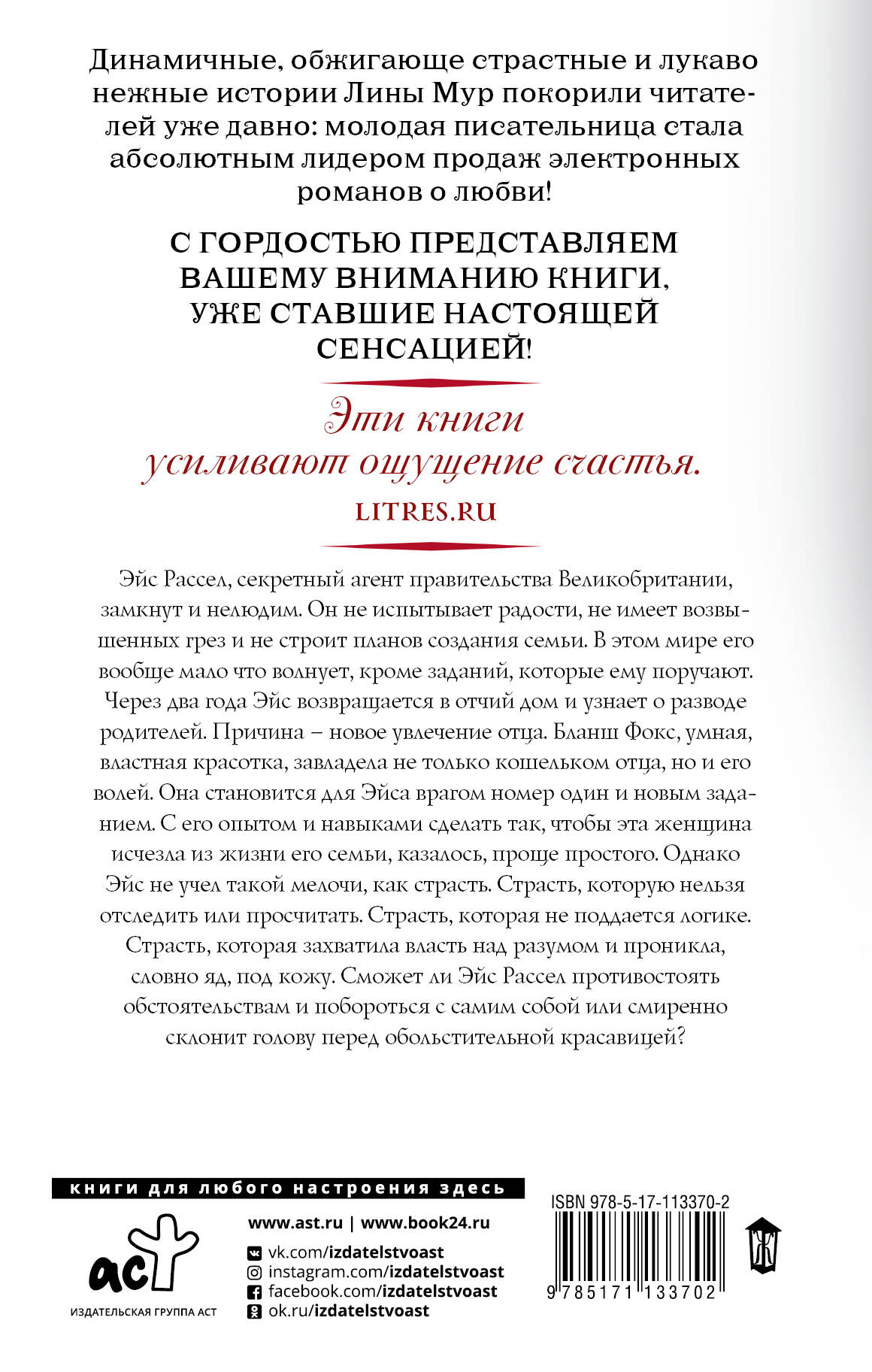 Эйс Рассел, секретный агент правительства Великобритании, замкнут и нелюдим. Он не испытывает радости, не имеет возвышенных грез и не строит планов создания семьи. В этом мире его вообще мало что волнует, кроме заданий, которые ему поручают. Через два года Эйс возвращается в отчий дом и узнает о разводе родителей. Причина - новое увлечение отца. Бланш Фокс, умная, властная красотка, завладела не только кошельком отца, но и его волей. Она становится для Эйса врагом номер один и новым заданием. С его опытом и навыками сделать так, чтобы эта женщина исчезла из жизни его семьи, казалось проще простого. Однако Эйс не учел такой мелочи, как страсть. Страсть, которую нельзя отследить или просчитать. Страсть, которая не поддается логике. Страсть, которая захватила власть над разумом и проникла, словно яд, под кожу. Сможет ли Эйс Рассел противостоять обстоятельствам и побороться с самим собой или смиренно склонит голову перед обольстительной красавицей?| Издательство | ИЗДАТЕЛЬСТВО "АСТ" |