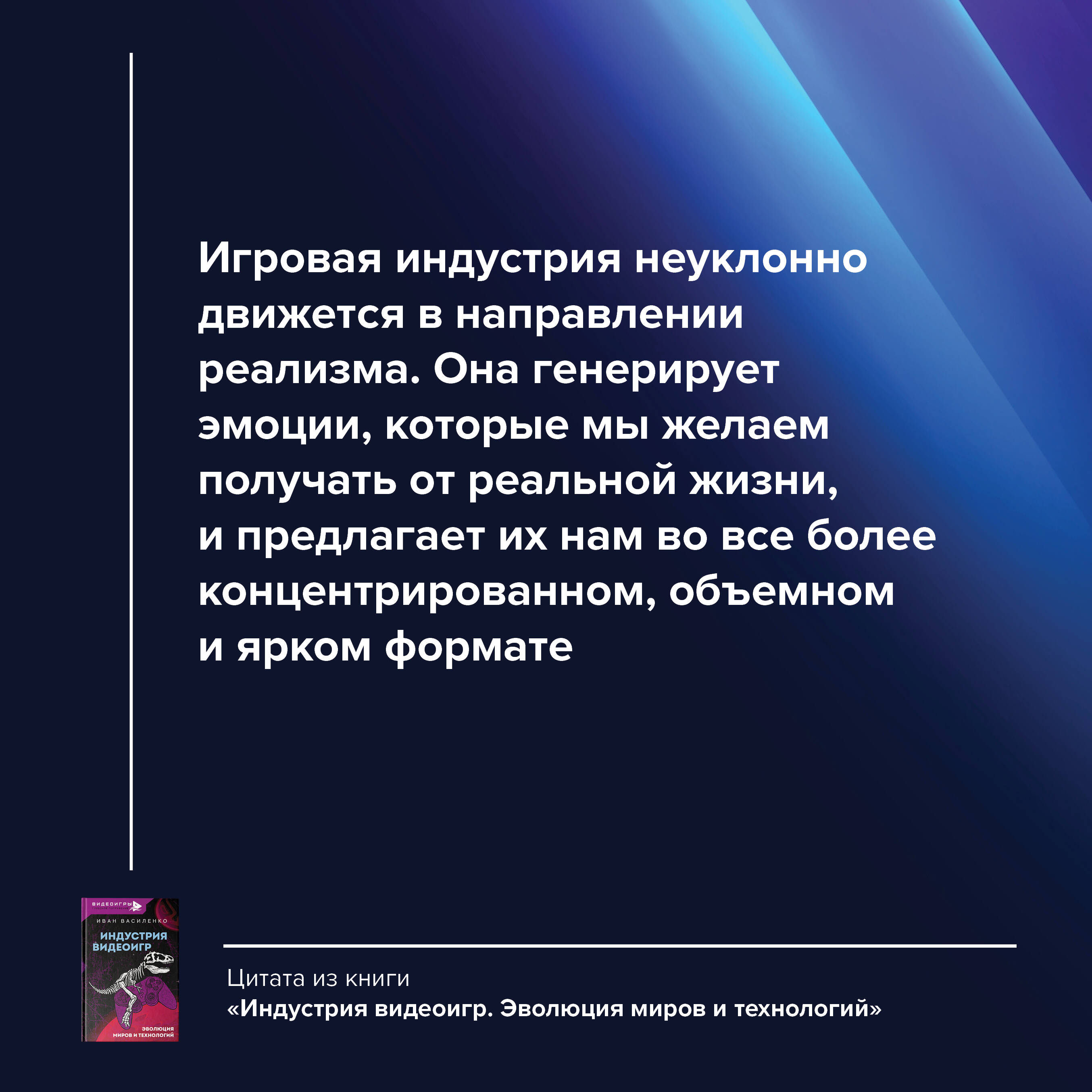 Что такое видеоигры? Мы все знаем, как они выглядят сейчас, но кто помнит, что предшествовало всему с самого начала? Действительно ли они лишь развлечение или это что-то более серьезное? Путь этой индустрии был трудным и долгим, а споры вокруг нее не утихают и по сей день.Руководитель Youtube канала GSTV, Иван Василенко, расскажет вам, что же на самом деле представляют из себя компьютерные игры и их создатели. Для того, чтобы это понять, следует проследить весь путь от начала и до нынешних дней. Из книги "Индустрия видеоигр. Эволюция миров и технологий" вы узнаете: - Как и зачем появился DOOM; - Почему BioShock не для Голливуда, а нечто большее; - Что превратило Кодзиму в гения; - Почему Mass effect стала культовой игрой. И многое другое! Добро пожаловать в новую реальность. Все, что стоит знать об этой индустрии, написано здесь.| Издательство | ИЗДАТЕЛЬСТВО "АСТ" |