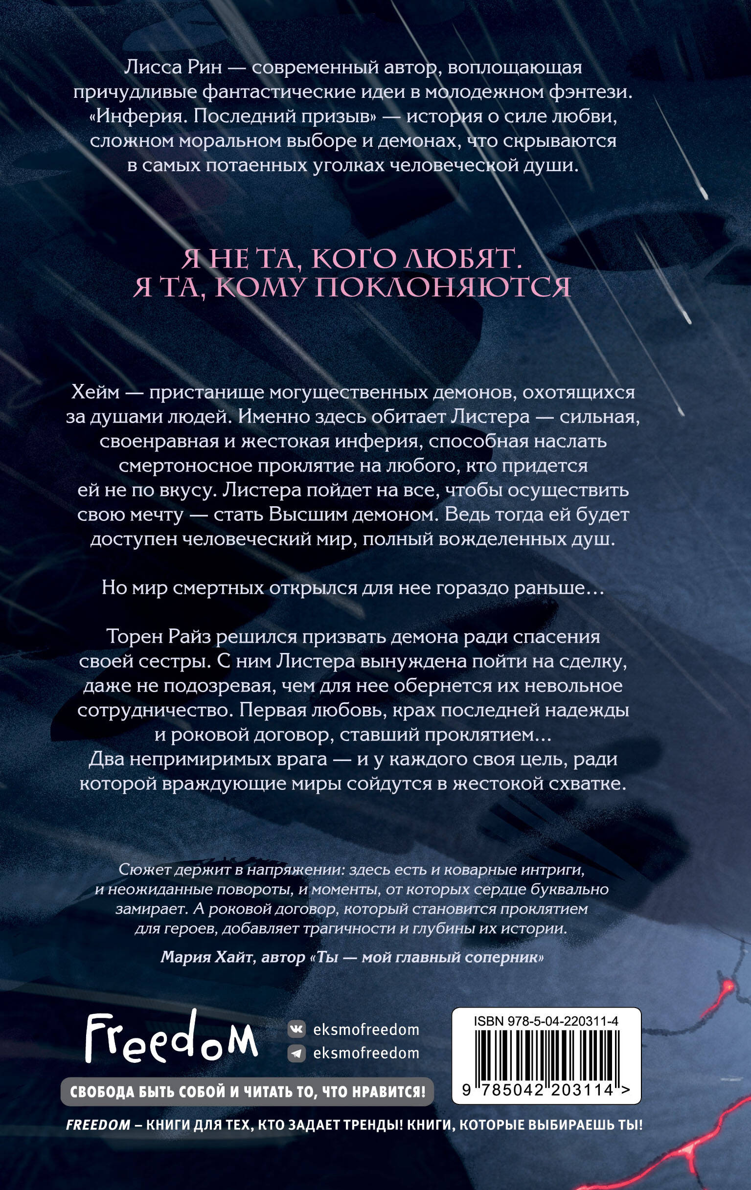 Новинка городского фэнтези! Внутри книги вас ждут: серая мораль, захватывающий сюжет с детективными нотками и непредсказуемым, напряженным финалом, вынужденное сотрудничество, от неприязни до любви, дерзкая и хитрая героиня-демон! Листера - сильная, своенравная и жестокая инферия, способная наслать смертоносное проклятие на любого, кто придется ей не по вкусу. Именно ее привязывает к себе Торен Райз, решившийся призвать демона ради спасения сестры. Листера и Торен заключают сделку, но чем обернется их невольное сотрудничество, покажет только время… Фильм «Константин» встречается с «Орудиями смерти» в захватывающем противостоянии людей и демонов!| Издательство | ООО "Издательство "Эксмо" |