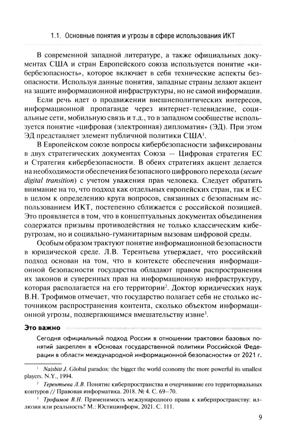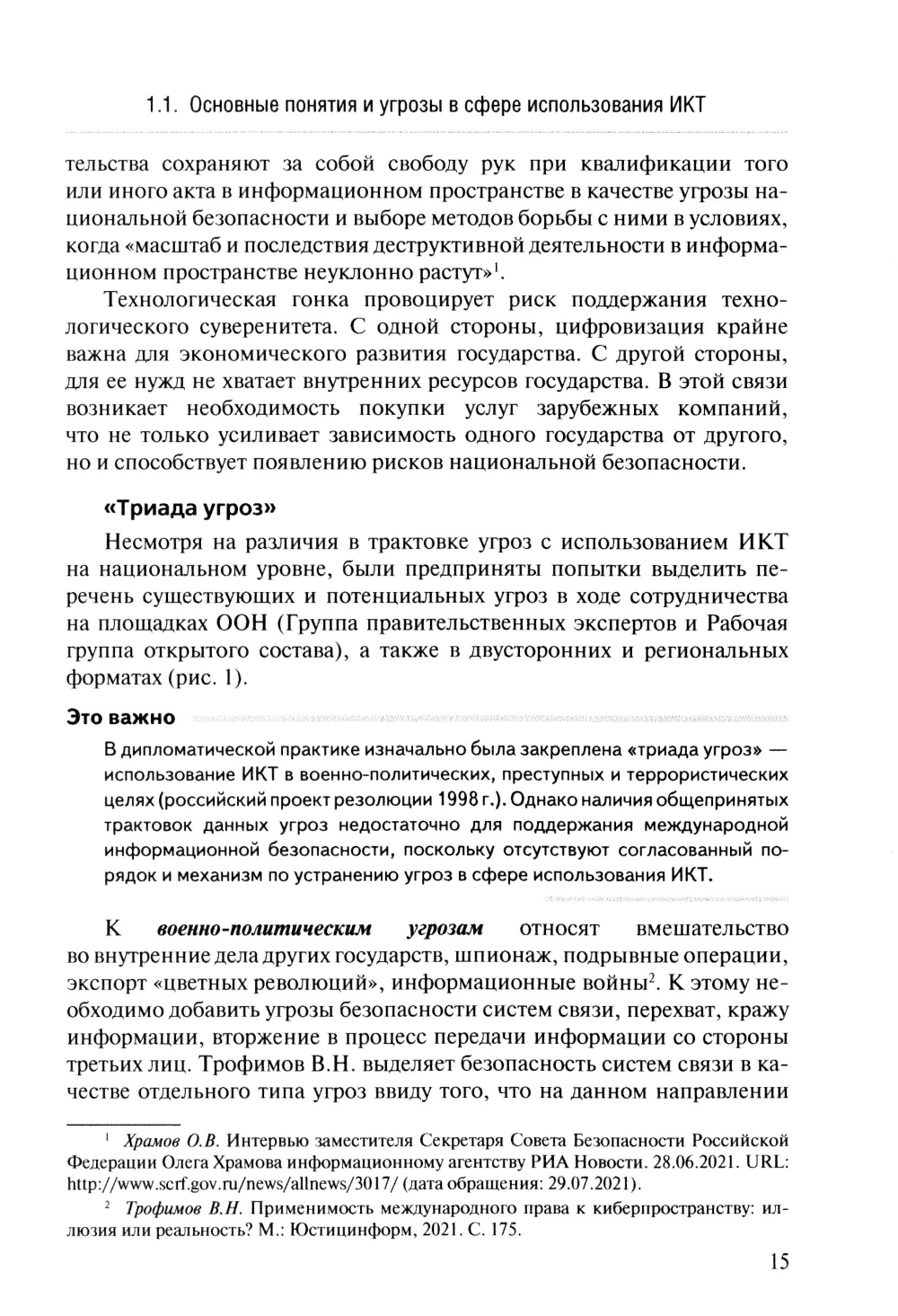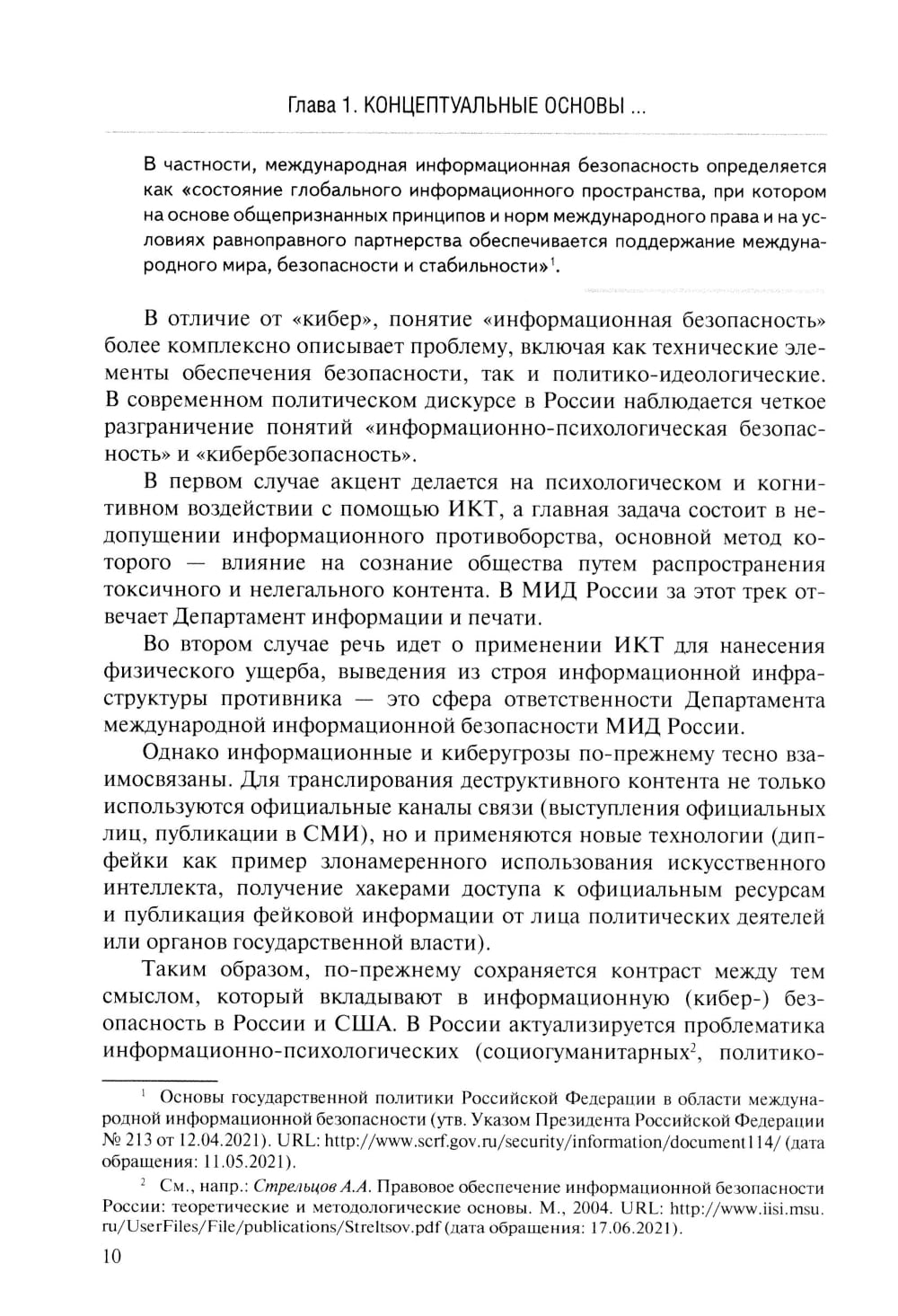 В монографии рассмотрена проблематика международной информационной безопасности (угрозы, механизмы и форматы сотрудничества по противодействию им) в исторической ретроспективе. С целью выявления препятствий развития международного сотрудничества проводится анализ американского, европейского и российского подходов в данной области. Отдельно рассматриваются «дружественные партнерства» России в двустороннем и региональном форматах. В исследовании представлена эволюция, а также текущее состояние и перспективы реализации основ политики России в сфере международной информационной безопасности с учетом геополитической трансформации в условиях перехода к многополярному мироустройству. Для специалистов в области международных отношений, студентов гуманитарных и технических вузов и для всех интересующихся проблематикой международной информационной безопасности.