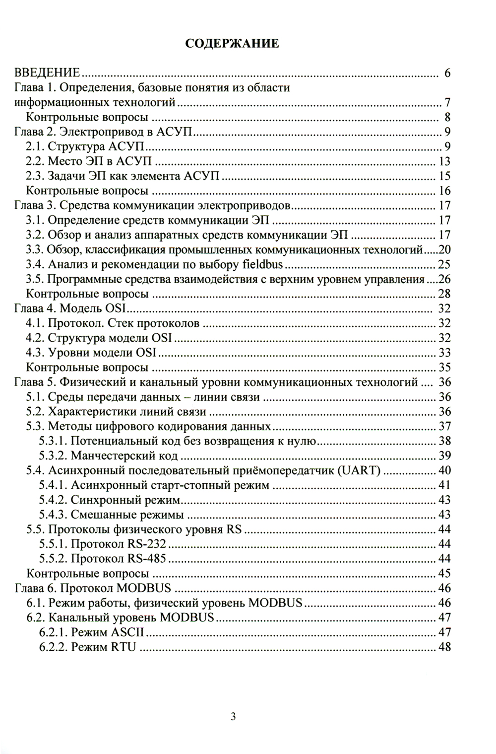 Содержит основные сведения по автоматизированным системам управления предприятием и указывает место электропривода в этих системах. Представлены классификация и сравнительный анализ средств коммуникации электроприводов. Описаны физический, канальный и прикладной уровни основных коммуникационных технологий, применяемых в электроприводах. Контрольные вопросы в конце каждого раздела предполагают не краткий фактологический ответ, а осмысление и анализ представленного материала читателем. Для студентов направления 14.06.00, изучающих курсы «Информационные технологии в электроприводе». «Компьютерное и микропроцессорное управление в электроприводе», «Микроконтроллеры в системах управления электроприводами», «Прикладное программирование и автоматизированные системы научных исследований в электротехнике». Может использоваться при изучении курсов «Электропривод в современных технологиях» и «Системы автоматизации технологических процессов».| Издательство | Инфра-Инженерия |