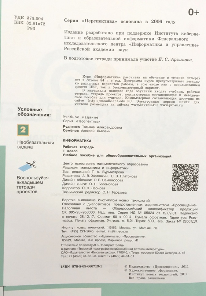Линия УМК «Семёнов А.Л.» (1-4 классы) (Перспектива). Рабочая тетрадь предназначена для работы в школе и дома. Она содержит систему упражнений и практических заданий курса «Информатика».