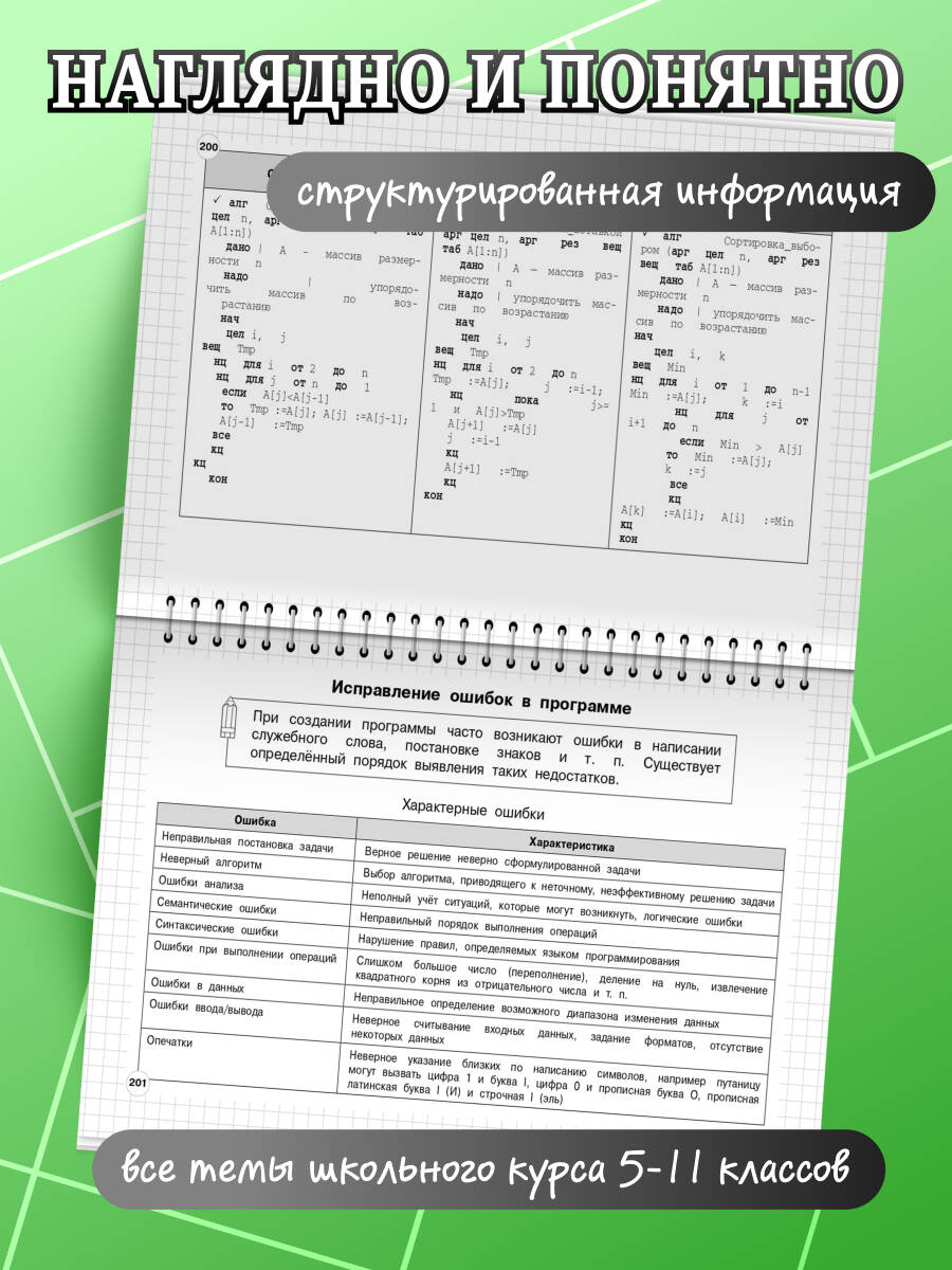 Наглядные таблицы - это самый эффективный способ подачи информации для быстрого усвоения материала в условиях дефицита времени! Благодаря альбомной ориентации работать с таблицами будет ещё удобнее. В пособии представлены основные разделы школьного курса информатики за 5-11 классы: «Информация и информационные процессы», «Средства ИКТ», «Алгоритмизация и программирование», «Информационная деятельность человека». Школьники найдут много полезного для своего образования, потому что в книге: • более 200 таблиц, которые особо важны на этапе осмысления законов, правил, понятий, а также при закреплении изученного материала; • схемы и рисунки, которые активизируют зрительную память; • вся информация изложена кратко и понятно; • теория чётко систематизирована: ученик без труда найдёт ответ на интересующий его вопрос; • к таблицам приводятся комментарии, которые дополняют и поясняют материал. Справочник станет незаменимым помощником учащимся средней и старшей школы при подготовке к контрольным и экзаменам ОГЭ и ЕГЭ по информатике, а также будет полезен учителям для организации работы на уроках.| Издательство | ООО "Издательство "Эксмо" |