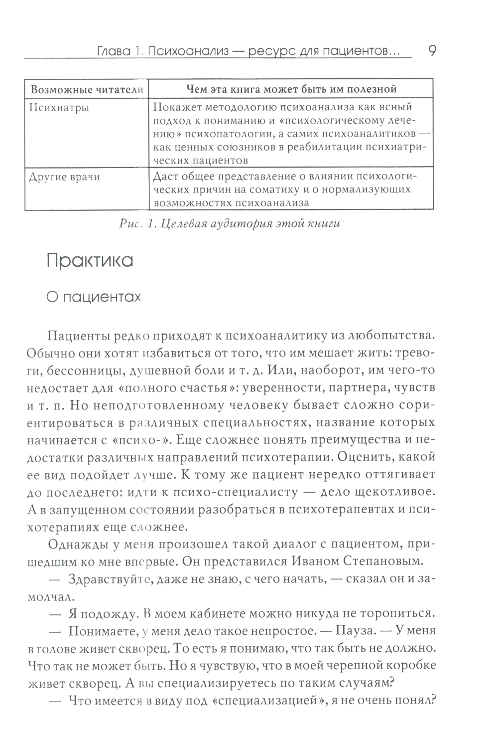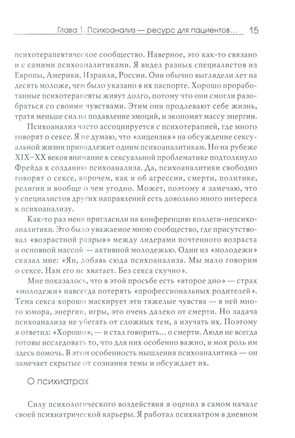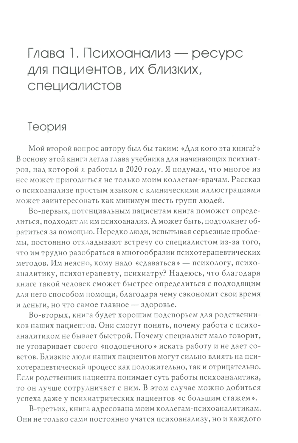 Эта книга познакомит вас с методом Фрейда, и адресована она неискушенному в психоанализе читателю. Нуждающийся в помощи найдет ориентиры, как выбрать «своего психолога» и что будет происходить в терапии. Родственник клиента увидит, чем он может помочь в этом непростом процессе. Врач, особенно психиатр, откроет для себя внушительный ресурс понимания своих пациентов и свежий взгляд на их реабилитацию. Психотерапевт другого направления оценит возможности и ограничения психоанализа. Психоаналитик сможет взять из книги простые формулировки для своих клиентов, которые всегда нуждаются в объяснении: что происходит с его психикой, где искать «корень проблем», когда ожидать результата и т. п.| Издательство | Академический проект |