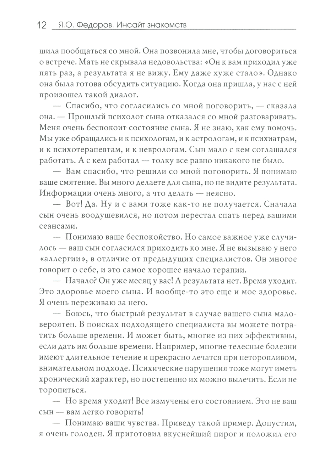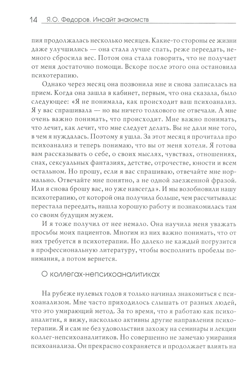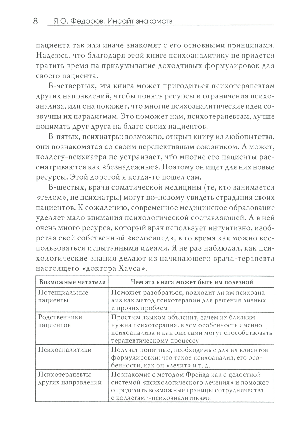 Эта книга познакомит вас с методом Фрейда, и адресована она неискушенному в психоанализе читателю. Нуждающийся в помощи найдет ориентиры, как выбрать «своего психолога» и что будет происходить в терапии. Родственник клиента увидит, чем он может помочь в этом непростом процессе. Врач, особенно психиатр, откроет для себя внушительный ресурс понимания своих пациентов и свежий взгляд на их реабилитацию. Психотерапевт другого направления оценит возможности и ограничения психоанализа. Психоаналитик сможет взять из книги простые формулировки для своих клиентов, которые всегда нуждаются в объяснении: что происходит с его психикой, где искать «корень проблем», когда ожидать результата и т. п.| Издательство | Академический проект |