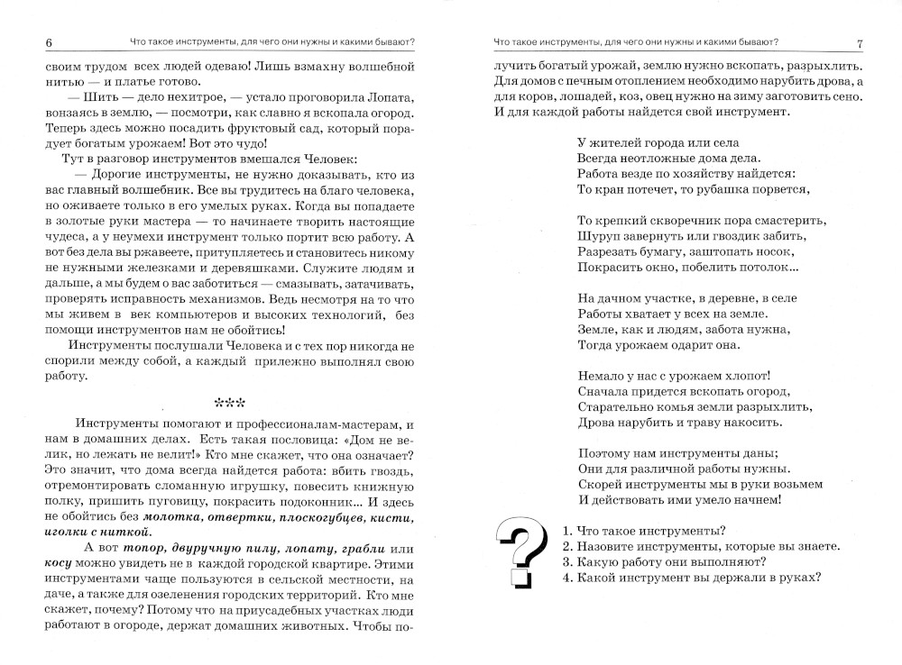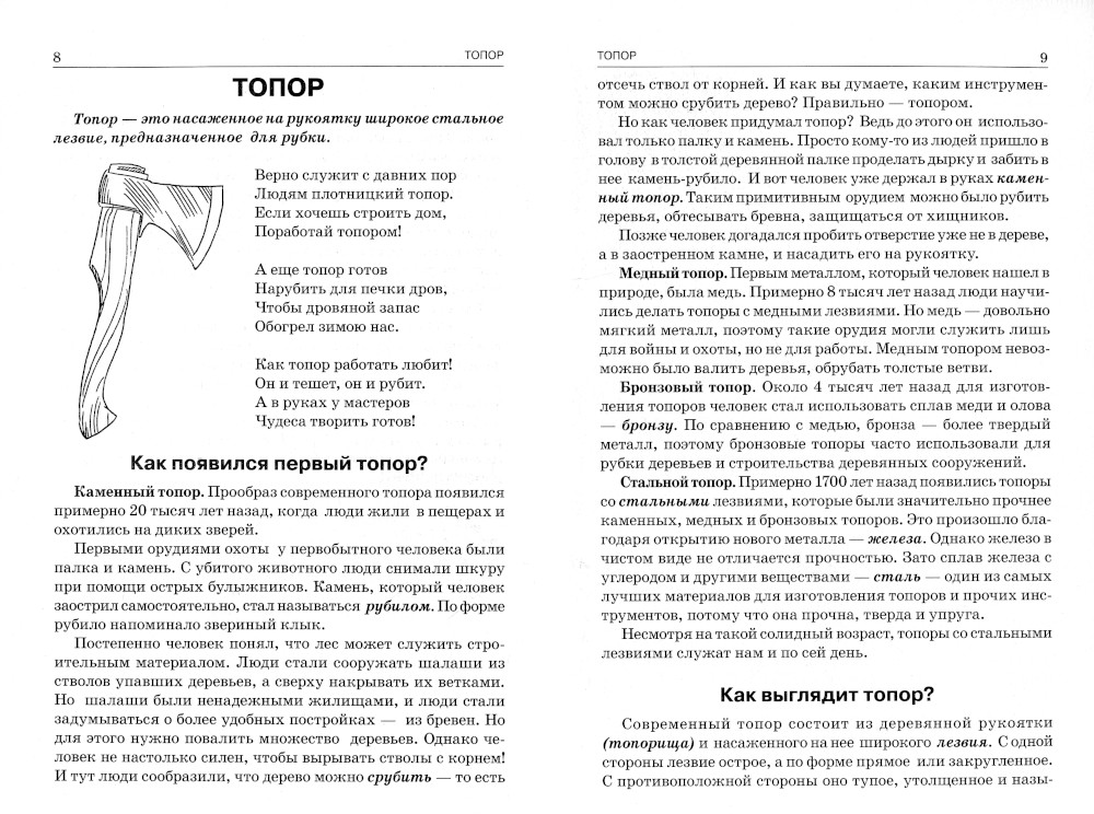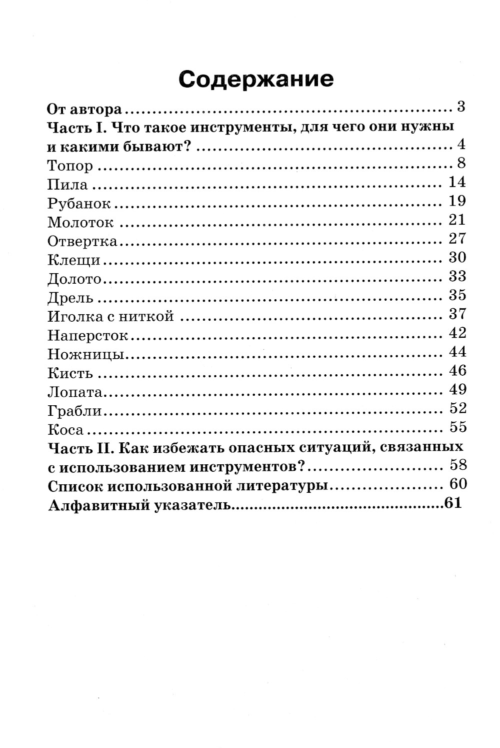 В пособии представлен оригинальный и интересный материал, необходимый для знакомства дошкольников с инструментами. Ребенок узнает о различных инструментах: топоре, пиле, лопате, граблях, ножницах, игле, кисти и т.д. Просто и доступно рассказывается об истории возникновения орудий труда, назначении каждого из них. Книга учит детей правильному обращению с инструментами и соблюдению осторожности. Стихи, рассказы, сказки автора, пословицы, поговорки и загадки об инструментах помогут детям лучше усвоить материал, расширить кругозор и обогатить словарный запас. Пособие предназначено для педагогов ДОУ, гувернеров и родителей. Может быть использовано при коллективной и индивидуальной формах обучения.
