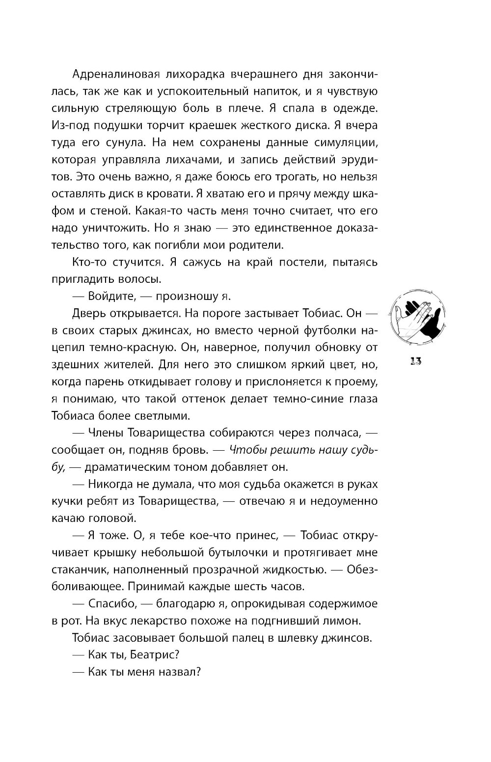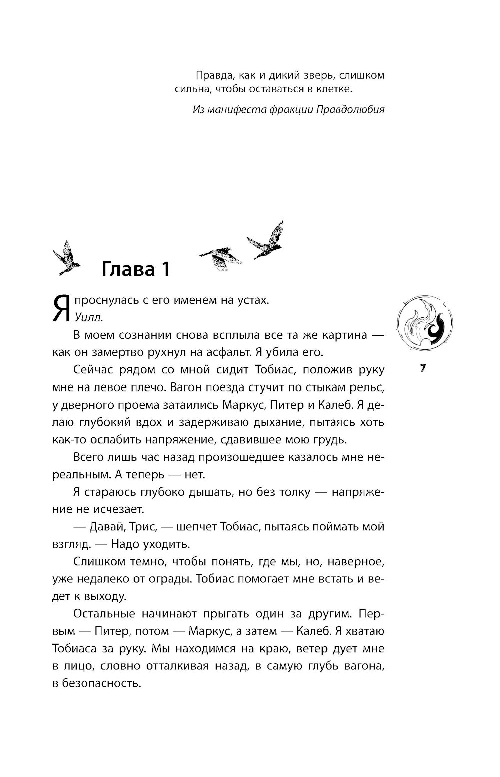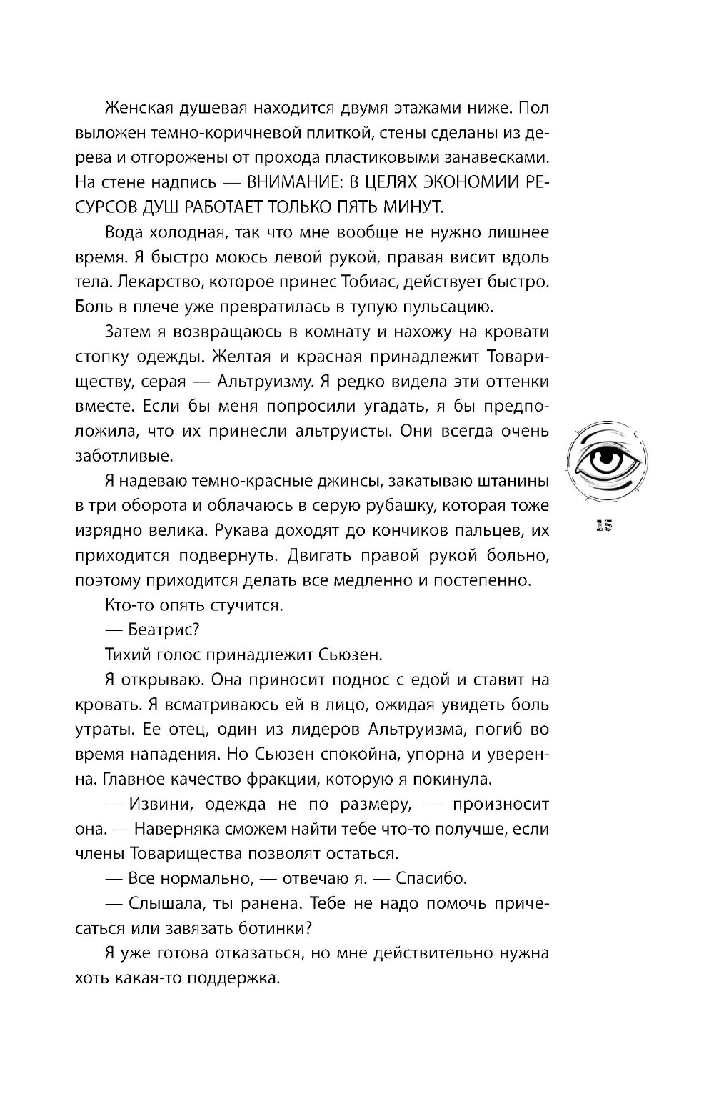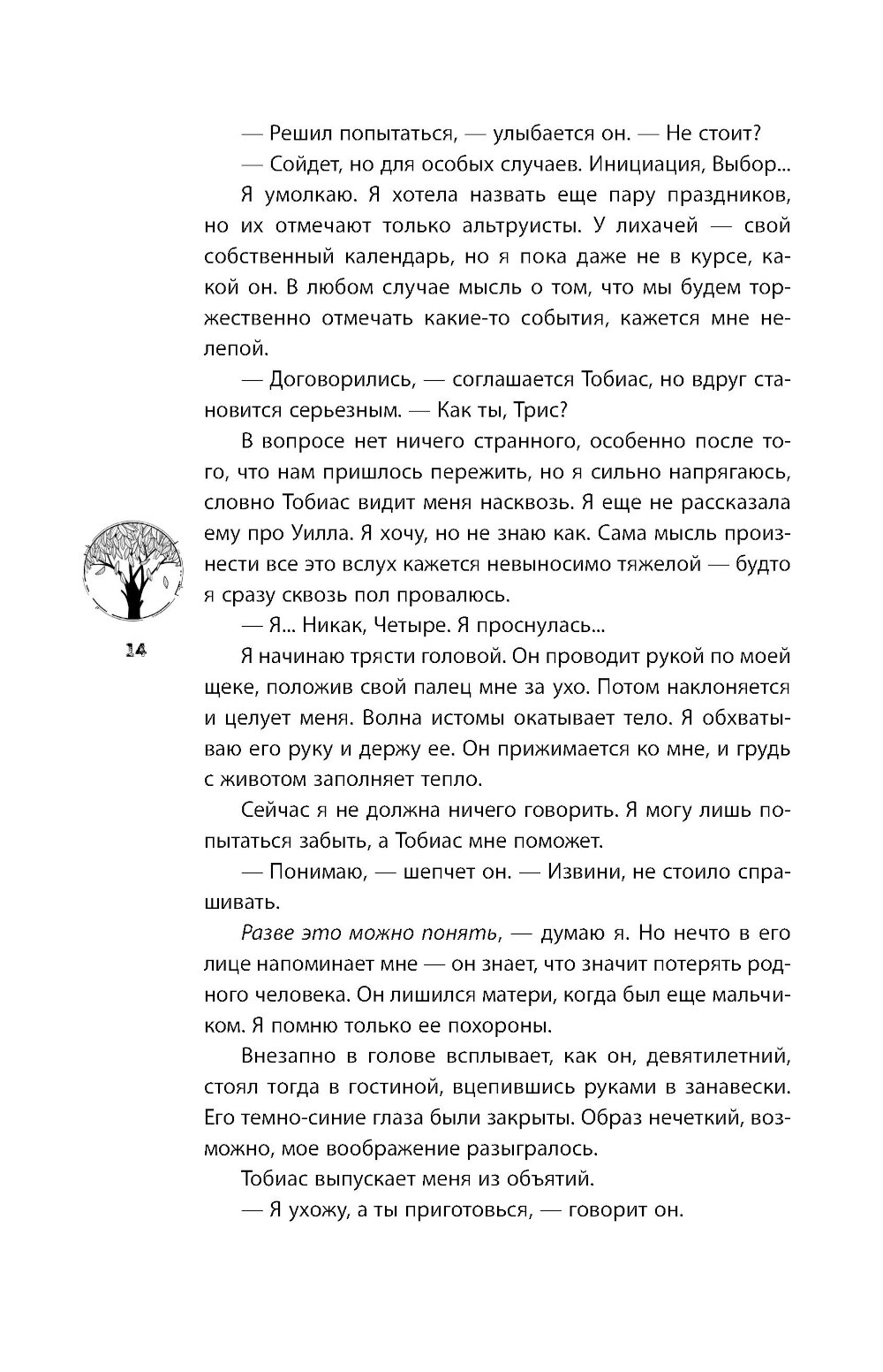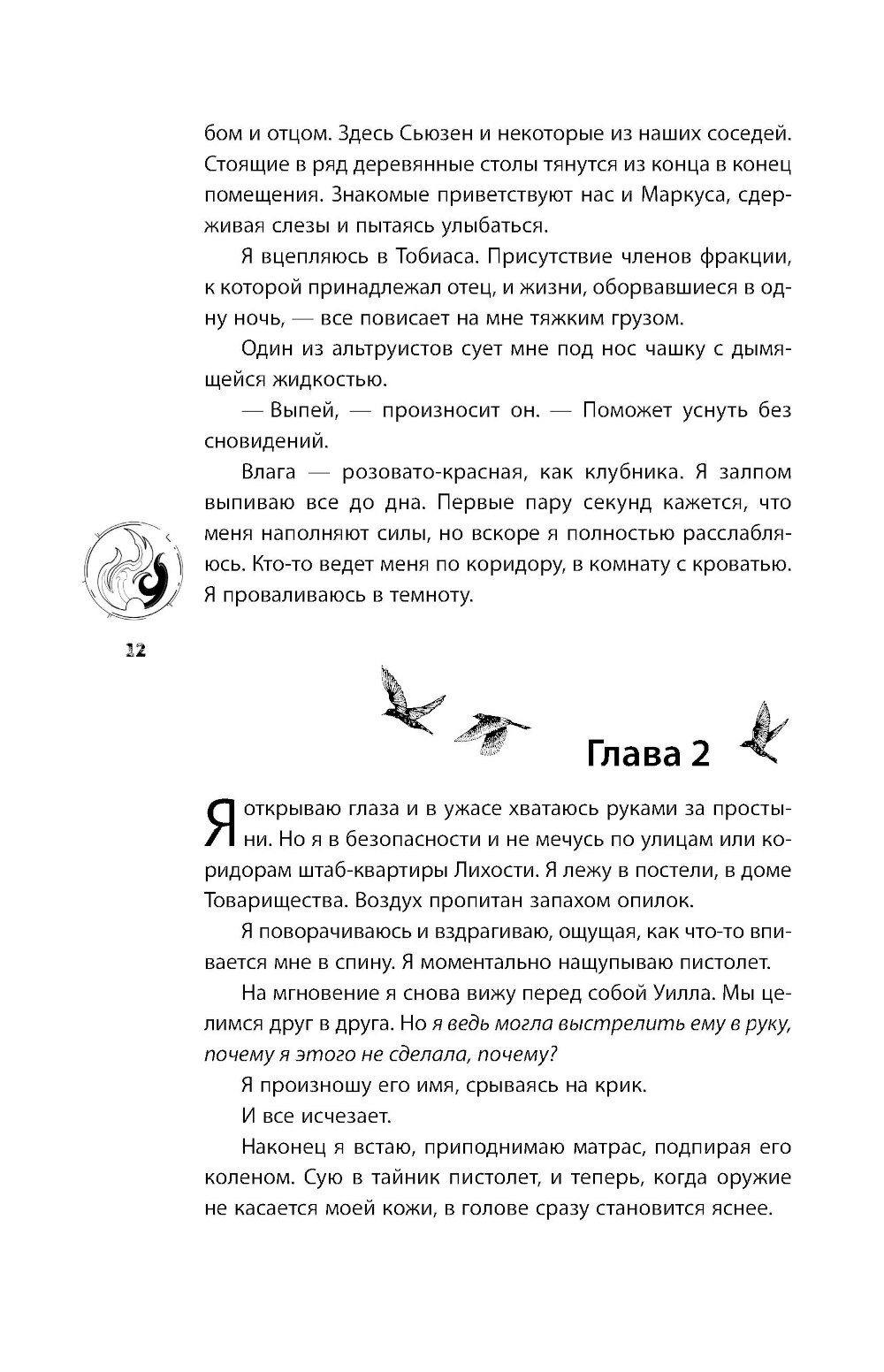 Беатрис Прайор, родившаяся в семье Альтруистов, меняет фракцию и вступает в ряды Лихости. Но каждый выбор имеет последствия. День ее посвящения в лихачи закончился катастрофой. Привычное устройство мира стремительно рушится, противоречия между фракциями растут, конфликт идеологий становится все более острым. Надвигается война. Перед Трис снова стоит необходимость принять поворотное решение: она должна выбрать сторону. Но как это сделать, если все мысли заняты горем и мучительным чувством вины? И как справиться с последствиями, когда раскрытые секреты делают выбор неотвратимым? Переиздание бестселлера! Вторая книга культового цикла Young Adult в новом свежем и дерзком оформлении. Иллюстрации от популярного художника LINK, удобный формат в мягкой обложке.| Издательство | Эксмо |