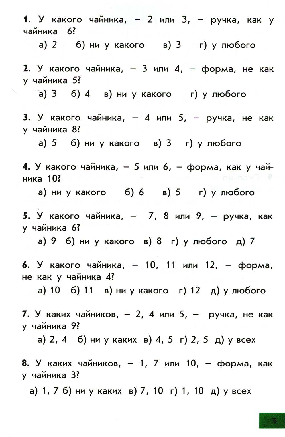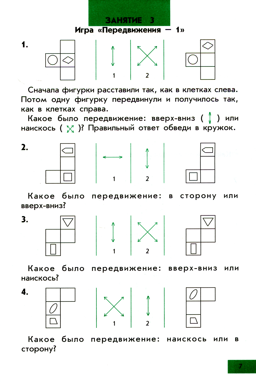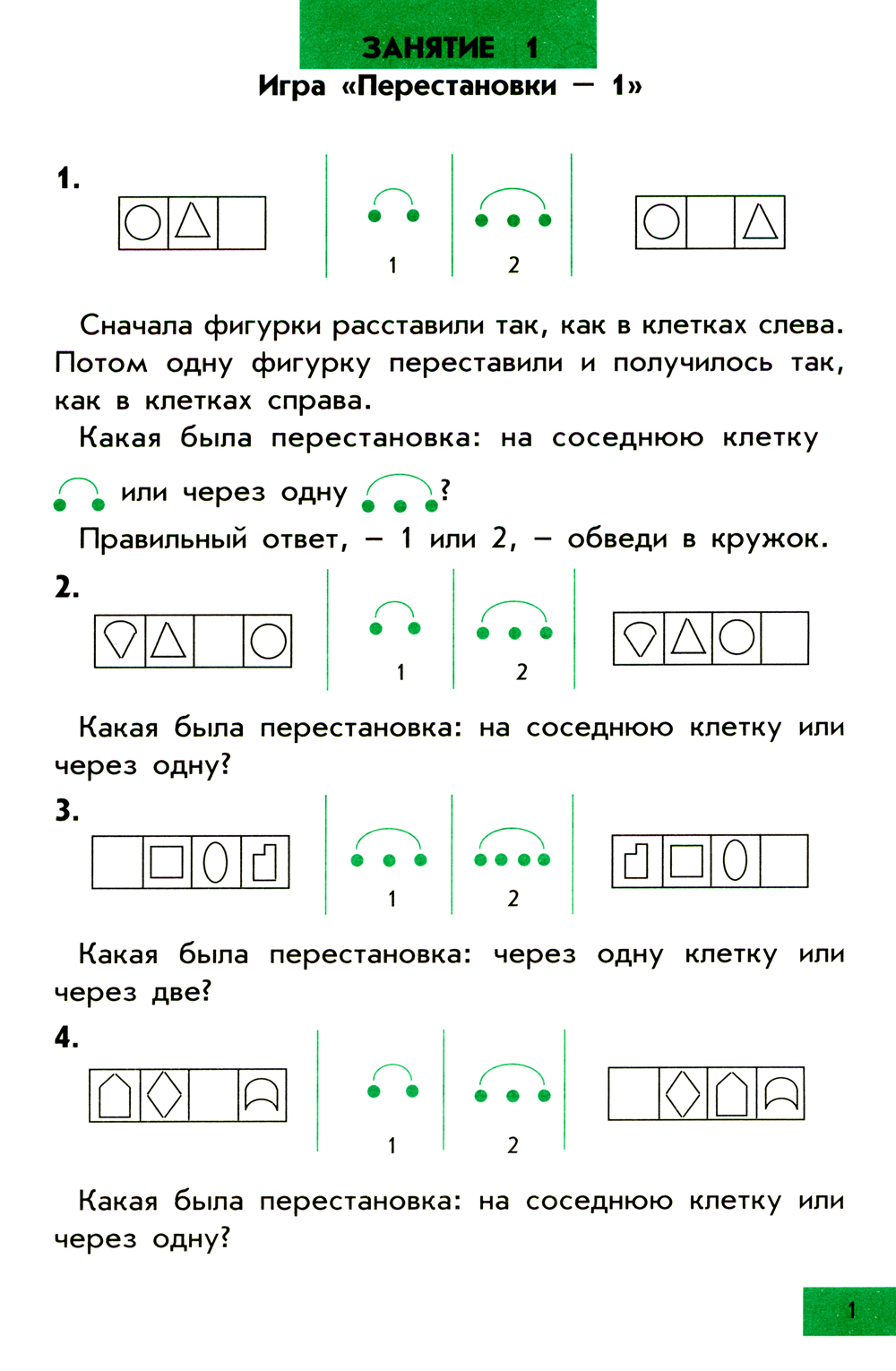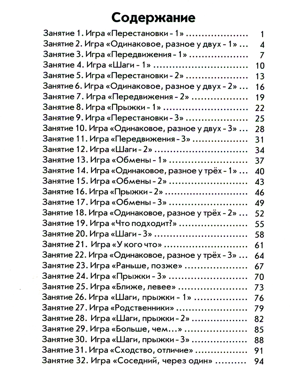 Практика развивающих занятий показала: регулярное решение детьми поисковых задач обеспечивает им более высокий, чем обычно, уровень развития мышления. Предлагаемая Вашему вниманию тетрадь с игровыми заданиями - первая часть четырехлетнего курса «Интеллектика», разработанного специалистом по развитию мышления, доктором психологических наук А.З. Заком. Курс предназначен для систематического развития основных мыслительных способностей у детей 6-10 лет с целью повышения их интеллектуальной готовности к средним классам школы. Развивающие занятия разработаны для групповой работы в школе: одно занятие в неделю в урочное или во внеурочное время. Занятия с тетрадью можно проводить с ребенком и дома. Представленный материал включает в себя поисково-творческие занимательные задания разнообразных интеллектуальных игр, построенных на неучебном материале. Одни игры предназначены для развития способности анализировать и совершенствовать зрительное восприятие и произвольное внимание, поскольку в этих играх требуется выделять и сравнивать элементы предметных и абстрактных изображений (см. занятия 2, 6, 10, 14, 18, 22). Другие игры нацелены на развитие способности планировать и совершенствовать действия в мысленном плане, в представлении, поскольку в этих играх требуется определять особенности воображаемых перемещений по условным правилам таких выдуманных персонажей, как «Утка», «Заяц», «Кошка» (см. занятия 4, 8, 12, 16, 20, 24, 26, 28, 30). Игры третьего рода связаны с развитием способности комбинировать и совершенствовать наглядно-образное мышление, поскольку в этих играх требуется по-разному изменять расположения предложенных геометрических фигурок (см. занятия 1,3,5,7,9, 11, 13, 15, 17). В играх четвертого рода развивается способность рассуждать и умозаключать, совершенствуется логическое мышление, поскольку в этих играх требуется делать вывод из предложенных суждений (см. занятия 19, 21, 23, 25, 27, 29, 31, 32). Во всех играх данной тетради используются задания первого уровня сложности. Это означает, что в играх «на сравнение» нужно выделять у предметов один признак, в играх на «перемещение» и «комбинирование» требуется выполнить одно умственное действие, в играх «на рассуждение» необходимо соотнести одно частное с общим.| Издательство | Интеллект-Центр |