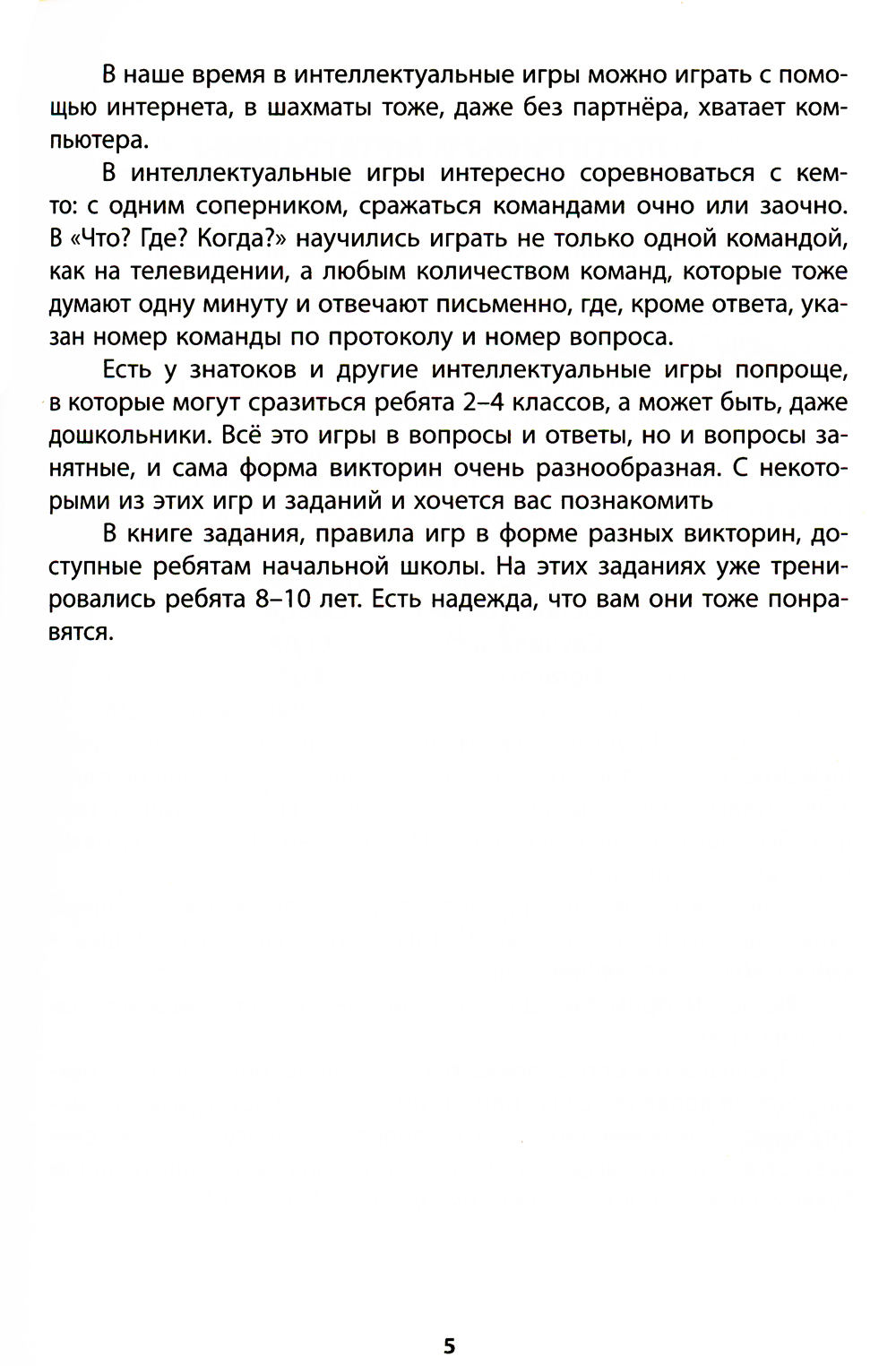 Эта книга - итог 40-летней работы автора с детьми разного возраста, участия в различных интеллектуальных тренингах, играх, которые созданы в многочисленных клубах знатоков, а также самим автором. Здесь собраны авторские вопросы, задания, информационное содержание интеллектуальных игр для учащихся начальной школы - детей в возрасте 8-10 лет. Книга может пригодиться родителям, которые занимаются с детьми, развлекаясь и немного обогащая себя занимательными фактами. Дети, уже хорошо читающие, могут самостоятельно потренировать свои способности, проверить уровень собственных знаний. Информационное содержание книги может оказаться полезным и для педагогов начальной школы, которым нужно подобрать материал для проверки знаний ребят в игровой форме, или использовать какие-либо интеллектуальные игры при проведении классного часа.
