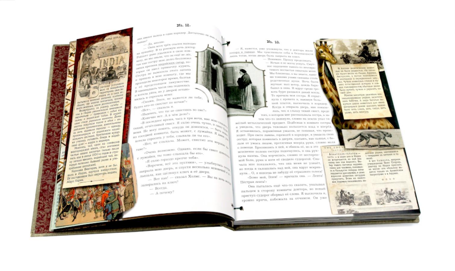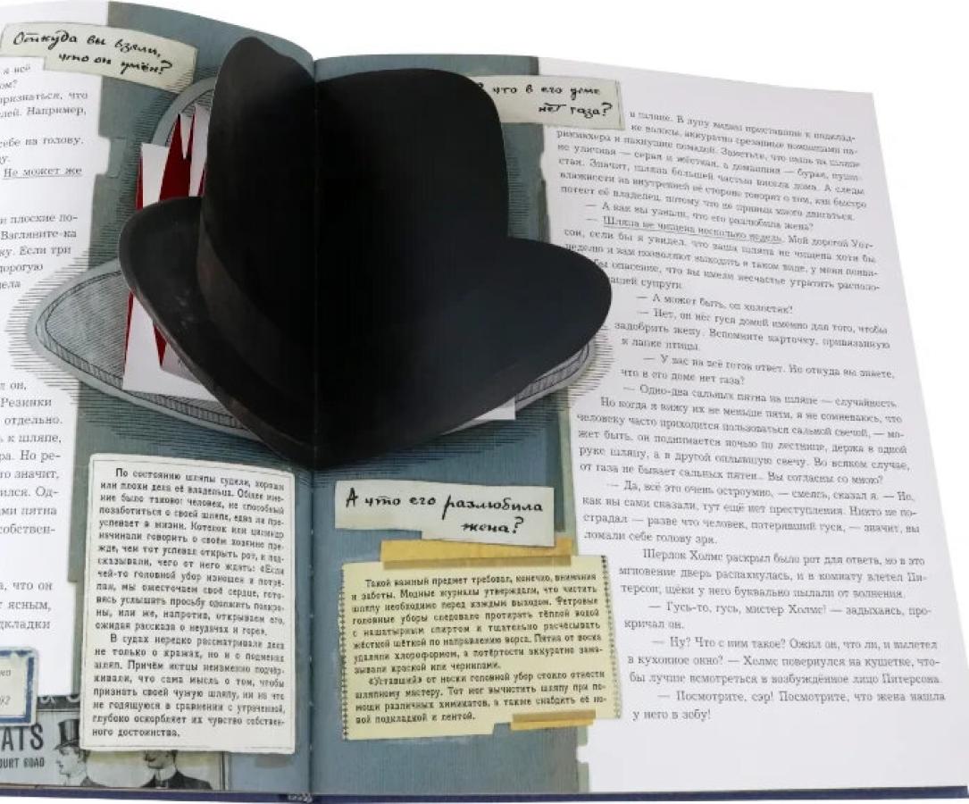 Комплект из двух интерактивных книг «Приключения Шерлока Холмса» и «Записки о Шерлоке Холмсе» (А. К. Дойл, издательство «Лабиринт Пресс») превращает знакомство с классикой детектива в увлекательное расследование. В изданиях сохранены оригинальные тексты рассказов о гениальном сыщике и его верном спутнике докторе Ватсоне, но дополнены интерактивными элементами: вкладками с «улика?ми», подвижными схемами мест происшествий, секретными документами и детализированными иллюстрациями. Читатели не просто следят за ходом мысли Холмса, а сами пробуют разгадать загадки, изучая подсказки на страницах. Комплект подойдёт школьникам 10-16 лет и всем, кто любит интерактивные книги и хочет сделать чтение более осязаемым. Развивает логику, внимание и навыки анализа.| Издательство | Изд. Лабиринт Пресс |