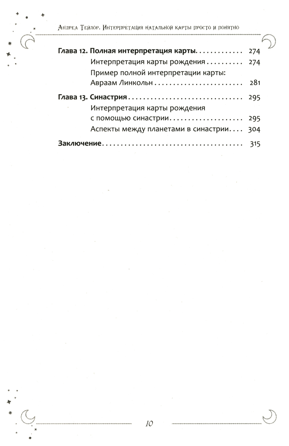 Натальная карта - это картина звездного неба в тот момент, когда вы родились. Астрологи считают, что именно это положение небесных тел предопределяет то, каким потенциалом вы обладаете, какой жизненный путь вам предстоит пройти. Искусство трактовки натальной карты - ключ к постижению личности, ее сильных и слабых черт. Поэтому книга Андреа Тейлор «Интерпретация натальной карты просто и понятно» может стать для вас настоящим открытием и помощником в понимании себя и окружающих. Трактовка натальной карты - это важный базис в изучении астрологии. В этой книге даны характеристики знаков зодиака, подробный разбор аспектов (среди них тригоны, квадраты, соединения, секстили), узлов, положений планет, стеллиумов, домов.| Издательство | ИГ Весь |