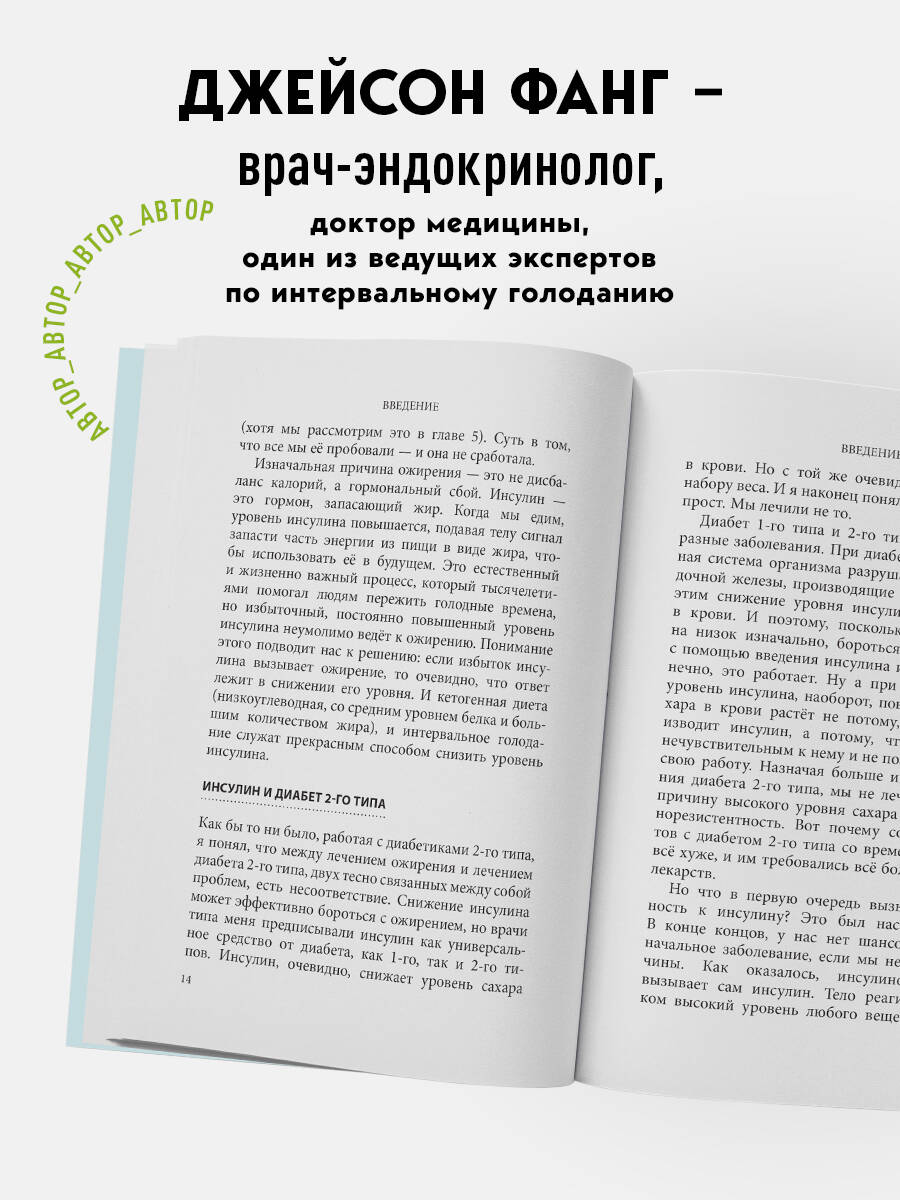 Почему программа «меньше ешь - больше двигайся» совершенно не работает, когда речь идет о лишнем весе. Как тело использует калории, когда постоянно получает избыток сахара. В чем связь между диабетом второго типа и диетой. Врач-эндокринолог, нефролог Джейсон Фанг заставляет нас по-новому взглянуть на забытое искусство голодания. Пиры обязательно должны сменяться периодами ограничений в пище. Именно в это время клетки мозга и тела обновляются, накопившийся «мусор» выбрасывается, а гормон роста (тот самый, что ускоряет старение) на время перестает вырабатываться. Автор предлагает 4 протокола голодания, подходящего под различные потребности, и описывает пошаговый план перехода в состояние кетоза и выхода из него. А также вы узнаете: - Почему голодание снижает холестерин. - Что такое кетоны и как они работают. - Какие виды голодания существуют и что подходит именно вам. - Чем поддержать свой организм в периоды без пищи: бульоны, напитки и минеральные добавки.| Издательство | ООО "Издательство "Эксмо" |
