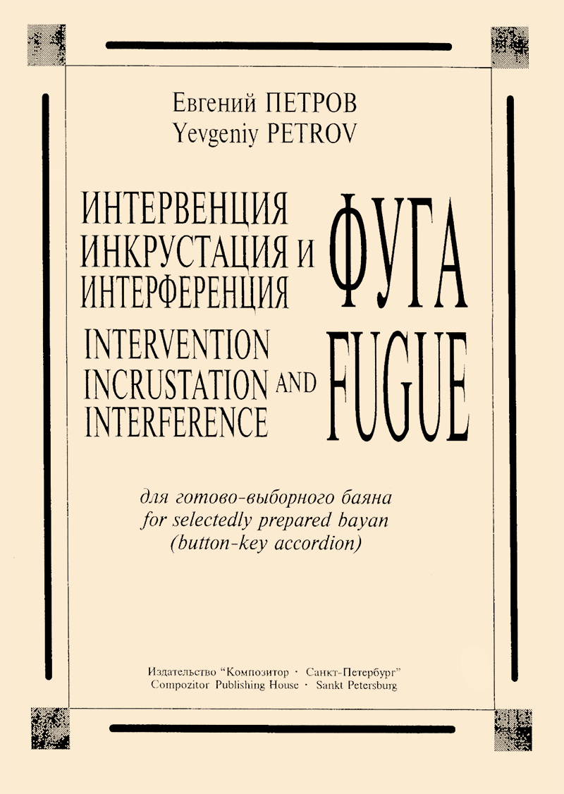 Аннотация: Интервенция и фуга. Инкрустация и фуга. Интерференция и фуга. Для готово-выборного баяна