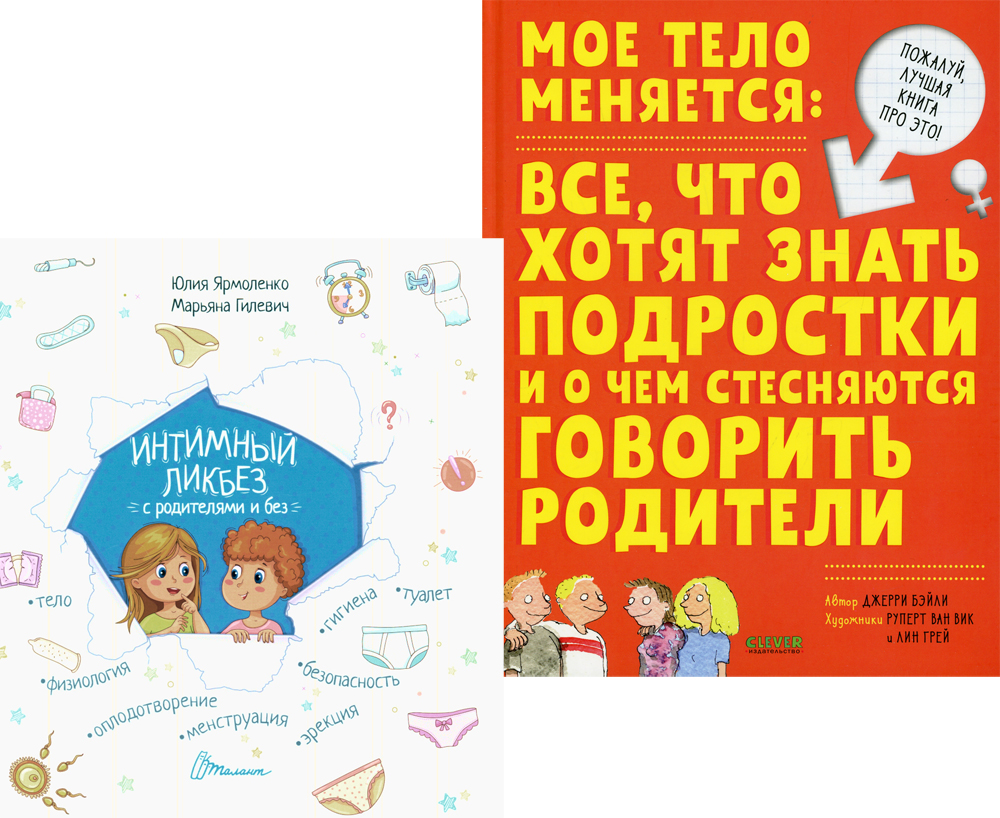 Комплект состоит из двух книг "Интимный ликбез с родителями и без" и "Мое тело меняется: Все, что хотят знать подростки и о чем стесняются говорить родители". Издательство CLEVER с любовью и заботой подготовило для девочек и мальчиков эти уникальные книги. Они расскажут все, что ребята хотят знать о себе и о своем теле и о чем не всегда удобно говорить с родителями. Книги полезны не только девочкам и мальчикам, но и их родителям, которые беспокоятся о физическом и психическом здоровье своих детей.| Издательство | Клевер-Медиа-Групп |