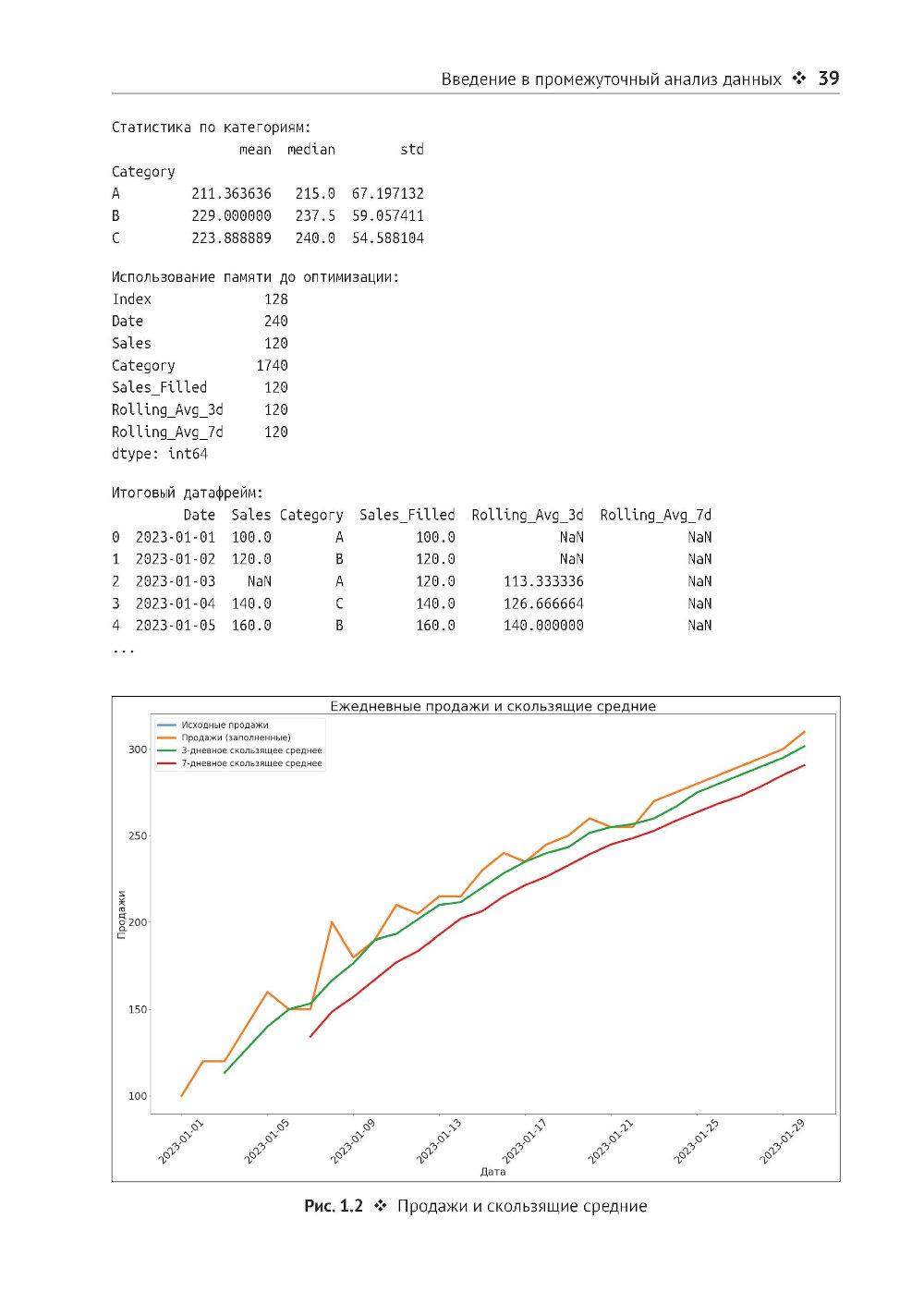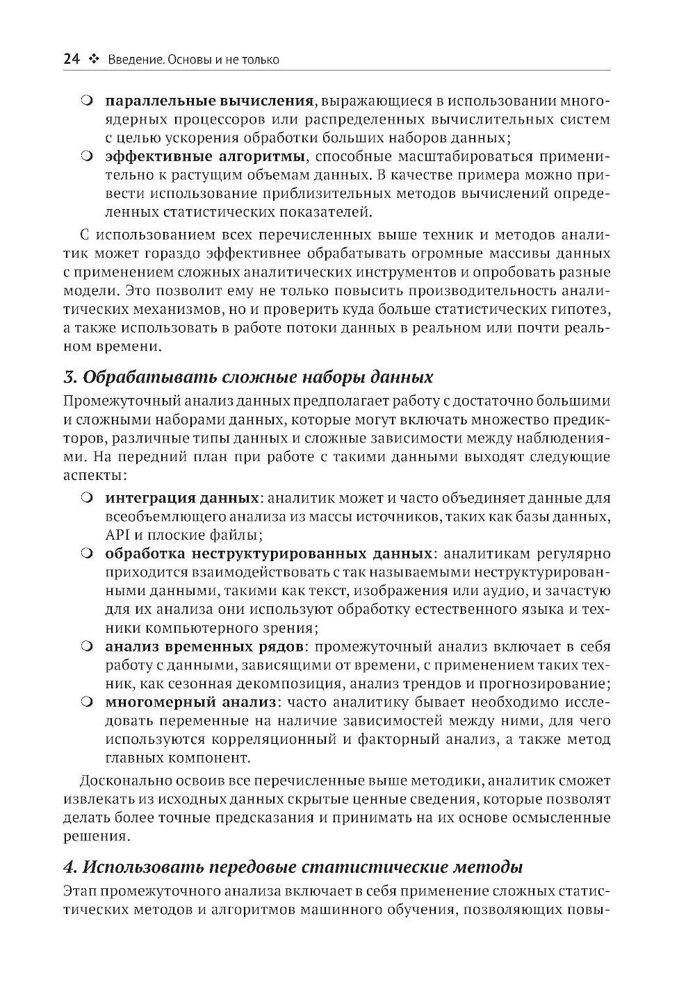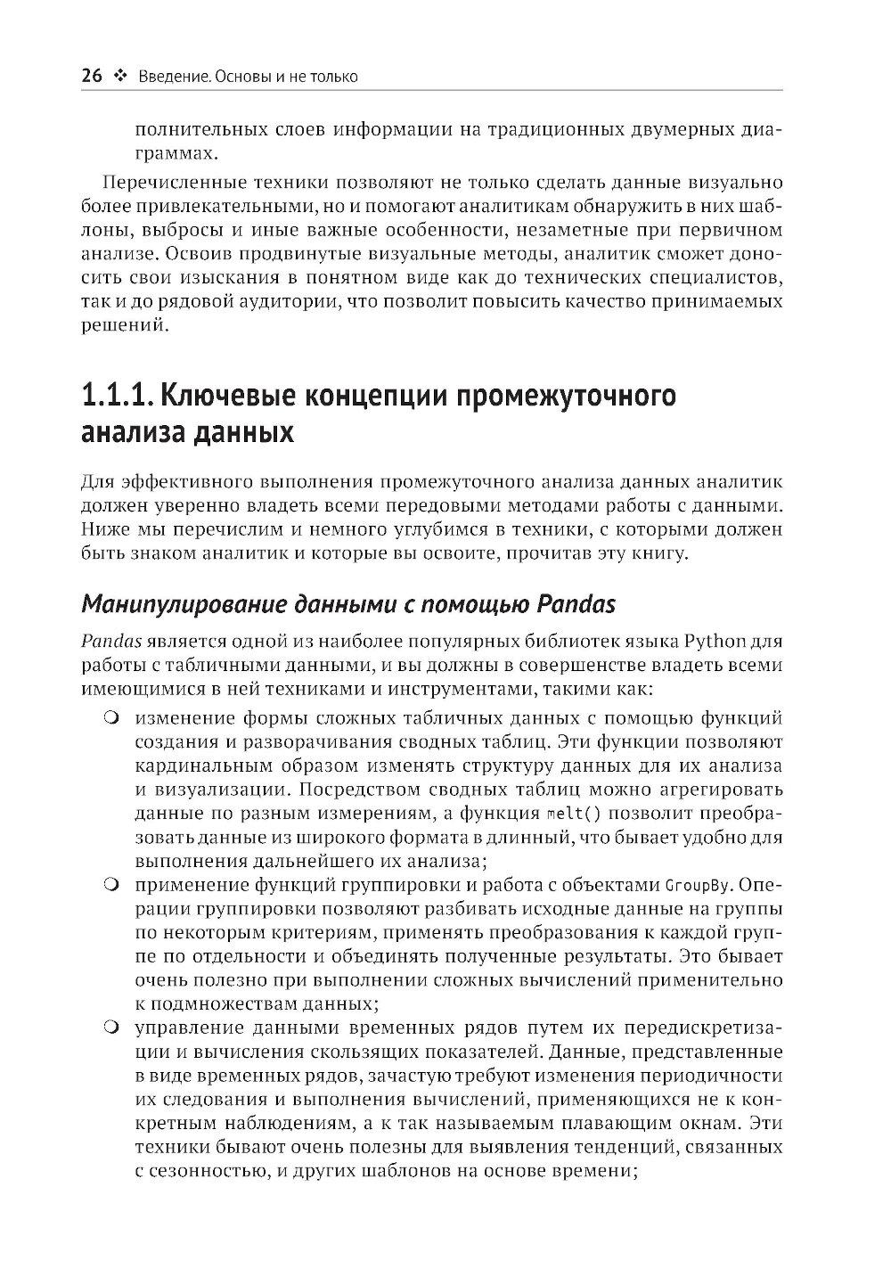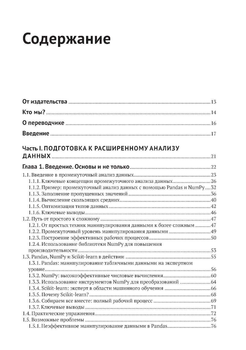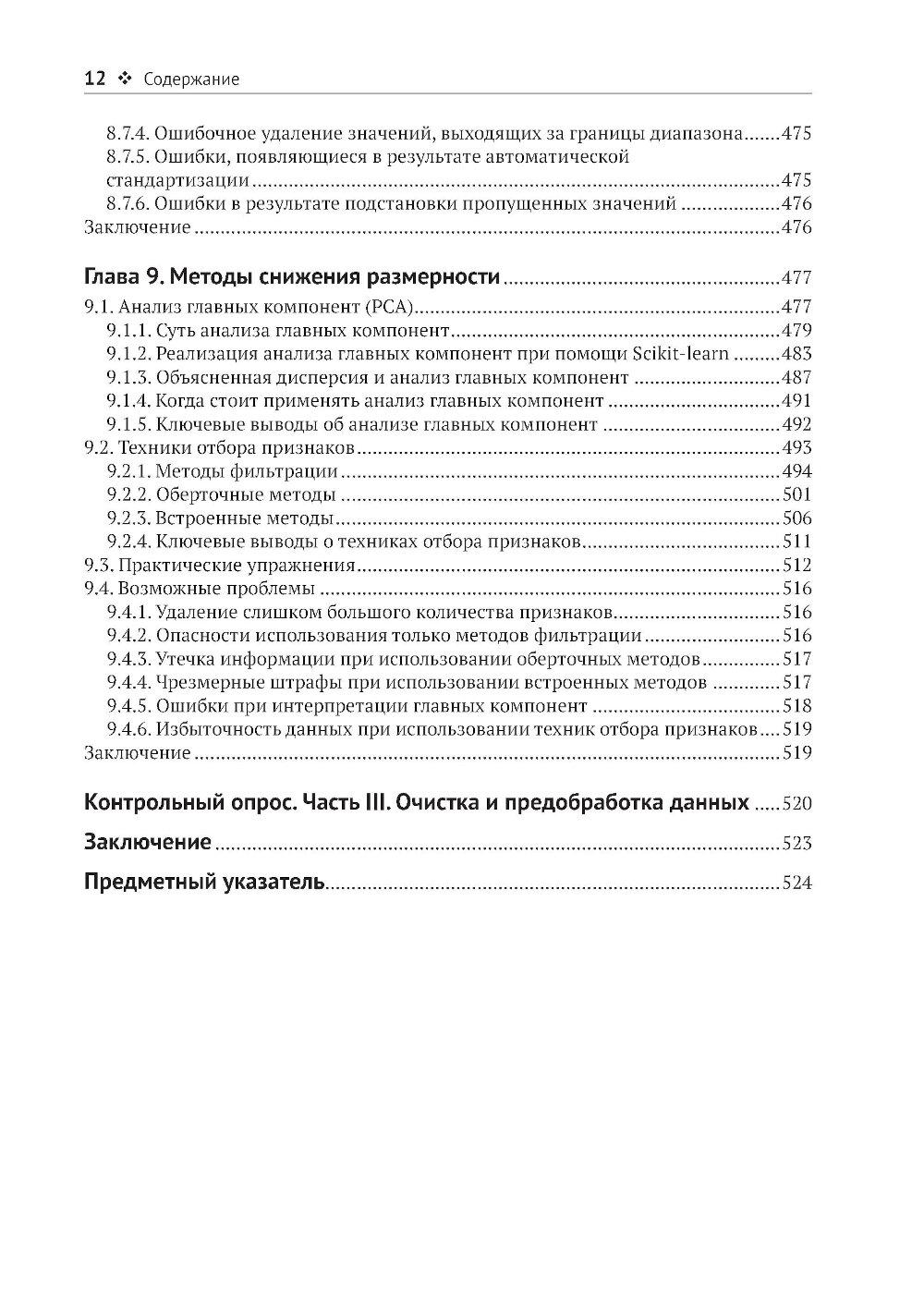 Перед вами полноценный путеводитель в увлекательный мир обработки данных при помощи Pandas, NumPy и Scikit-learn. Он содержит множество примеров, которые помогут вам научиться преобразовывать сырые крупицы данных в настоящий шедевр из ценной информации и аналитических выводов. Книга разбита на три части, каждая из которых посвящена отдельным аспектам работы с данными. Часть I. Подготовка к расширенному анализу данных Вы научитесь свободно использовать средства, представленные в библиотеках Pandas, NumPy и Scikit-learn для предварительной подготовки данных. Часть II. Конструирование признаков для моделей машинного обучения Вы примете участие в полноценном проекте по анализу данных, а также научитесь конструировать новые признаки и корректировать данные. Часть III. Очистка и предварительная обработка данных Вы поучаствуете в большом проекте по прогнозированию временных рядов, а также научитесь корректировать аномалии в данных и освоите методы снижения размерности. Издание предназначено как делающим первые шаги в освоении науки о данных, так и практикующим специалистам, желающим улучшить свои навыки. Книга написана сотрудниками компании Cuantum Technologies, специализирующейся на разработке качественных веб-приложений с использованием передовых технологий и инструментов. Авторы обладают обширным опытом в анализе и визуализации данных, машинном обучении и искусственном интеллекте.| Издательство | ДМК Пресс |