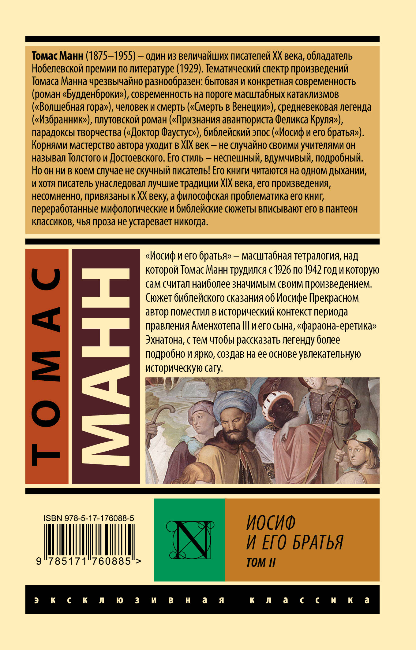 - Лауреат Нобелевской премии по литературе Томас Манн - один из виднейших немецких писателей первой половины XX века, автор романов «Будденброки» и «Волшебная гора». - В данное издание вошли третья и четвертая части легендарной тетралогии об Иосифе Прекрасном и его братьях. - Сага «Иосиф и его братья» - самое значимое произведение Томаса Манна по мнению самого Томаса Манна. - Издание в серии «Эксклюзивная классика» - в удобном карманном формате и узнаваемом оформлении.| Издательство | Издательство "АСТ" |