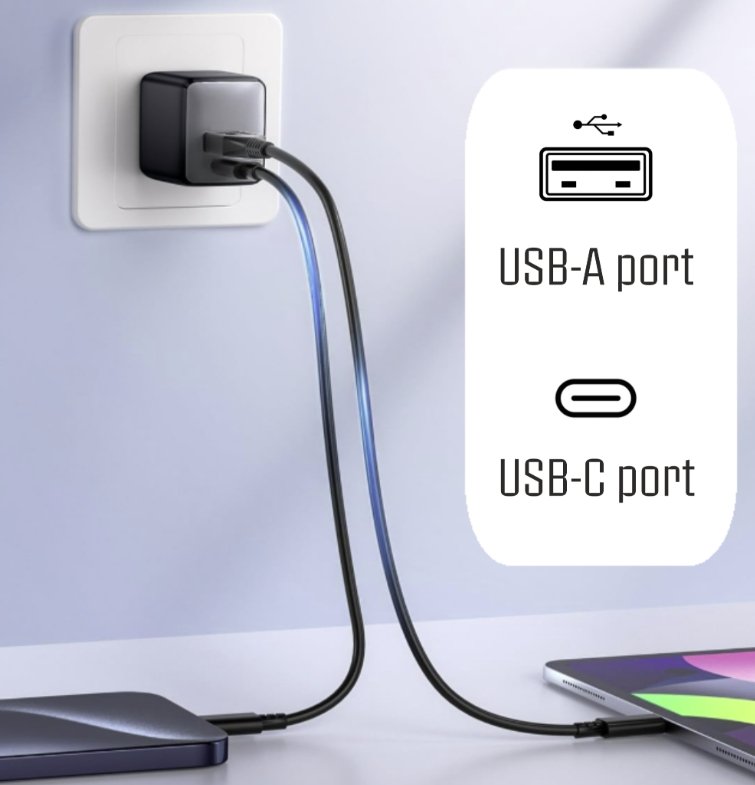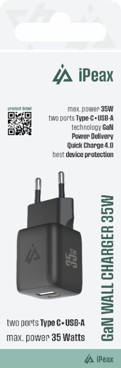 Сетевое зарядное устройство iPEAX мощностью 35 Вт с технологией GaN обеспечивает мощную зарядку в компактном корпусе. Оно оснащено портом USB-C с функциями Power Delivery и PPS, а также портом USB-A с поддержкой Quick Charge 4.0 - идеально подходит для телефонов, планшетов, наушников и портативных аккумуляторов.