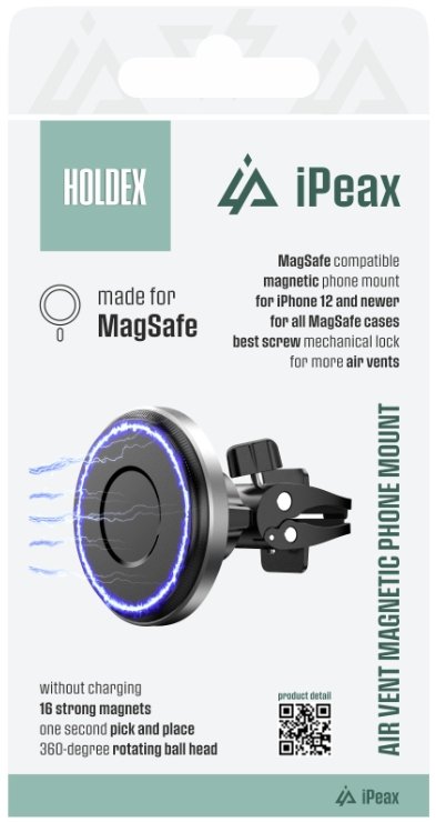 iPEAX HOLDEX это магнитное автомобильное крепление, разработанное для простого и надежного крепления телефона с помощью мощных магнитов и технологии MagSafe. Устанавливайте и снимайте телефон одной рукой - без зажимов и кнопок.