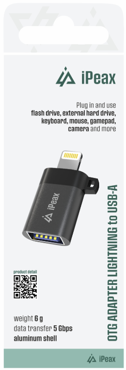 Переходник OTG формата Lightning → USB-A, предназначенный для подключения периферийных устройств к совместимым устройствам Apple. Позволяет использовать флеш-накопители, клавиатуры, кардридеры и другие USB-аксессуары. Компактный и удобный в ежедневном применении.
