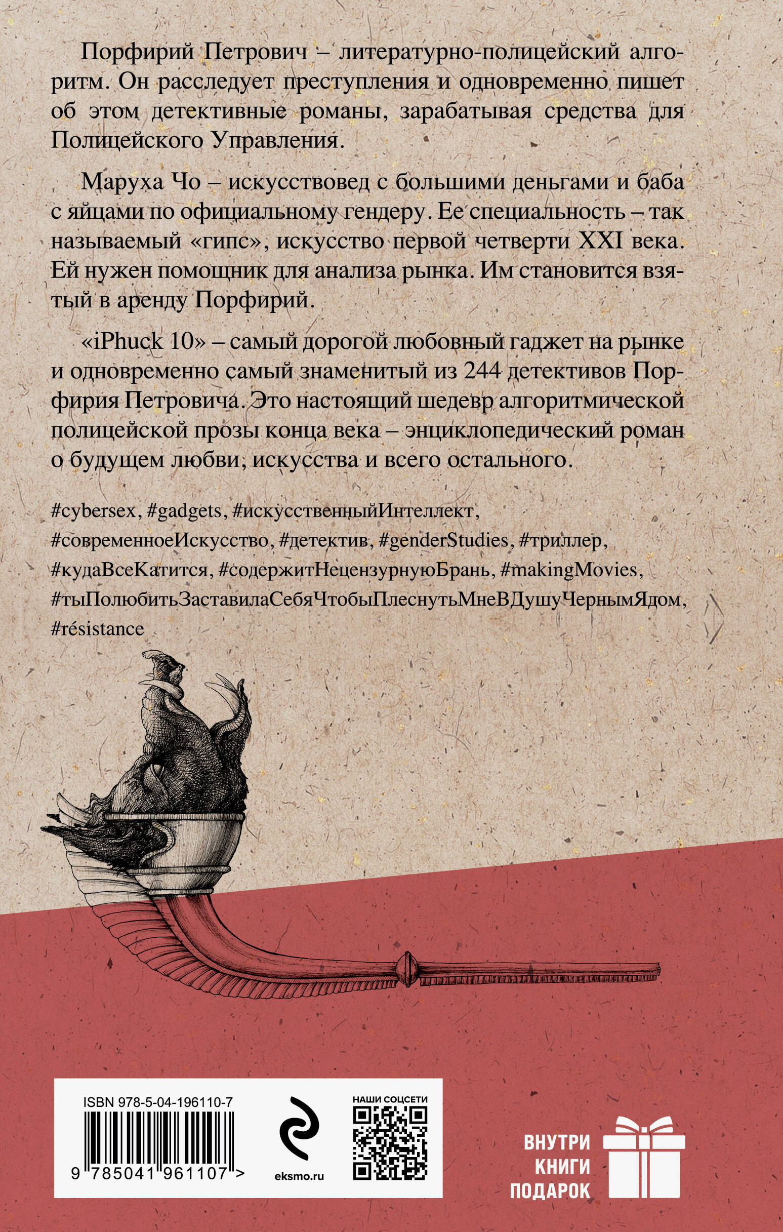 Порфирий Петрович - литературно-полицейский алгоритм. Он расследует преступления и одновременно пишет об этом детективные романы, зарабатывая средства для Полицейского Управления. Маруха Чо - искусствовед с большими деньгами и баба с яйцами по официальному гендеру. Ее специальность - так называемый «гипс», искусство первой четверти XXI века. Ей нужен помощник для анализа рынка. Им становится взятый в аренду Порфирий. "iPhuck 10" - самый дорогой любовный гаджет на рынке и одновременно самый знаменитый из 244 детективов Порфирия Петровича. Это настоящий шедевр алгоритмической полицейской прозы конца века - энциклопедический роман о будущем любви, искусства и всего остального. #cybersex, #gadgets, #искусственныйИнтеллект, #современноеИскусство, #детектив, #genderStudies, #триллер, #кудаВсеКатится, #содержитНецензурнуюБрань, #makingMovies, #тыПолюбитьЗаставилаСебяЧтобыПлеснутьМнеВДушуЧернымЯдом, #résistance| Издательство | ООО "Издательство "Эксмо" |