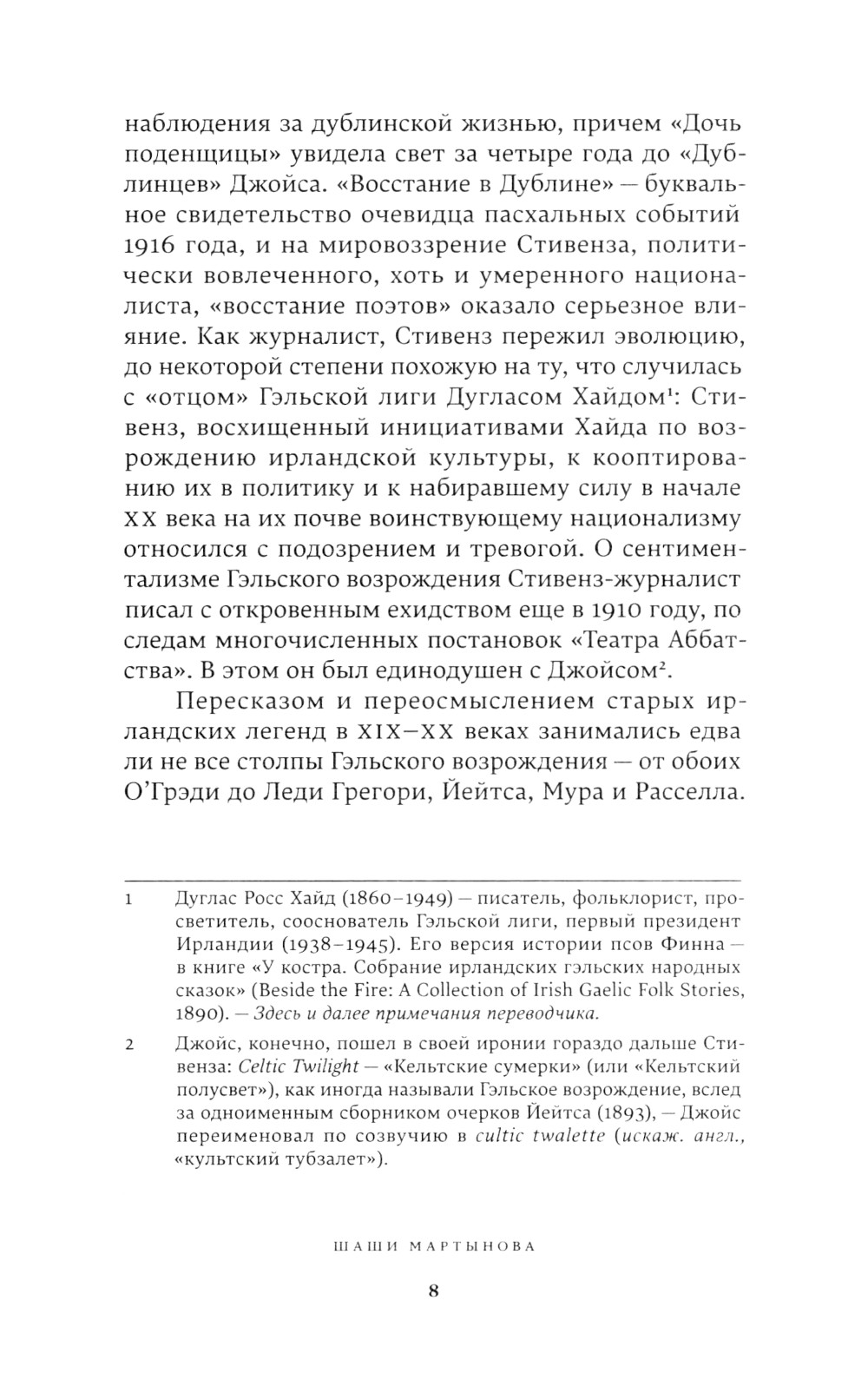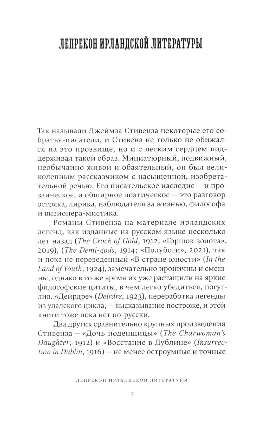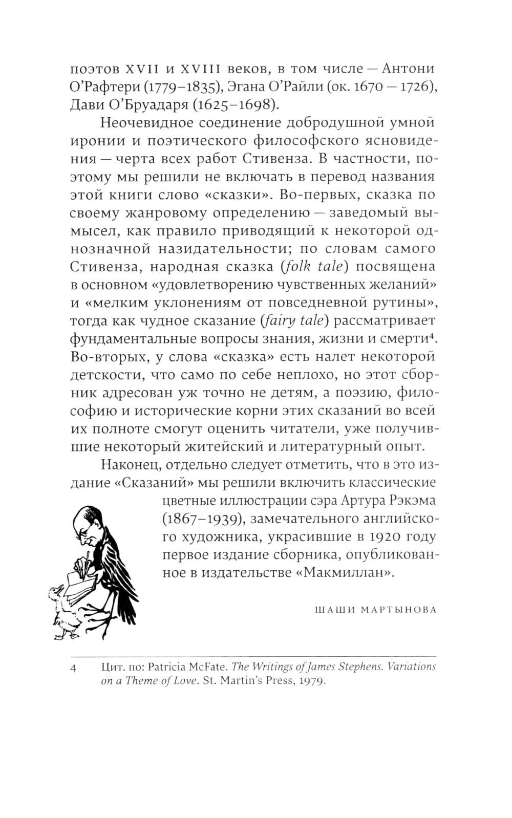 «Ирландские чудные сказания» - десять безумных волшебных приключений в недостижимой ныне действительности богов, королей и героев; сборник древних преданий, впервые записанных в Средневековье и переосмысленных в начале прошлого столетия Джеймзом Стивензом (1880-1950), знатоком и популяризатором средневековой ирландской языковой традиции, бережно сохранившим самоцветную россыпь устной разговорной речи, какую слышали изумрудные холмы в незапамятные времена, но при этом живо и искрометно переложившим эти фантасмагории на более понятный нам современный язык. Стиль Джеймза Стивенза - поэта, автора уморительных философских романов «Горшок золота» и «Полубоги», радиоведущего Би-би-си - не спутаешь ни с чьим другим: ироничный, богатый и невероятно щедрый, он пронизан бездонной ирландской историей и музыкой языка. Сам Стивенз - скорее из «когорты Джойса», яркий смелый модернист, умный наблюдательный сатирик. Однако приверженность эпической традиции родной страны и сильное национальное чувство предопределили его поистине уникальное место в ирландской и мировой литературе XX века.| Издательство | Подписные издания |