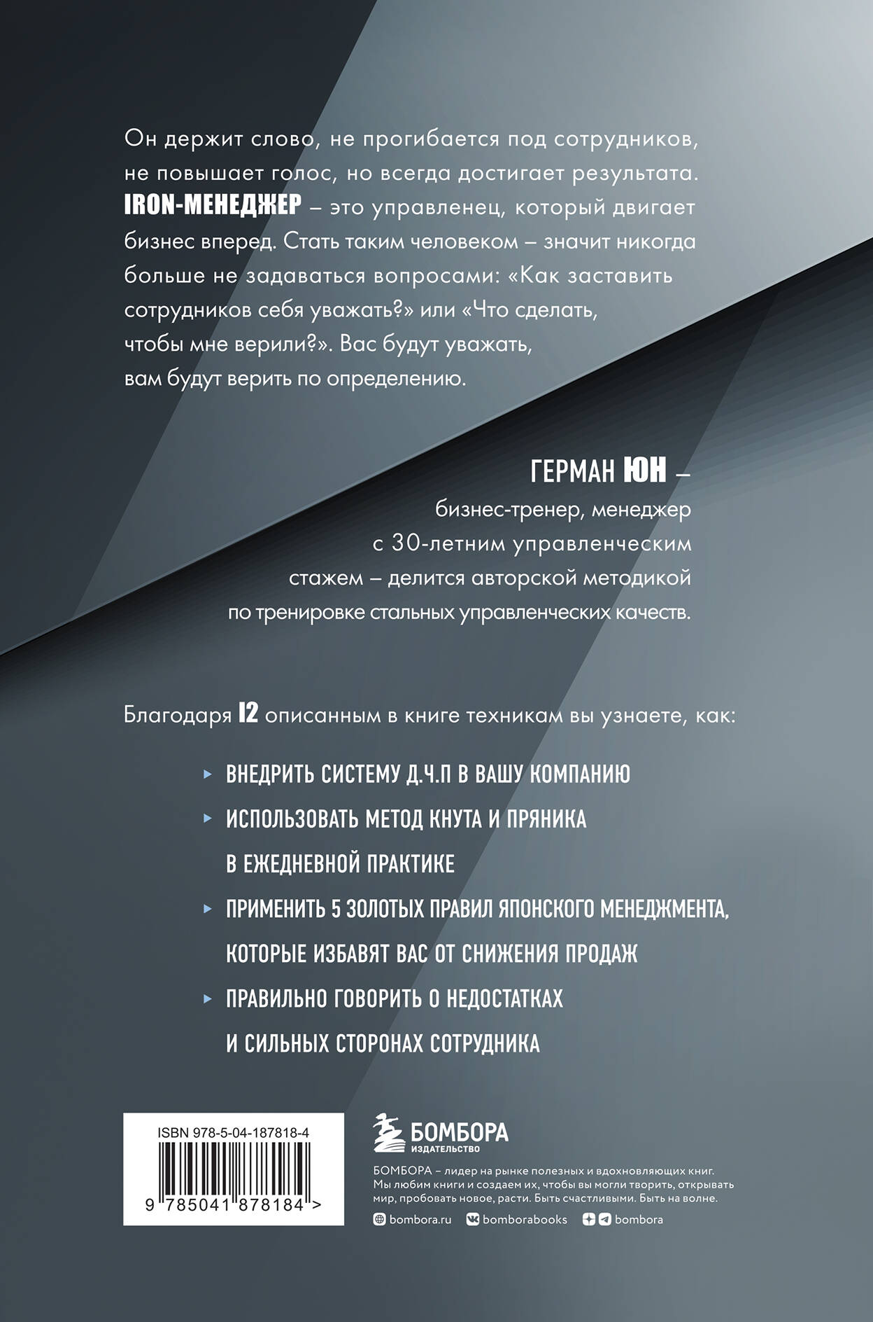Он держит слово, не прогибается под сотрудников, не повышает голос, но всегда достигает результата. IRON-МЕНЕДЖЕР - это управленец, который двигает бизнес вперед. Стать таким человеком - значит никогда больше не задаваться вопросами: «Как заставить сотрудников себя уважать?» или «Что сделать, чтобы мне верили?». Вас будут уважать, вам будут верить по определению. ГЕРМАН ЮН, бизнес-тренер, менеджер с 30-летним управленческим стажем, делится авторской методикой по тренировке стальных управленческих качеств. Благодаря 12 описанным в книге техникам вы узнаете, как: - ВНЕДРИТЬ СИСТЕМУ Д.Ч.П. В ВАШУ КОМПАНИЮ. - ИСПОЛЬЗОВАТЬ МЕТОД КНУТА И ПРЯНИКА В ЕЖЕДНЕВНОЙ ПРАКТИКЕ. - ПРИМЕНИТЬ 5 ЗОЛОТЫХ ПРАВИЛ ЯПОНСКОГО МЕНЕДЖМЕНТА, КОТОРЫЕ ИЗБАВЯТ ВАС ОТ СНИЖЕНИЯ ПРОДАЖ. - ПРАВИЛЬНО ГОВОРИТЬ О НЕДОСТАТКАХ И СИЛЬНЫХ СТОРОНАХ СОТРУДНИКА.| Издательство | ООО "Издательство "Эксмо" |