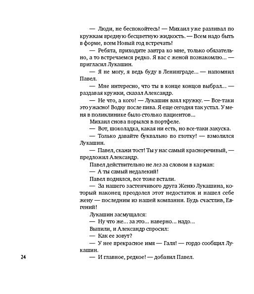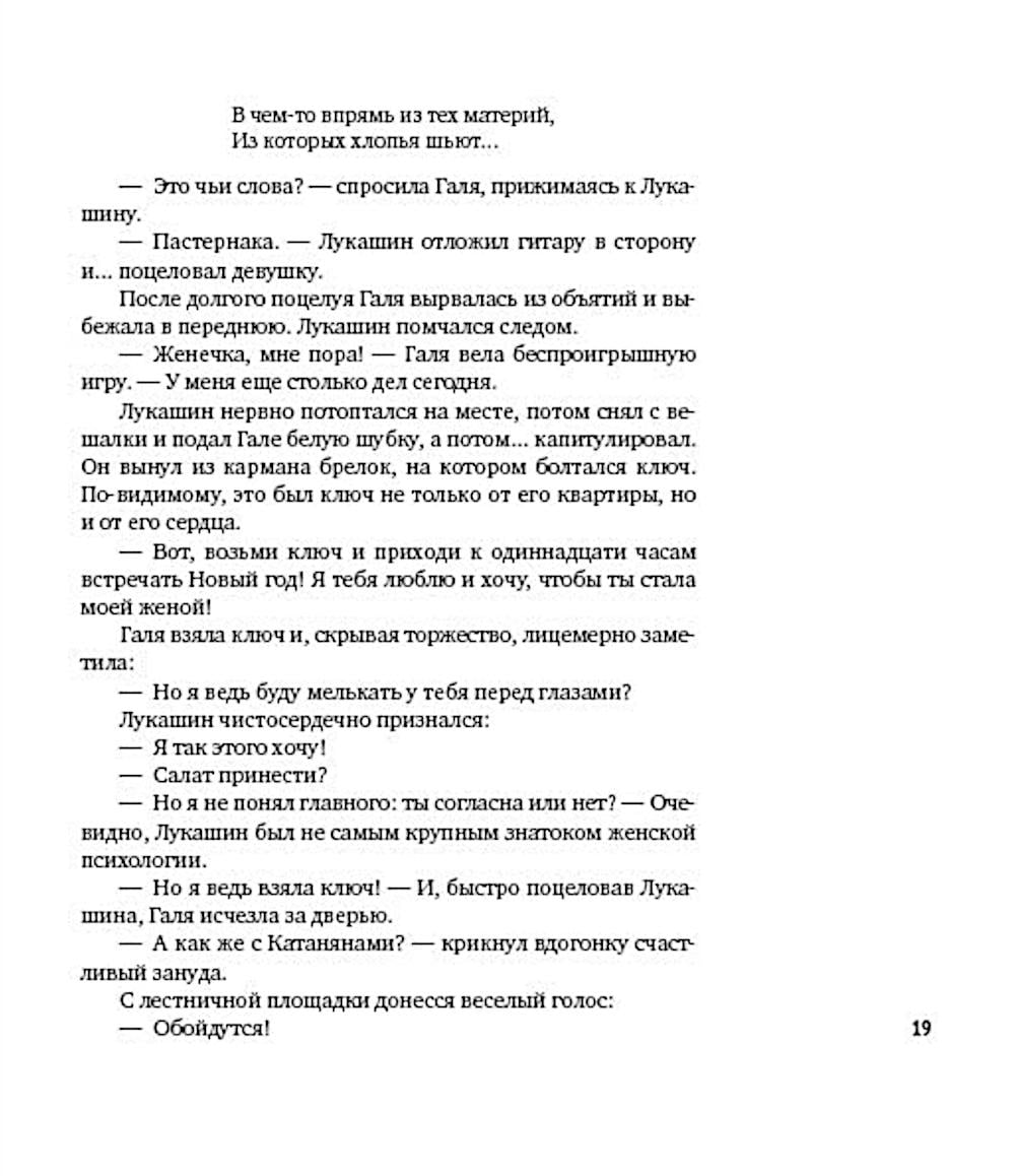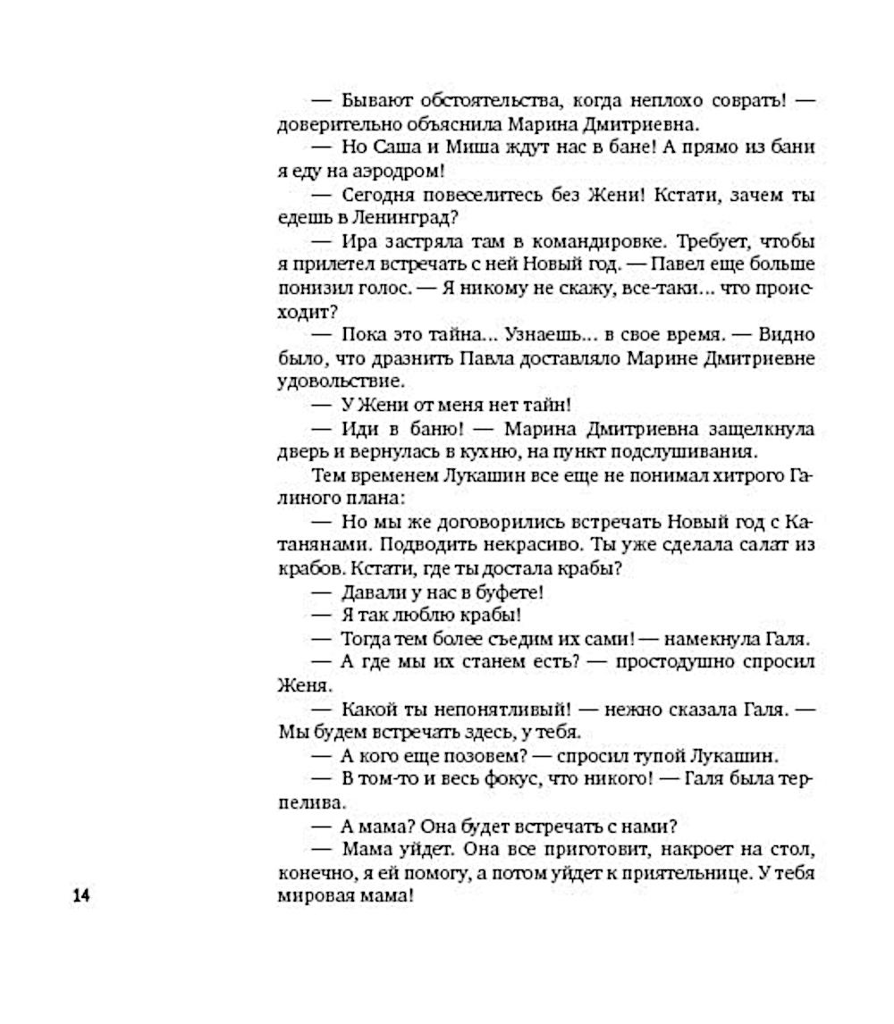 Однажды друзья-соавторы - драматург Эмиль Брагинский и режиссер Эльдар Рязанов - услышали историю о человеке, который после бани зашел к приятелям, несколько переусердствовал за хорошо накрытым столом и уснул. История умалчивает, почему его сотрапезниками овладела идея отправить своего спящего товарища поездом в Ленинград, но в результате тот прибыл в город на Неве, имея в ручной клади только банный веник. Эта почти детективная история вдохновила Брагинского и Рязанова на создание веселой и лиричной пьесы о любви, вспыхнувшей между доктором Женей Лукашиным и учительницей Надей Шевелевой. А чтобы невероятность происходящего не будила в зрителях Станиславского, соавторы перенесли действие своей истории в новогоднюю ночь, в сказочную атмосферу ожидания чуда. Пьеса с успехом прошла в нескольких театрах СССР, а позже была переработана в киноповесть, по которой Эльдар Рязанов снял фильм «Ирония судьбы, или С легким паром!», вскоре завоевавший статус главной новогодней комедии страны. Время пролетело быстро. Давно уже нет той страны, нет друзей-соавторов, подаривших нам столько прекрасных кинолент, но мы по-прежнему в новогодний вечер смотрим «Иронию судьбы» и с радостью узнавания следим за приключениями Жени, Нади и Ипполита. В этой книге вы найдете как саму киноповесть «Ирония судьбы, или С легким паром!» в сопровождении кадров из кинофильма, так и воспоминания Эльдара Рязанова о том, как рождалась эта история, как снимался фильм и как его принимала Госкомиссия, - тут тоже не обошлось без маленького чуда.| Издательство | Азбука |