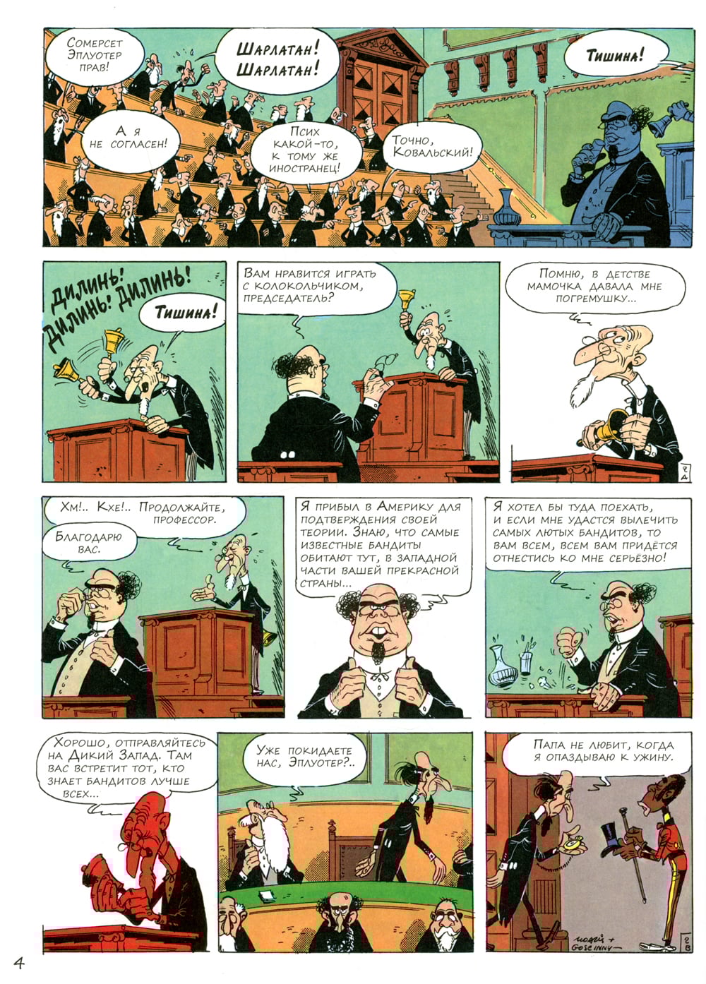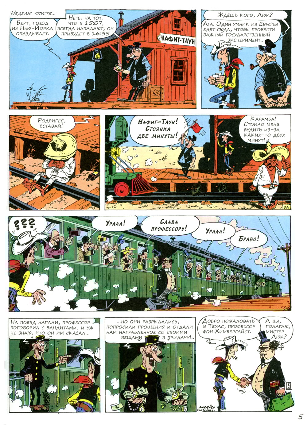 Светило психиатрии из Европы, профессор Отто фон Химбергайст, приезжает в Техас, чтобы в одной из тюрем встретиться с самыми неисправимыми бандитами и излечить их от преступных наклонностей по собственной методике. Отважному ковбою Счастливчику Люку поручено сопровождать профессора и оказывать ему всяческое содействие... Счастливчик Люк, наряду с Тинтином и Астериксом, входит в тройку самых известных персонажей франко-бельгийских детских комиксов. Бесстрашного одинокого ковбоя, который «стреляет быстрее своей тени», придумал в 1947 году художник Морис де Бевер, работавший под псевдонимом Моррис. В 1955 году к нему в качестве сценариста присоединился писатель Рене Госинни. Их дальнейшая совместная работа над серией продлилась более 20 лет, и это время по праву называют «золотым веком» Счастливчика Люка. Каждая история этого цикла - захватывающий комедийный вестерн, в котором находят отражение реальные исторические события, связанные с освоением Дикого Запада. И кстати, в середине 1980-х Морис де Бевер всё же заставил своего главного героя бросить курить! С тех пор вместо, сигареты Счастливчик Люк стал держать во рту соломинку, и за это Всемирная организация здравоохранения даже вручила художнику медаль.| Издательство | Мелик-Пашаев |