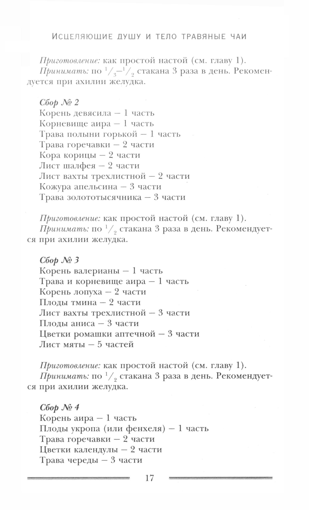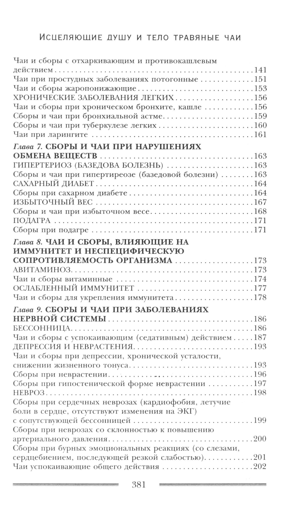 Сейчас, в век технологий, когда нас окружает так много химии, стало как никогда важно уменьшить ее вредное воздействие и укрепить здоровье. Все больше людей сегодня обращаются к многовековому опыту использования целебных, поистине волшебных свойств трав и растительных сборов при лечении огромного количества болезней. В данной книге подобраны эффективные и проверенные как врачебной практикой, так и опытом знахарей рецепты сборов лекарственных трав для использования при многих распространенных заболеваниях. Приведены описания технологии приготовления чаев, настоев, отваров лекарственных растений, а также время их сбора и способы заготовки и хранения. Книга рекомендуется для широкого круга читателей, ценящих собственное здоровье, она будет верным другом и помощником на пути к исцелению от недугов.| Издательство | Центрполиграф |