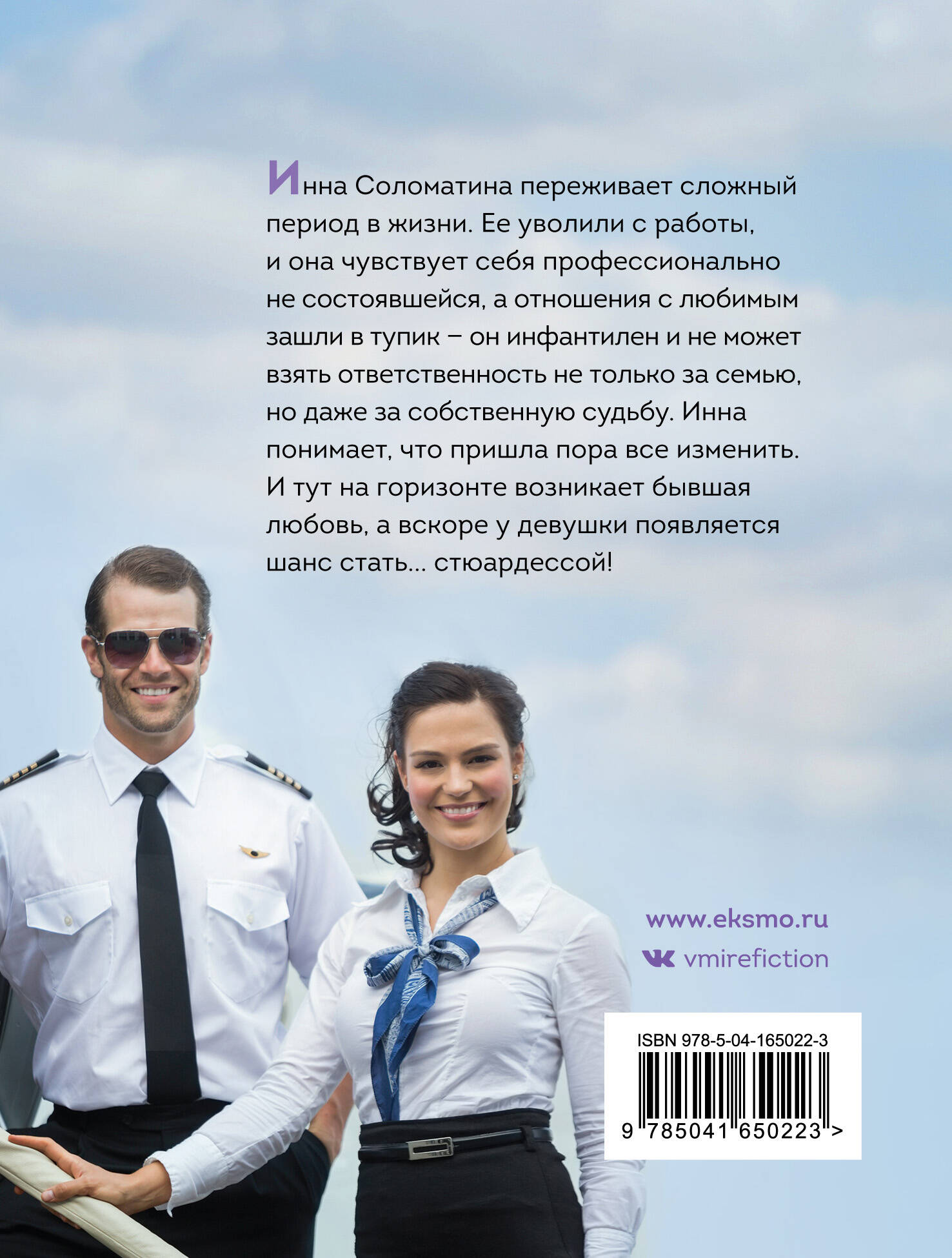 Книги известных российских писателей в новых ярких молодежных обложках. Герои романов - самые обычные люди, которые живут среди нас. Трогательные и душевные истории о любви найдут отклик в сердце каждой читательницы. Инна Соломатина переживает сложный период в жизни. Ее уволили с работы, и она чувствует себя профессионально несостоявшейся, а отношения с любимым зашли в тупик - он инфантилен и не может взять ответственность не только за семью, но даже за собственную судьбу. Инна понимает, что пришла пора все изменить. И тут на горизонте возникает бывшая любовь, а вскоре у девушки появляется шанс стать... стюардессой!| Издательство | Эксмо |