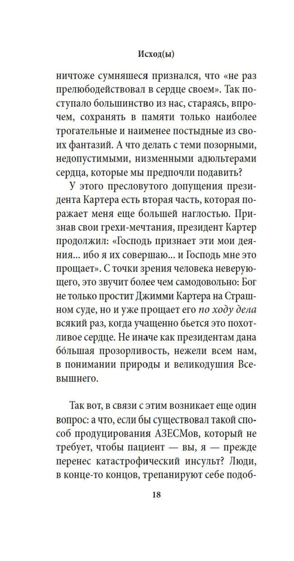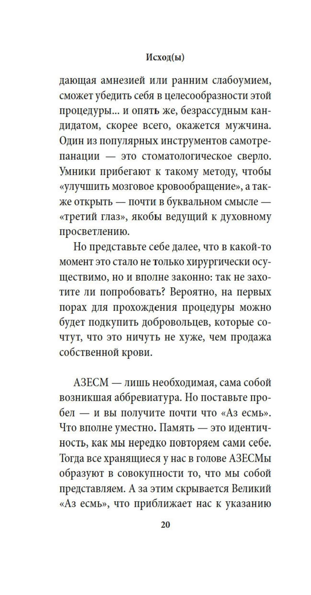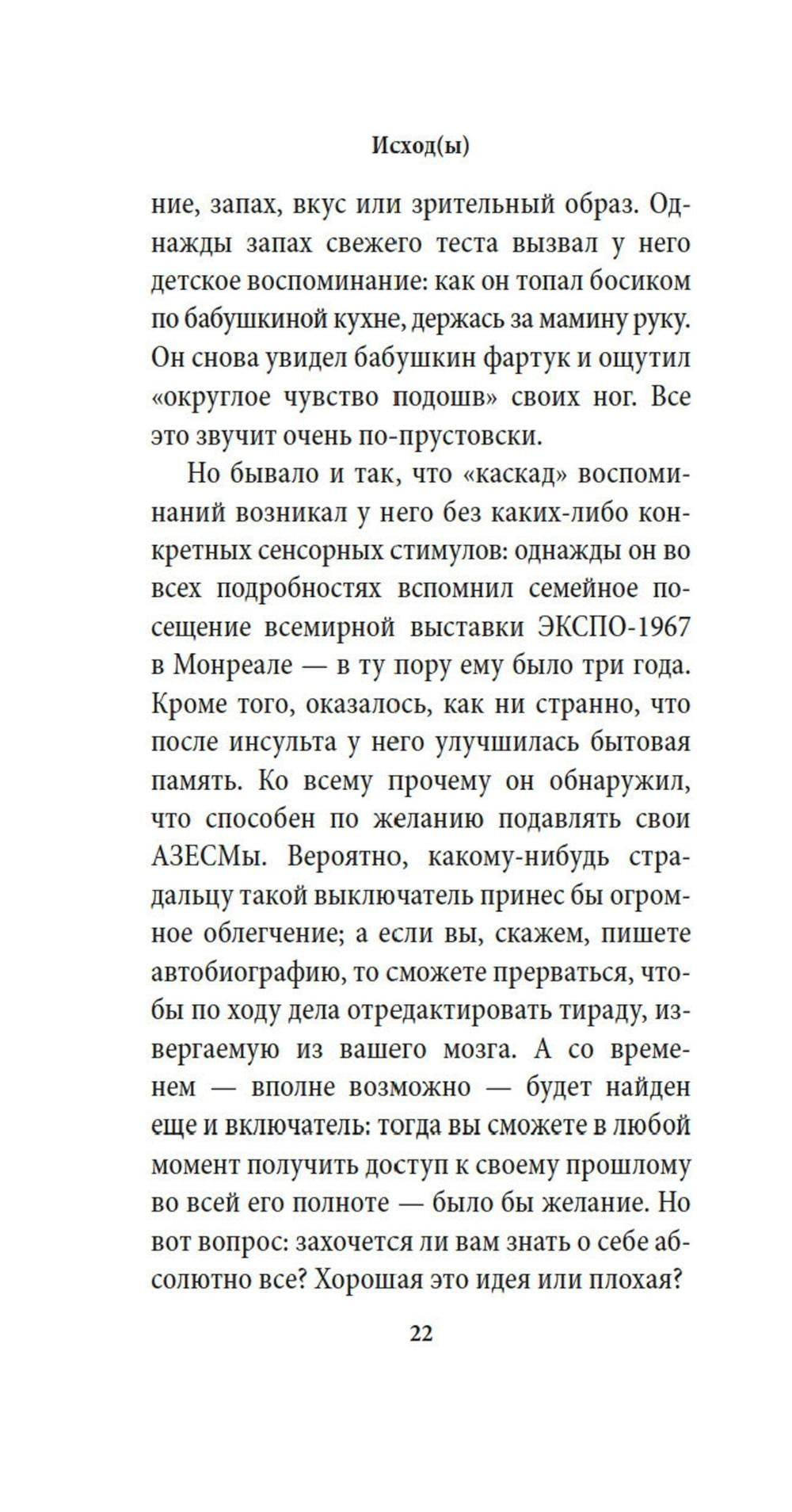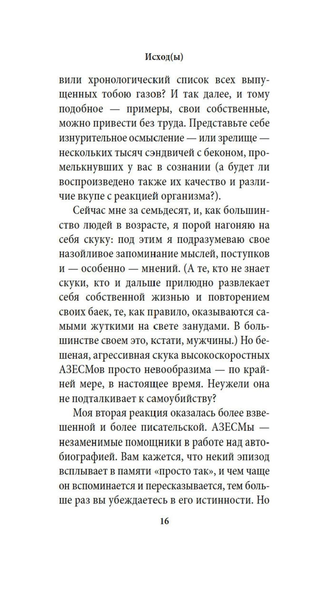 СОДЕРЖИТ ИНФОРМАЦИЮ О НАРКОТИЧЕСКИХ ИЛИ ПСИХОТРОПНЫХ ВЕЩЕСТВАХ, УПОТРЕБЛЕНИЕ КОТОРЫХ ОПАСНО ДЛЯ ЗДОРОВЬЯ. ИХ НЕЗАКОННЫЙ ОБОРОТ ВЛЕЧЕТ УГОЛОВНУЮ ОТВЕТСТВЕННОСТЬ. Впервые на русском - новейший роман современного английского классика, лауреата Букеровской премии, «самого изящного стилиста и самого непредсказуемого мастера всех мыслимых литературных форм» (The Scotsman). «Исход(ы)» публикуются одновременно во многих странах мира в январе 2026 года - к 80-летию «лучшего и тончайшего из наших литературных тяжеловесов» (The Independent). «Книга эта станет для меня последней, - пишет Барнс. - Далее будет рассказана правдивая история, хотя и с некоторыми оговорками». Это художественная литература - но не выдумка. Это история мужчины по имени Стивен и женщины по имени Джин, которые влюбляются в молодости, а потом снова - в зрелости. Это история джек-рассел-терьера по кличке Джимми, который «не знает, молодая он собака или старая», и вообще «не соображает, что он собака». Это история наших отношений с самой памятью и в спонтанно-бытовом, и в каскадно-прустовском смысле; да и есть ли вообще в человеческой личности что-либо сверх накопленных нами воспоминаний?..| Издательство | Азбука |