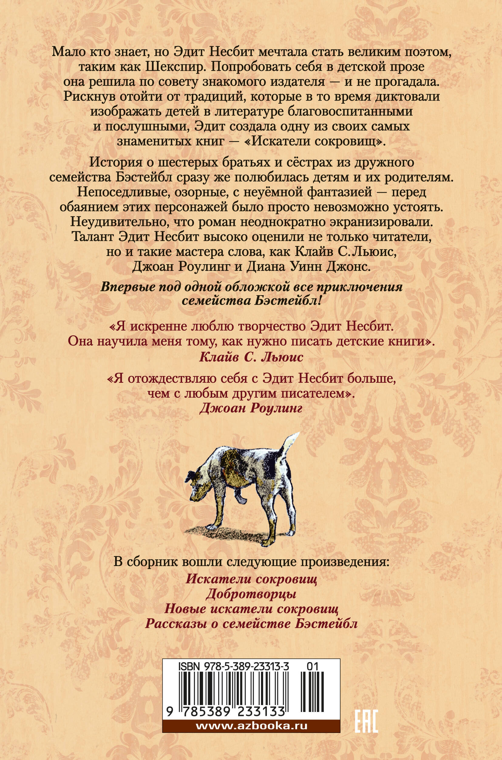 Случается, в дом приходят горе и бедность. Для взрослых это причина расстраиваться, много работать, беспокоиться о вложениях и кредитах. А для детей - отличный повод отправиться на поиск сокровищ. Что и сделали шестеро братьев и сестёр из семейства Бэстейбл. Так они решили помочь своему овдовевшему отцу разбогатеть. Но стоило им только включить воображение, как сразу нашлось ещё множество других нескучных способов пополнить семейный бюджет! Например, издать книгу стихов собственного сочинения, поработать частными детективами и провести расследование или спасти из беды пожилого джентльмена, чтобы тот в знак признательности завещал детям большое наследство. Либо в крайнем случае стать разбойниками и взять в плен ничего не подозревающего беспечного путника. Конечно же, в надежде на выкуп. И это лишь часть увлекательных историй из жизни семейства Бэстейбл, вошедших в настоящий сборник. Благодаря писательскому таланту Эдит Несбит, которым восхищались такие мастера слова, как Клайв С. Льюис, Джоан Роулинг и Диана Уинн Джонс, скучать не придётся даже искушённому читателю.| Издательство | Азбука-Аттикус Издат.группа ООО |