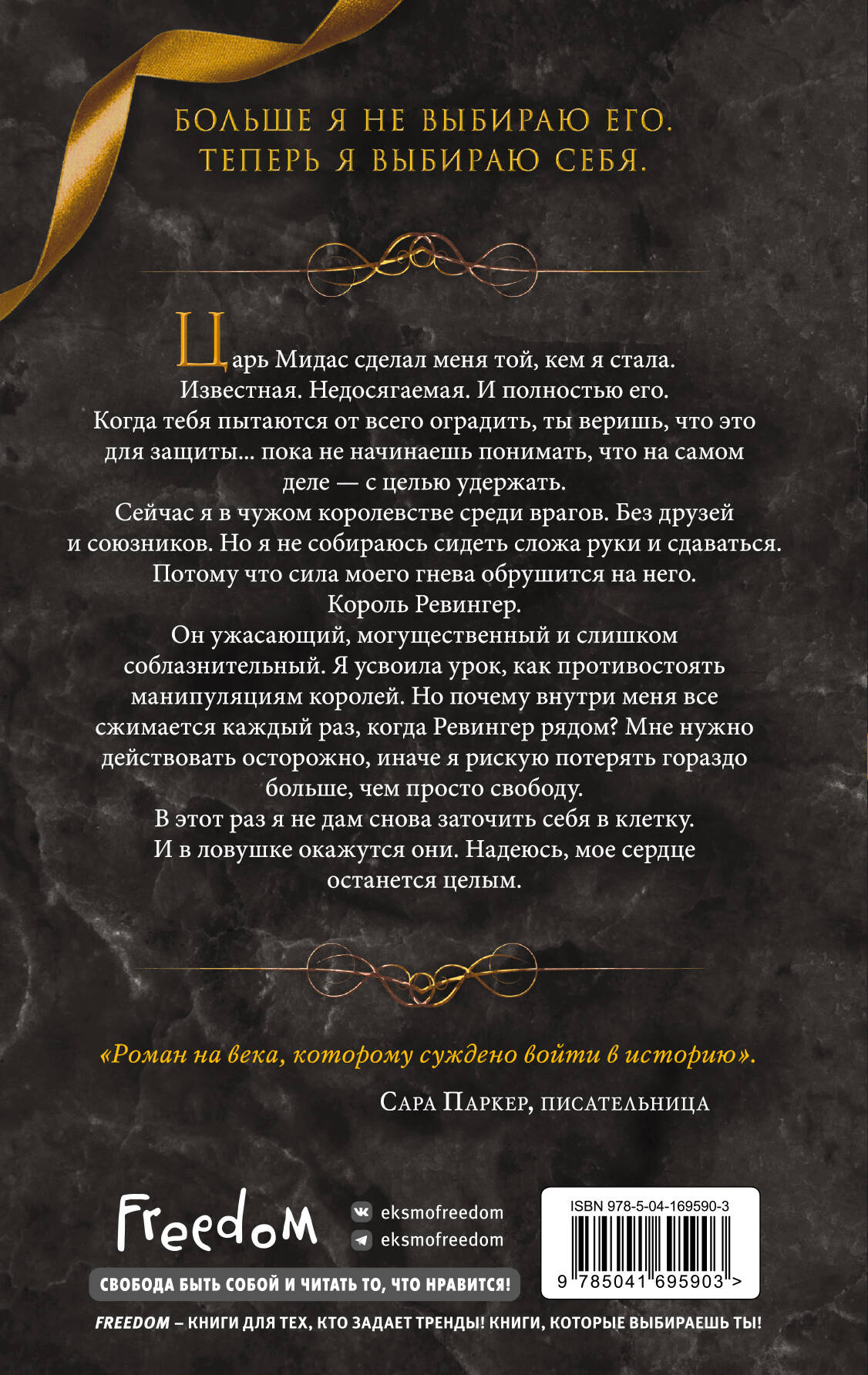 Третья книга серии «Золотая пленница» представляет продолжение поразительной истории, вдохновленной мифом о царе Мидасе! Для всех поклонников романов Дж. Арментроут, Лоры Талассы, Сары Маас! Феноменальная сенсация TikTok! Продано тиражом более полумиллиона книг!!! Невозможно оторваться от этого захватывающего романа-фэнтези со страстными отношениями персонажей и непредсказуемым сюжетом. Сплетение мифологического и фэнтезийного контекстов! Вернитесь к соблазнительной истории волшебства и окунитесь в мир Ореи! Царь Мидас сделал меня той, кем я стала. Известная. Недосягаемая. И полностью его. Когда тебя пытаются от всего оградить, ты веришь, что это для защиты... пока не начинаешь понимать, что на самом деле - с целью удержать. Сейчас я в чужом королевстве среди врагов. Без друзей и союзников. Но я не собираюсь сидеть сложа руки и сдаваться. Потому что сила моего гнева обрушится на него. Король Ревингер. Он ужасающий, могущественный и слишком соблазнительный. Я усвоила урок, как противостоять манипуляциям королей. Но почему внутри меня все сжимается каждый раз, когда Ревингер рядом? Мне нужно действовать осторожно, иначе я рискую потерять гораздо больше, чем просто свободу. В этот раз я не дам снова заточить себя в клетку. И в ловушке окажутся они. Надеюсь, мое сердце останется целым. «Роман на века, которому суждено войти в историю». - Сара Паркер, писательница| Издательство | ООО "Издательство "Эксмо" |