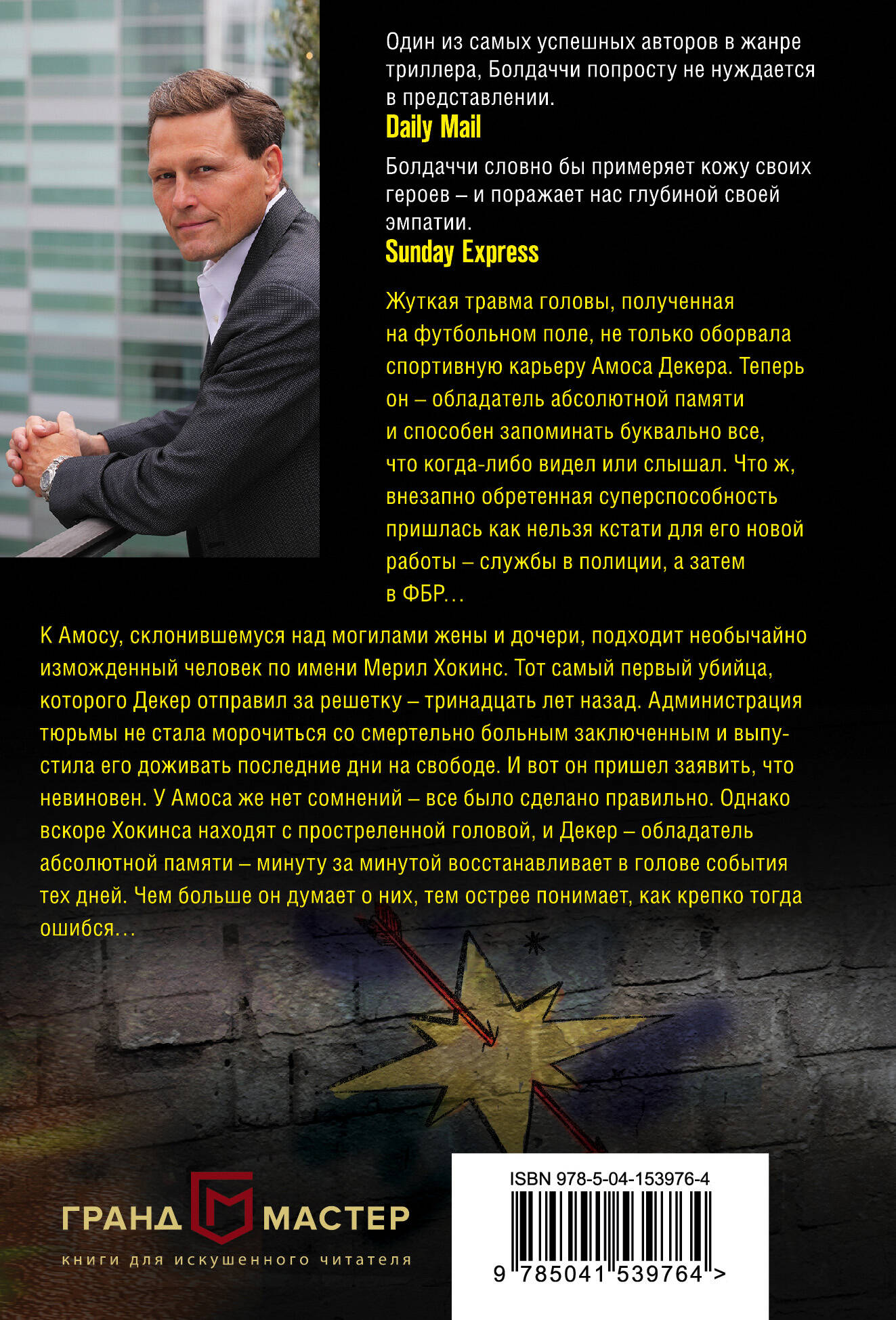 Бестселлер № 1 New York Times. В мире продано более 130 000 000 копий романов автора. Жуткая травма головы, полученная на футбольном поле, не только оборвала спортивную карьеру Амоса Декера. Теперь он - обладатель абсолютной памяти и способен запоминать буквально все, что когда-либо видел или слышал. Что ж, внезапно обретенная суперспособность пришлась как нельзя кстати для его новой работы - службы в полиции, а затем в ФБР… К Амосу, склонившемуся над могилами жены и дочери, подходит необычайно изможденный человек по имени Мерил Хокинс. Тот самый первый убийца, которого Декер отправил за решетку - тринадцать лет назад. Администрация тюрьмы не стала морочиться со смертельно больным заключенным и выпустила его доживать последние дни на свободе. И вот он пришел заявить, что невиновен. У Амоса же нет сомнений - все было сделано правильно. Однако вскоре Хокинса находят с простреленной головой, и Декер - обладатель абсолютной памяти - минуту за минутой восстанавливает в голове события тех дней. Чем больше он думает о них, тем острее понимает, как крепко тогда ошибся… Дэвид Болдаччи - настоящий классик остросюжетного жанра. Он выпустил более 40 произведений, переведенных более чем на 45 языков и вышедших более чем в 80-ти странах общим тиражом более 130 000 000 экземпляров; при этом каждый его роман становился международным мегабестселлером. Его имя занесено в Международный зал славы писателей криминального жанра. Романы Дэвида называл в числе своих любимых президент США Билл Клинтон. По его роману «Абсолютная власть» был снят одноименный киноблокбастер, режиссером и исполнителем главной роли в котором стал Клинт Иствуд. Также по романам Дэвида был снят популярный телесериал «Кинг и Максвелл» (2013). В довершение ко всему, в 1997 году журнал «Пипл» включил Болдаччи в список 50 самых красивых людей планеты. «Очередной великолепный роман выдающегося мастера». - Associated Press «Амос Декер - один из самых необычных сыщиков в литературе, о котором мечтал бы любой писатель остросюжетного жанра». - Washington Post «И снова вы можете произнести слова "Болдаччи", "бестселлер" и "киносценарий", не переводя дыхание». - Chicago Sun «Уже с самой первой книги читатели желают, чтобы Декер появлялся на книжных страницах снова и снова». - Kirkus Reviews «Болдаччи по-прежнему не имеет себе равных». - Sunday Times «Один из самых успешных авторов в жанре триллера, Болдаччи попросту не нуждается в представлении». - Daily Mail «Болдаччи словно бы примеряет кожу своих героев - и поражает нас глубиной своей эмпатии». - Sunday Express| Издательство | ООО "Издательство "Эксмо" |