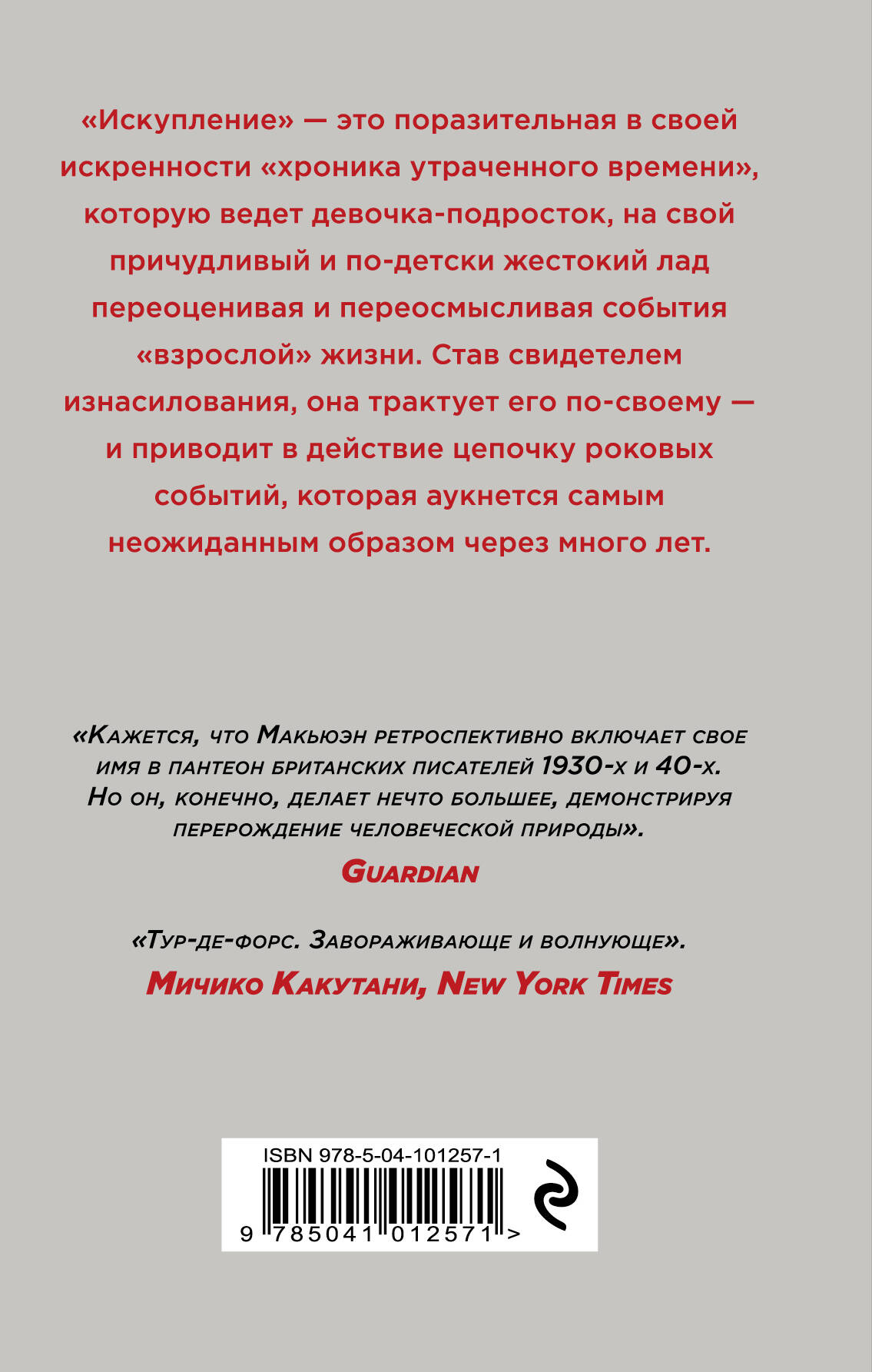 Иэн Макьюэн - один из самых известных писателей Великобритании, автор «Амстердама», «Дитя во времени», «Невыносимой любви» и еще ряда известнейших произведений, за которые был удостоен Букеровской премии. «Искупление» в его библиографии занимает важное место. Это поразительная в своей искренности «хроника утраченного времени», которую ведет девочка-подросток, на свой причудливый и по-детски жестокий лад переоценивая и переосмысливая события «взрослой» жизни. Став свидетелем изнасилования, она трактует его по-своему - и приводит в действие цепочку роковых событий, которая аукнется самым неожиданным образом через много лет.