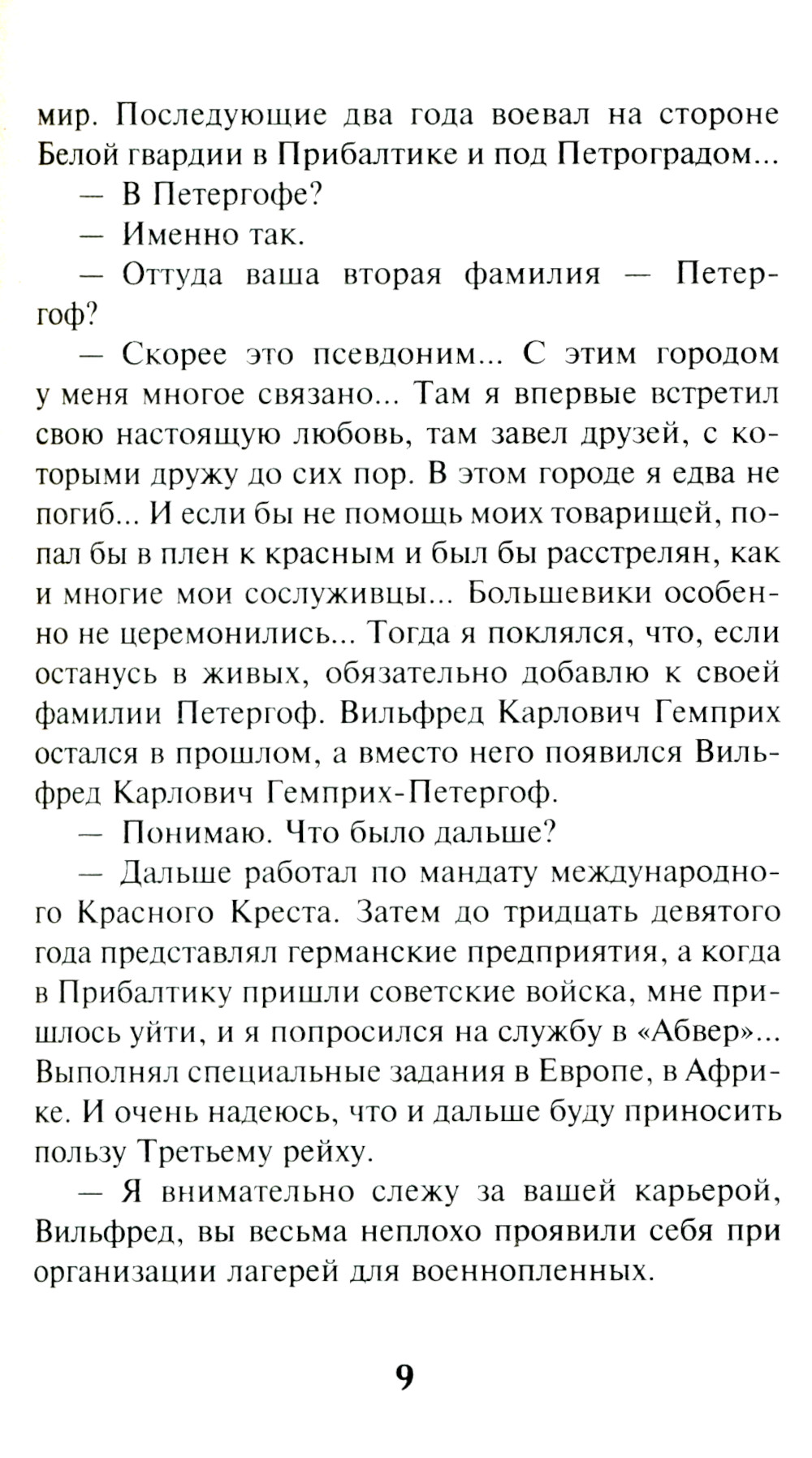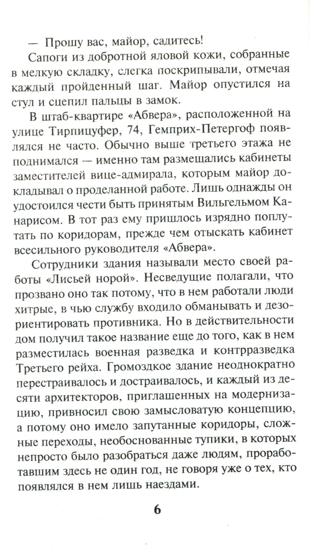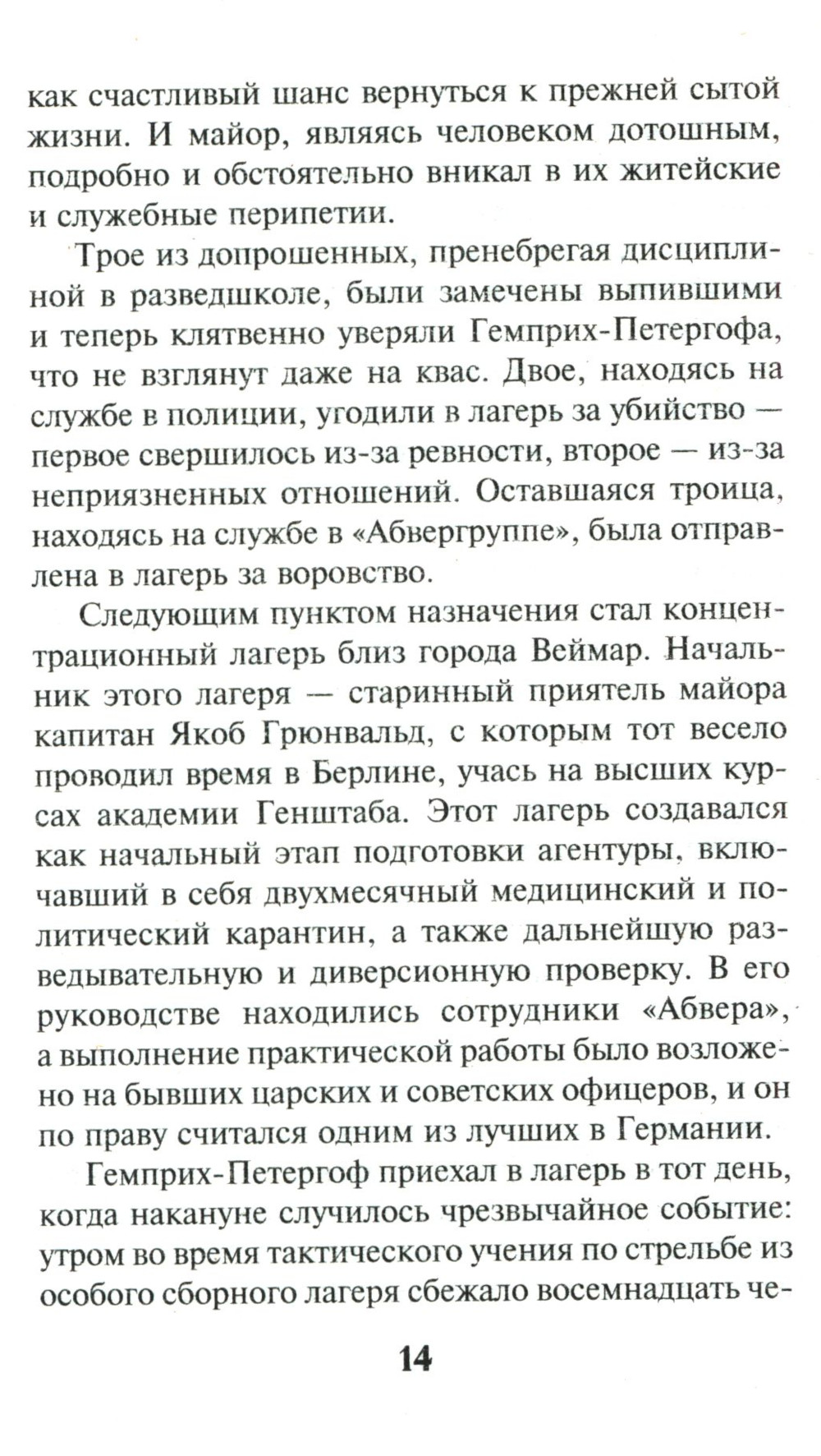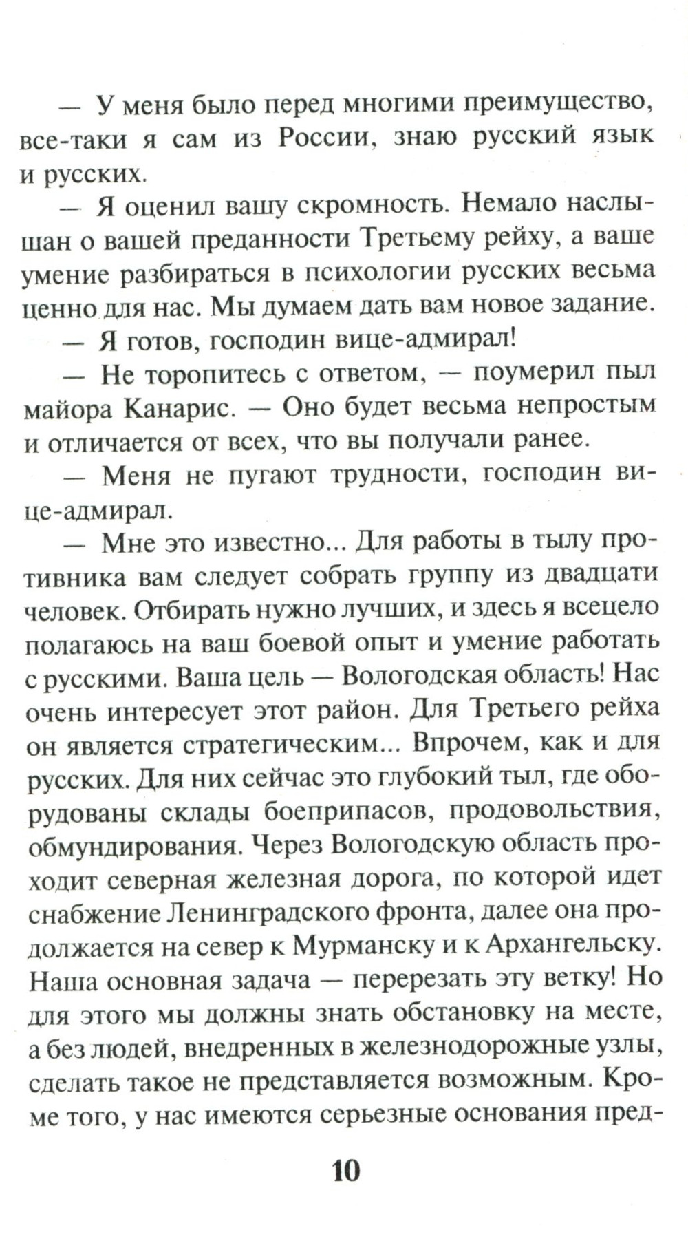 В Вологодскую область заброшена немецкая диверсионная группа. Ее командир, бывший сержант РККА Михаил Аверьянов, - уроженец здешних мест. В немецкой разведшколе он проявил отличные боевые качества и исключительную преданность Рейху. Но на поверку такое старание оказалось маскировкой. Попав на свою территорию, Михаил сдался контрразведке СМЕРШа. После тщательной проверки его привлекают к работе против немцев. Аверьянов пытается искупить свою вину перед Родиной. Но у советской власти к предателям особый счет - суровый и беспощадный…| Издательство | Эксмо |