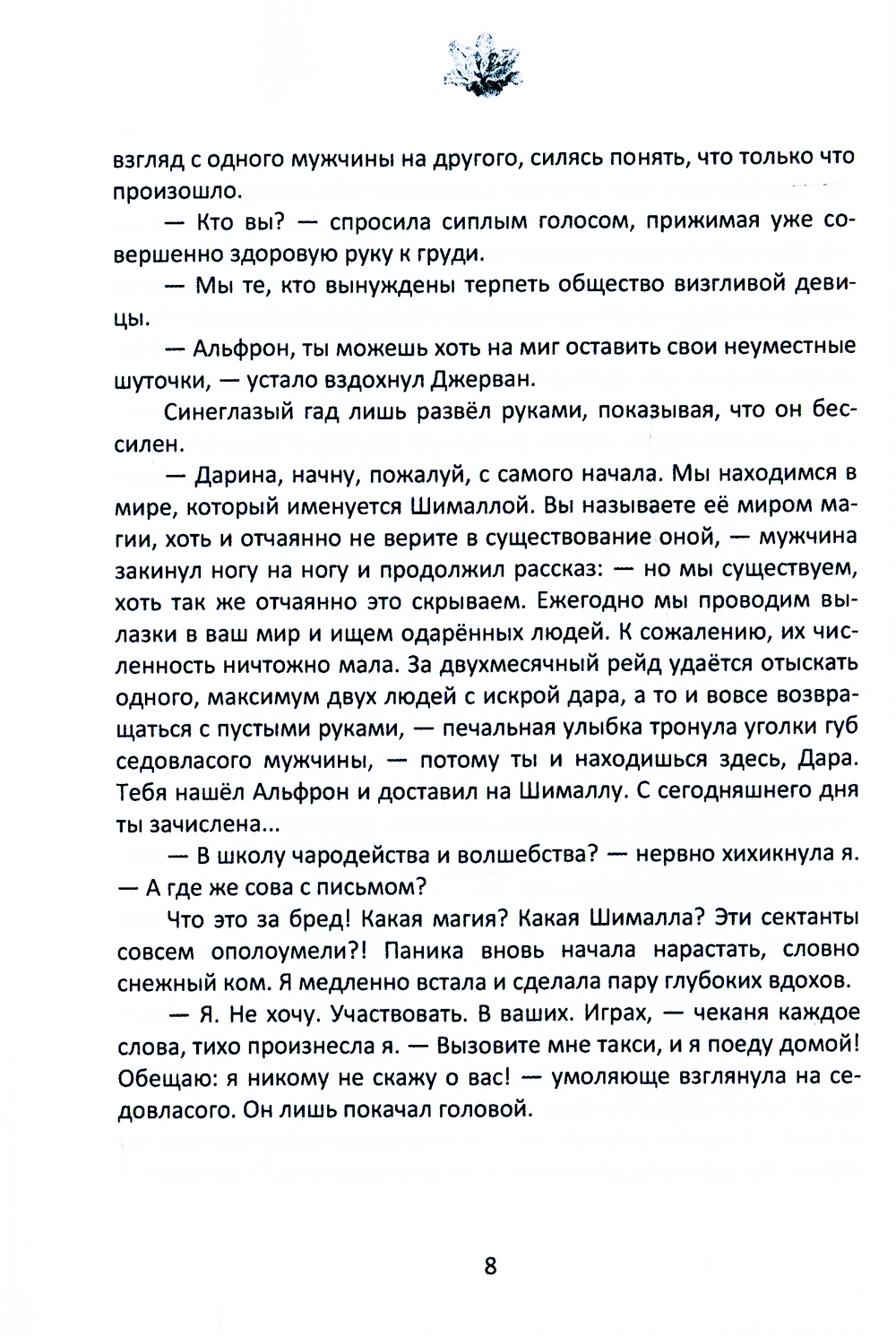 Волшебный мир, в который выдернули одаренную земную девушку, оказывается не очень к ней ласков. Дару зачислили в магическую академию, однако совсем скоро ей приходится бежать оттуда, инсценируя собственную смерть. Всему виной - выявленные особенности дара девушки. Выжить в мире Шималлы ей помогает новый опекун и преподаватель, суровый и придирчивый Альфрон Д'Харн. Таким категоричным его сделало прошлое. Шестнадцать лет назад пропала вся семья Альфрона: отец, мать и две пятилетние сестры, но он их нашел. Точнее, их останки. Теперь же в его жизнь ворвалась иномирянка, как две капли воды похожая на его мать. И проблем у этой девчонки, похоже, выше крыши.| Издательство | Т8 RUGRAM |