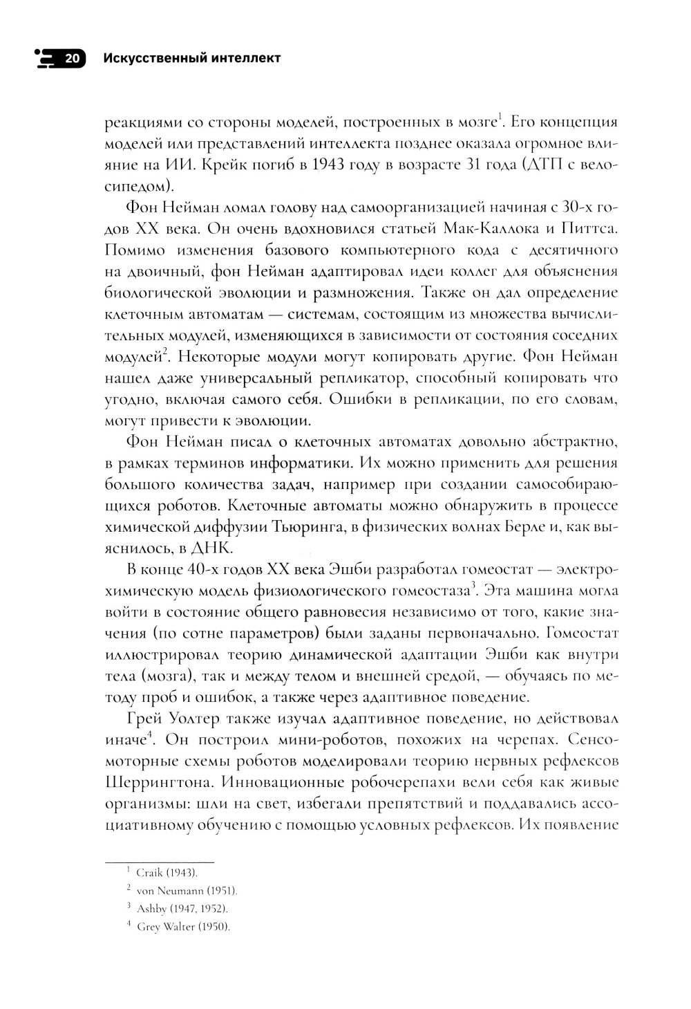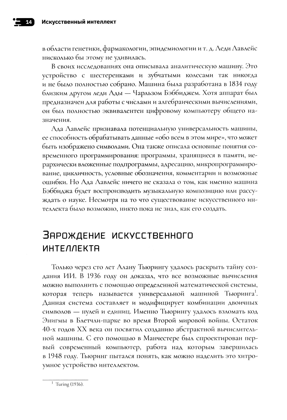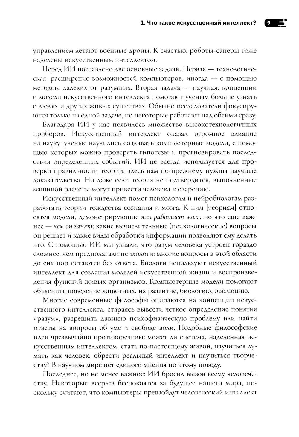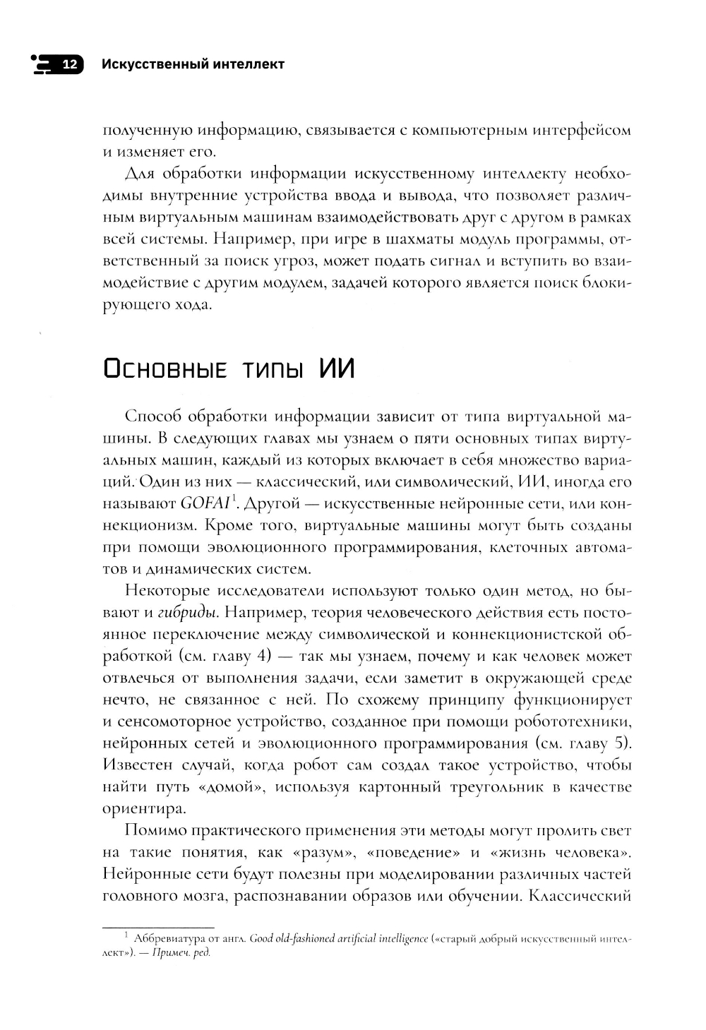 Эта книга не о будущем, а о настоящем: о доказательной когнитивной науке. Когнитивистика развивалась вместе с искусственным интеллектом (ИИ) с середины XX века как исследования на стыке нейробиологии, лингвистики, психологии, программирования. ИИ помог психологам и нейробиологам разработать теории сознания и мозга. Были построены модели некоторых функций мозга человека, разных видов обработки информации, вычислительных и психологических процессов. Исследования идут и в обратную сторону - от ИИ к человеку. Рефлексируя о развитии ИИ, мы узнали, что разум человека устроен гораздо сложнее, чем предполагали психологи. Автор книги Маргарет Боден - профессор когнитивистики Университета Сассекса, кавалер ордена Британской империи. Ее первые статьи были опубликованы в конце 60-х годов XX века. Она до сих пор занимается фундаментальными исследованиями в области ИИ. Но прогресс вычислительной техники для Маргарет Боден всегда был поводом к изучению человека, что подтверждают книги «Искусственный интеллект и естественный человек» (1977), «Координаты творчества» (1994), «Креативный ум: мифы и механизмы» (2004), двухтомник «Мозг как машина» (2006), а также другие многочисленные публикации: в знаменитом журнале Mind, журналах по философии науки и эстетики. Неслучайно ее называют одним из ведущих исследователей творчества и познания, а в 2017 году ей вручили научную премию им. Аллена Ньюэлла за вклад в философию когнитивной науки.