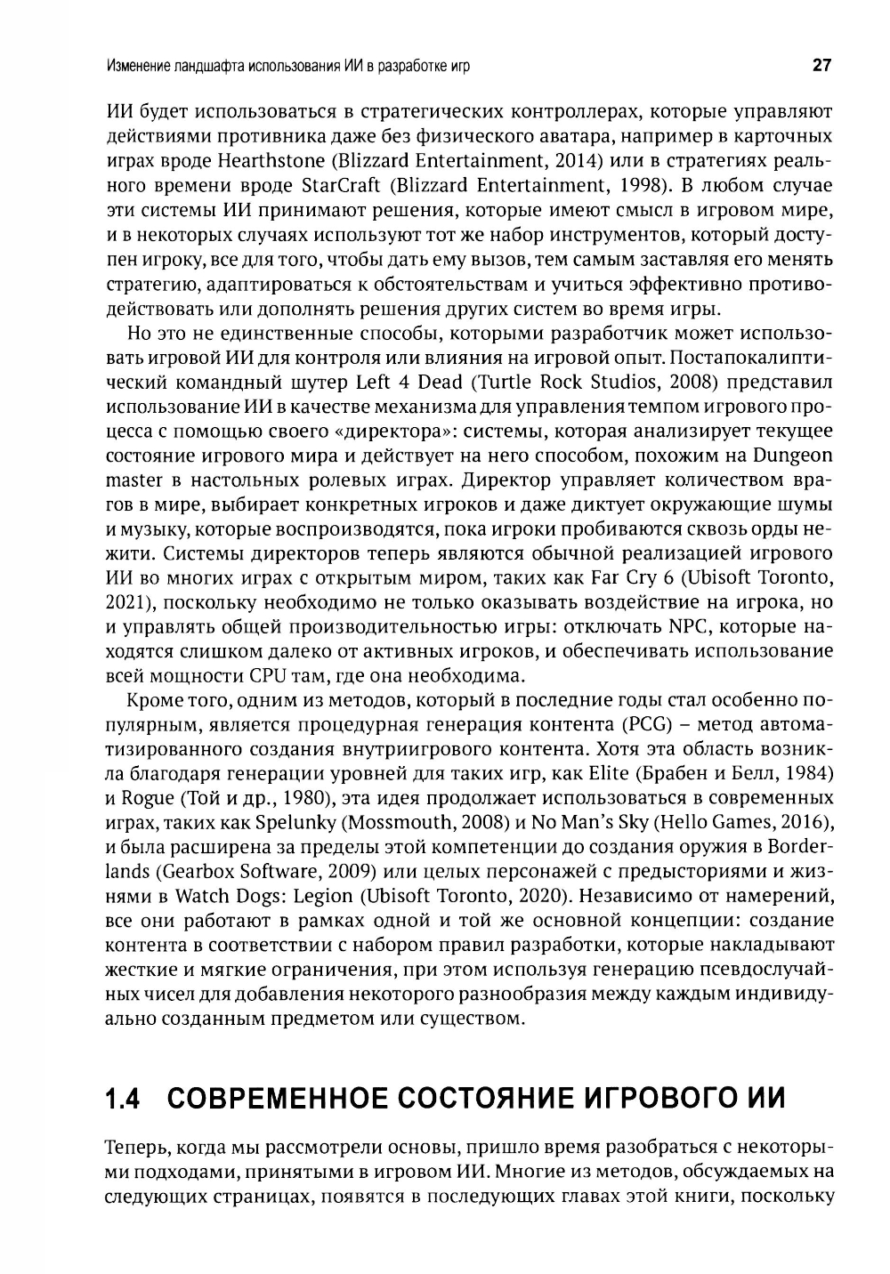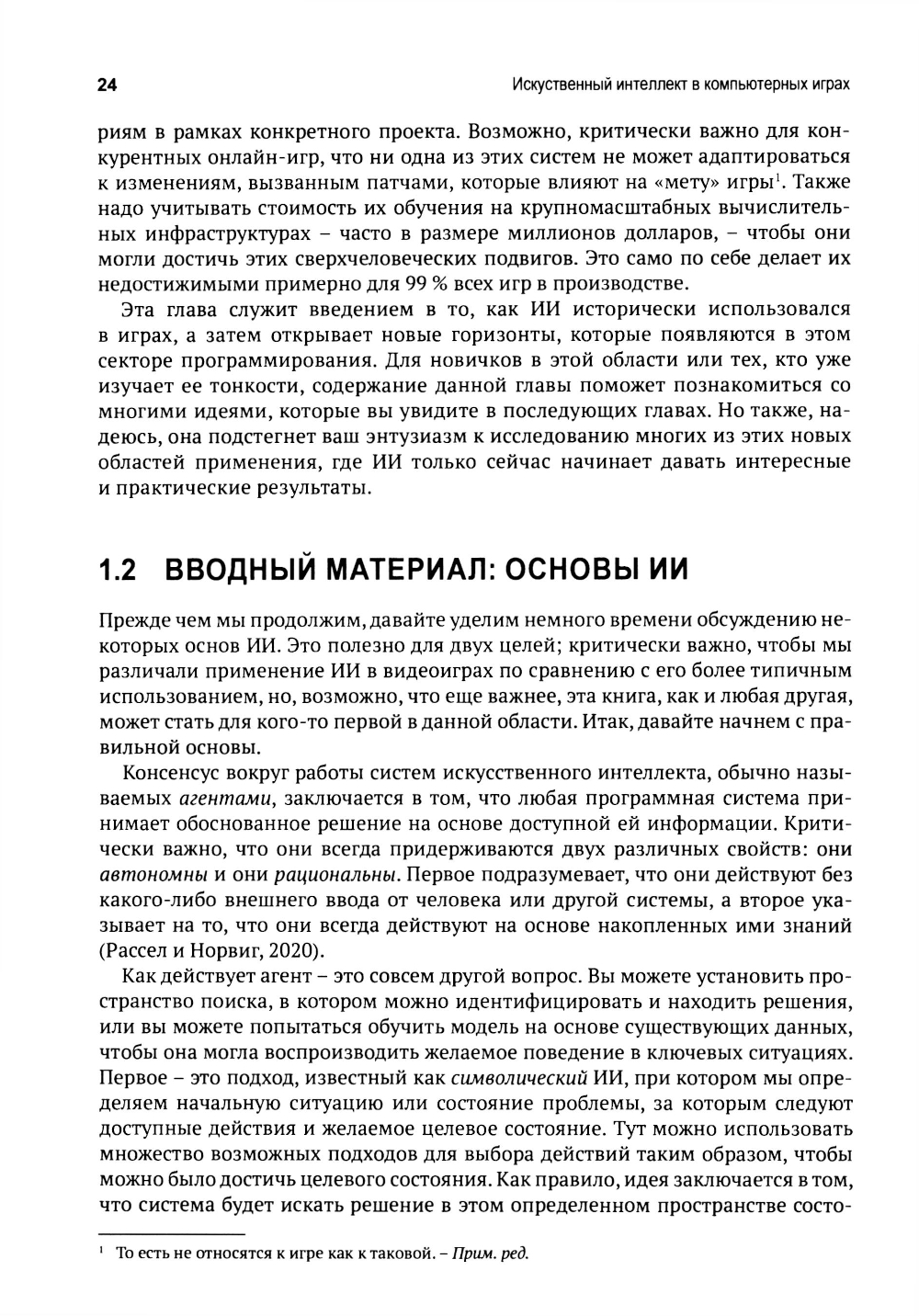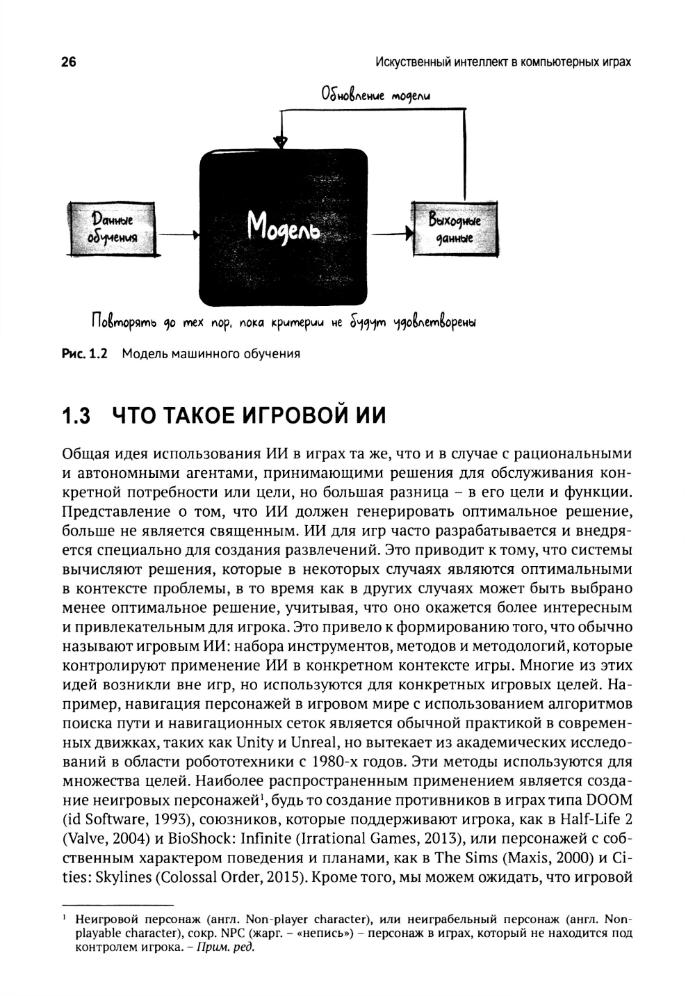 Игровой искусственный интеллект - самая интересная часть разработки игр. Это не умаляет той великолепной работы, которая проделана в области графики, физики, инструментария разработки, звука и других важных компонентов, необходимых для создания игры. Но есть что-то особенное в том, чтобы пробудить в агенте жизнь! Чтобы игрок поверил в иллюзию и остался захваченным ей, используются определенные приемы. Будь то поиск надежного пути через среду, навигация по оживленной улице, общение между агентами или создание архитектуры. Это всегда путешествие, полное открытий. Вы начинаете с базовых идей, и они развиваются, разворачиваются по мере разработки игры! В книге представлены идеи чрезвычайно талантливых программистов и дизайнеров со всего мира, из самых разных студий с целью поделиться их знаниями.