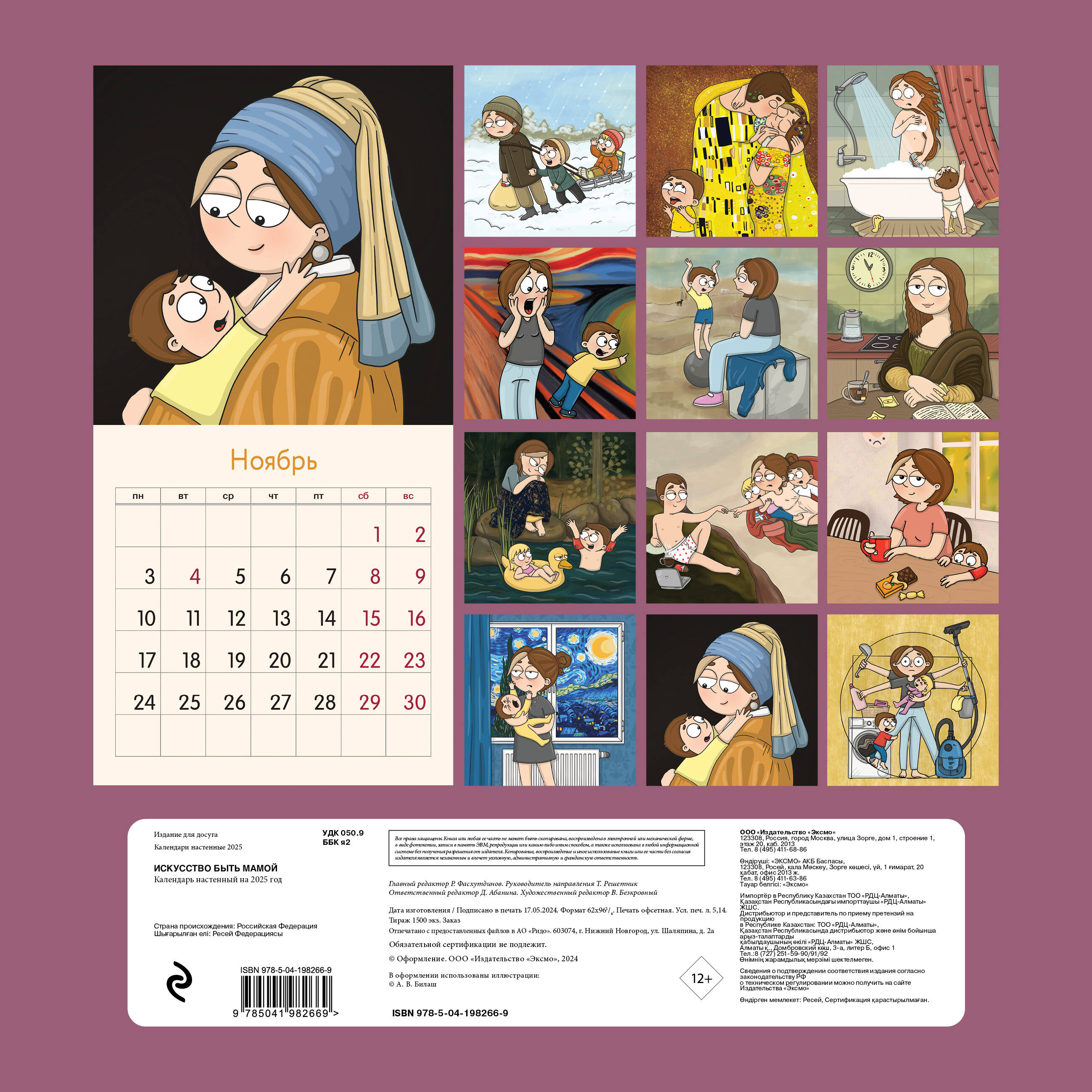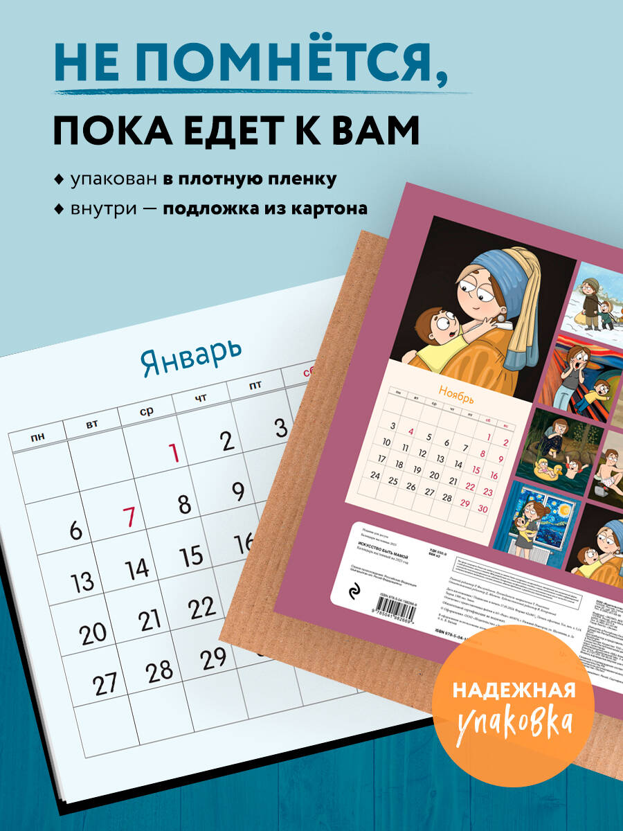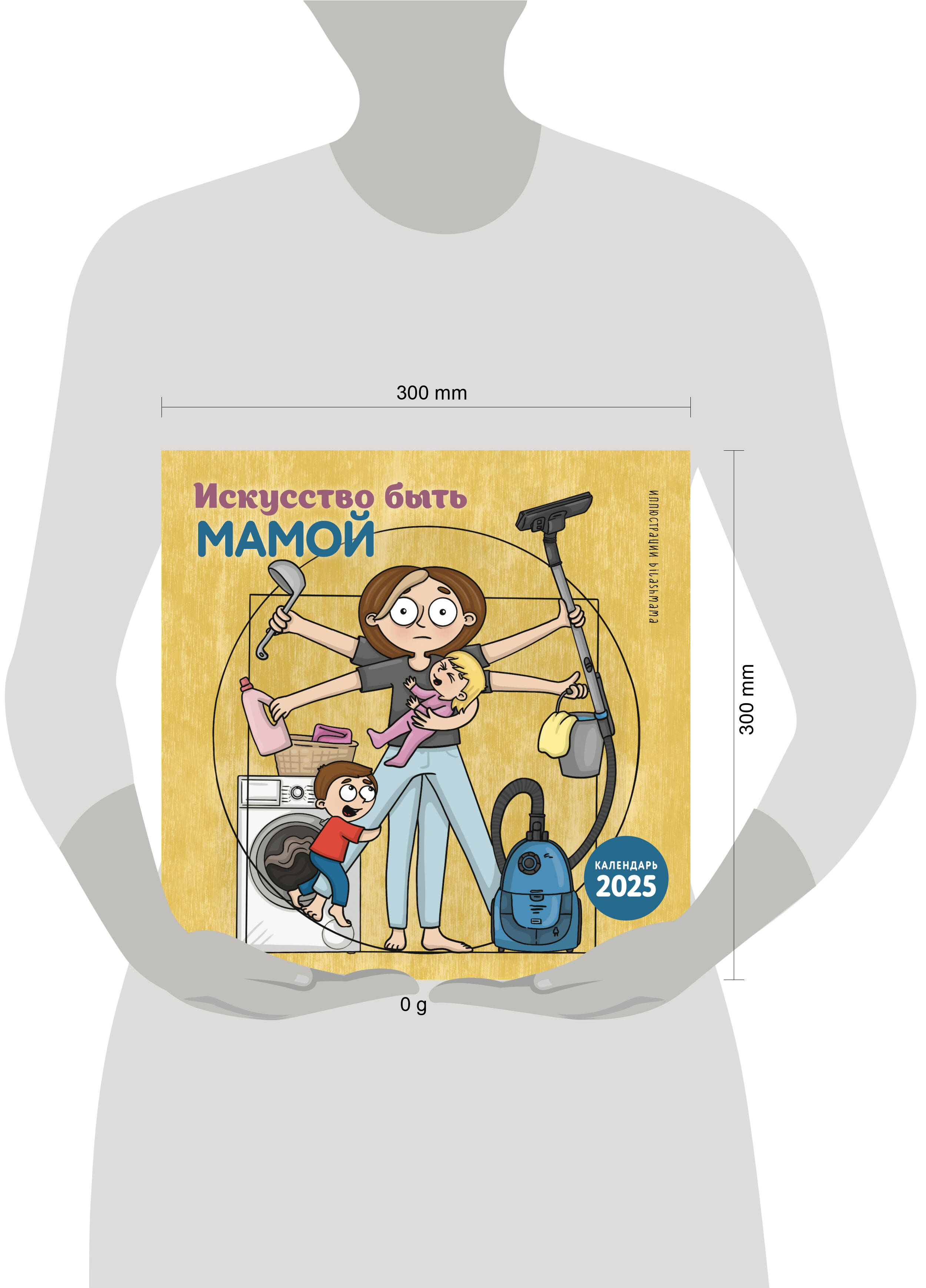 О серии: Наши настенные календари отличаются высоким качеством исполнения! Тщательно подобранные иллюстрации, напечатанные на глянцевой бумаге высочайшего качества, станут настоящим украшением дома, а в календарной сетке найдется место для ваших планов: большие клетки позволят делать записи и организовать свой год! В календаре также отмечены все государственные праздники. О календаре: Забавный милый календарь с иллюстрациями художницы Алины Билаш, автора блога bilasmama (больше 60 тыс. подписчиков), из жизни каждой мамы, которые будут радовать вас каждый месяц. Для кого: Для всех поклонников творчества Алины Билаш. Технические параметры: - Тип календаря - настенный перекидной. - Год - 2025. - Календарная сетка - с разбивкой по месяцам. - Вид скрепления - скрепка. - Ширина - 30 см. - Высота - 30 см. - Внутренний блок - мелованная бумага 115 г/м2. - Подложка - плотный гофрокартон для поддержания формы. - Индивидуальная упаковка в плотный целлофановый пакет.