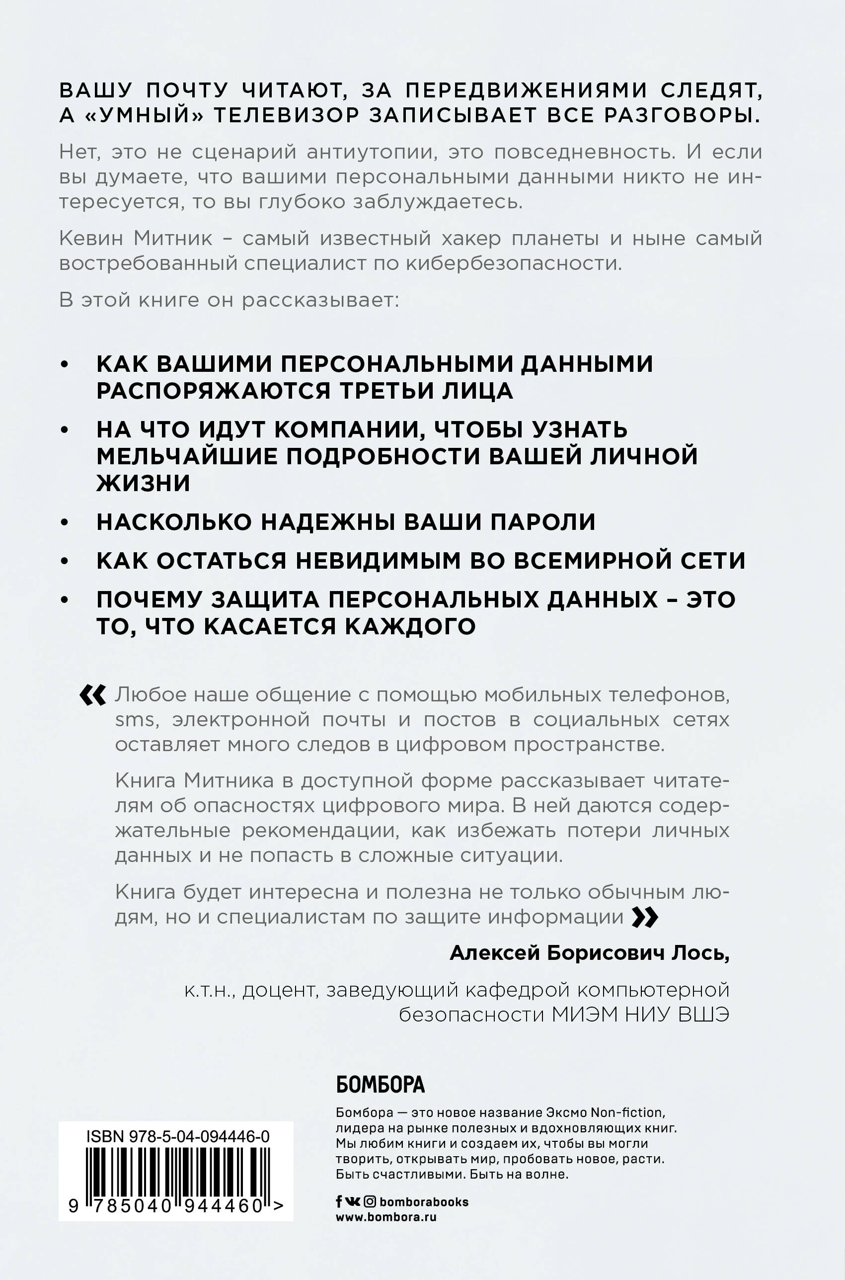 Вашу почту читают, за вашими передвижениями следят, а «умный» телевизор записывает все ваши разговоры. Нет, это не сценарий очередной антиутопии, это наша повседневная жизнь. И если вы думаете, что вашими персональными данными никто не интересуется, то вы глубоко заблуждаетесь. Перед вами новая книга самого известного хакера планеты в прошлом, а ныне самого востребованного специалиста по кибербезопасности - Кевина Митника. Вы узнаете: - Как нашими персональными данными распоряжаются третьи лица. - На что идут компании, чтобы узнать мельчайшие подробности нашей личной жизни. - Насколько надежны ваши пароли. - Как остаться невидимым во всемирной Сети. - Почему защита персональных данных - это то, что касается каждого.| Издательство | ООО "Издательство "Эксмо" |