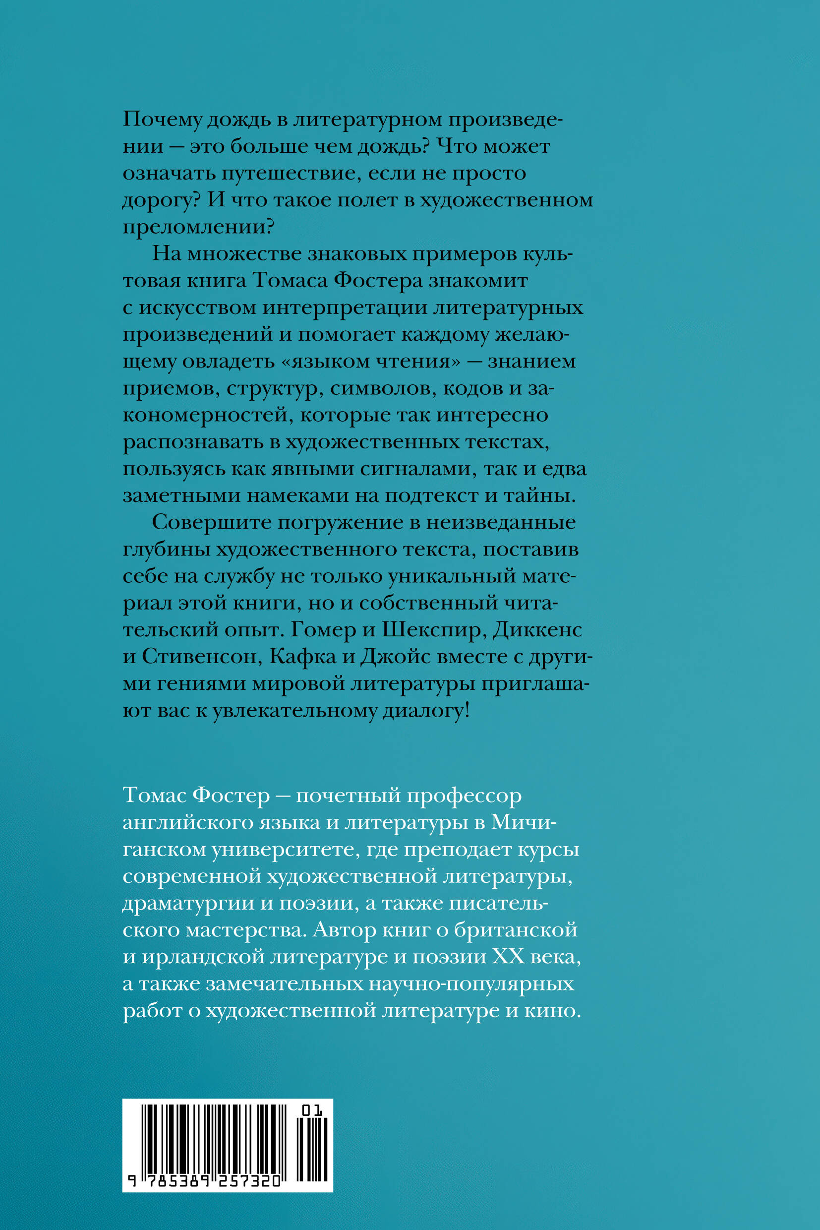 Пока существуют неравнодушные читатели, которым интересны язык, рассказ, поэзия, литературное творчество, будет существовать и литература. Она может перейти в царство цифры, может вернуться к рукописным манускриптам, может обратиться в комиксы или появиться на экране, но ее не перестанут создавать. И читать. Эта книга, ставшая международным бестселлером, помогает взглянуть на литературу глазами самого искушенного из читателей: профессора литературы, и поднять на новый уровень свои навыки чтения. В живой и остроумной манере Томас Фостер интерпретирует особый язык художественной литературы, наполненный символами, образами, параллелями и взаимосвязями. На примере произведений классиков - Шекспира, Гёте, Диккенса, Достоевского, Оруэлла, Кафки, Хемингуэя, Набокова и многих других писателей и поэтов он показывает, как видеть то, что скрыто между строк и расшифровывать многие загадки. Незаменимый помощник всех, кто желает глубже понимать произведения любимых авторов, а также студентов, начинающих писателей, журналистов, преподавателей, литературных критиков. "Эта книга - не свод, не кодекс, не база данных, где хранятся все культурные коды, с помощью которых писатели творят, а читатели понимают их творчество. Это ориентир, руководство к действию - или, если хотите, грамматика, помогающая научиться самостоятельно распознавать коды нашей культуры". (Томас Фостер)