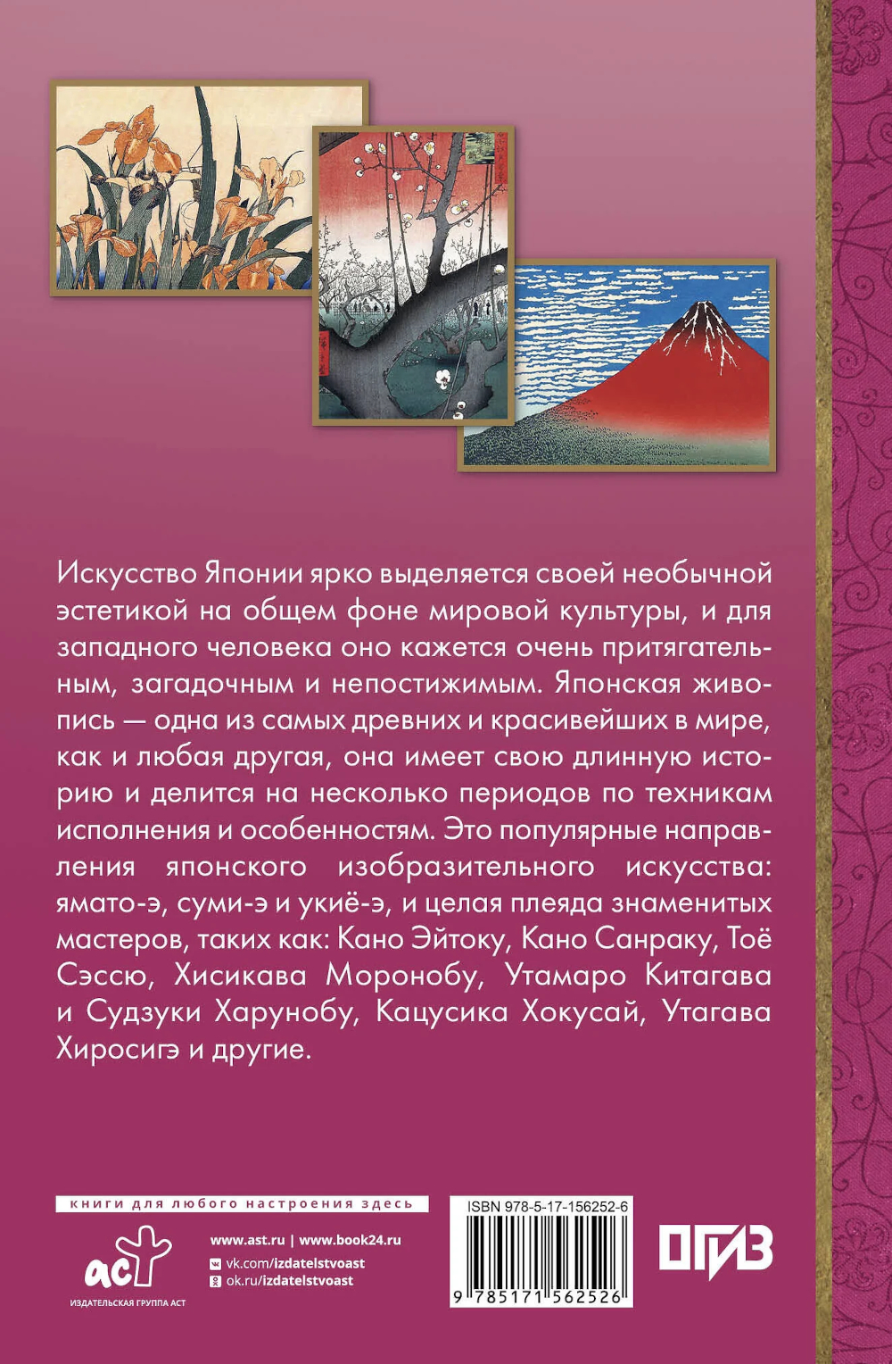Искусство Японии ярко выделяется своей необычной эстетикой на общем фоне мировой культуры, и для западного человека оно кажется очень притягательным, загадочным и непостижимым. Японская живопись - одна из самых древних и красивейших в мире. Как и любая другая, она имеет свою длинную историю. Японскую живопись можно разделить на несколько периодов по техникам и особенностям. Это популярные направления японского изобразительного искусства ямато-э, суми-э и укиё-э и целая плеяда знаменитых мастеров, таких как: Кано Эйтоку, Кано Санраку, Тоё Сэссю Хисикава Моронобу, Утамаро Китагава и Судзуки Харунобу, Кацусика Хокусай, Утагава Хиросигэ и другие.| Издательство | АСТ |
