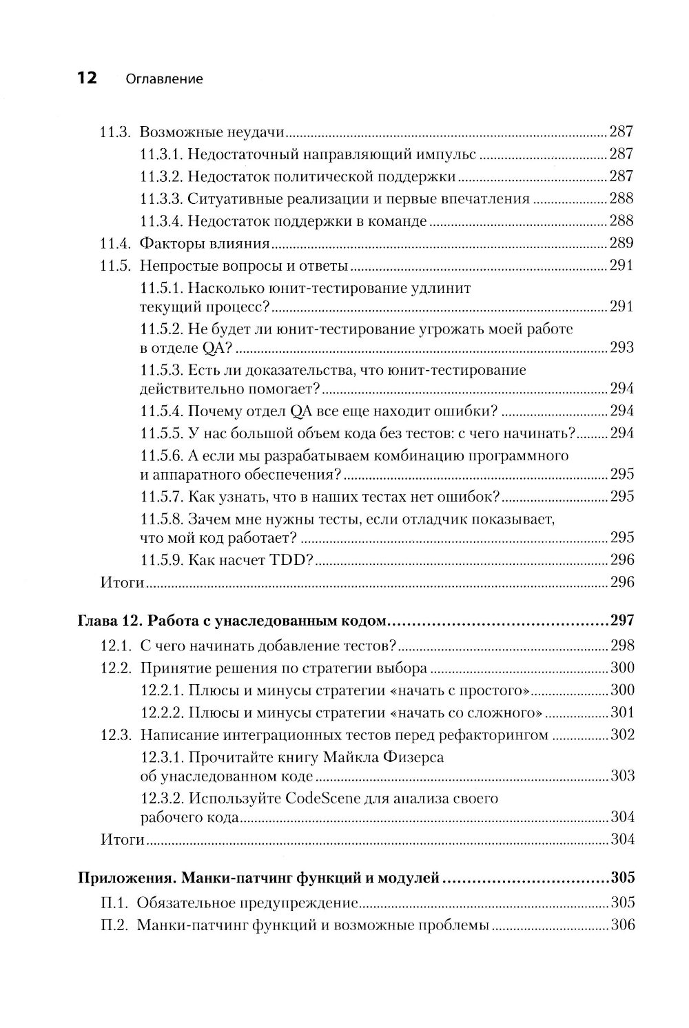 Искусство юнит-тестирования не сводится к изучению правильного набора инструментов и практик. Искусство создавать классные тесты - это понимание сути, поиск верной стратегии для каждого конкретного случая и умение выйти из ситуации, когда тестирование превращается в беспорядочный процесс. Эта книга предлагает советы и рекомендации, которые полностью изменят ваш подход к тестированию ПО. Вы научитесь создавать читабельные и простые в сопровождении тесты, изучите стратегии тестирования в масштабах организации, диагностику проблем, работу с унаследованным кодом и «бескомпромиссный» рефакторинг. Книга насыщена практическими примерами и знакомыми сценариями. Третье издание было дополнено методами, присущими объектно-ориентированному, функциональному и модульному стилю программирования. В примерах используются JavaScript, TypeScript и Node.js.| Издательство | Питер |