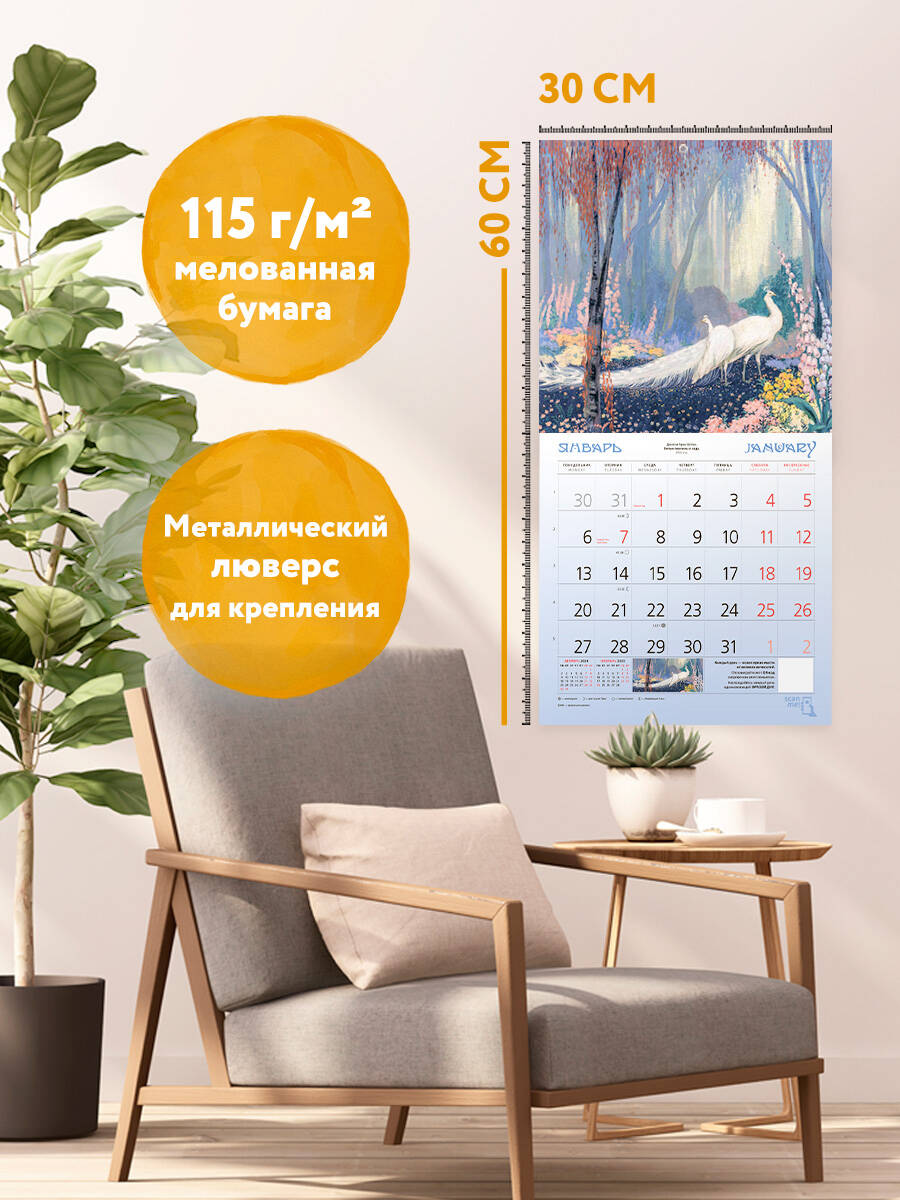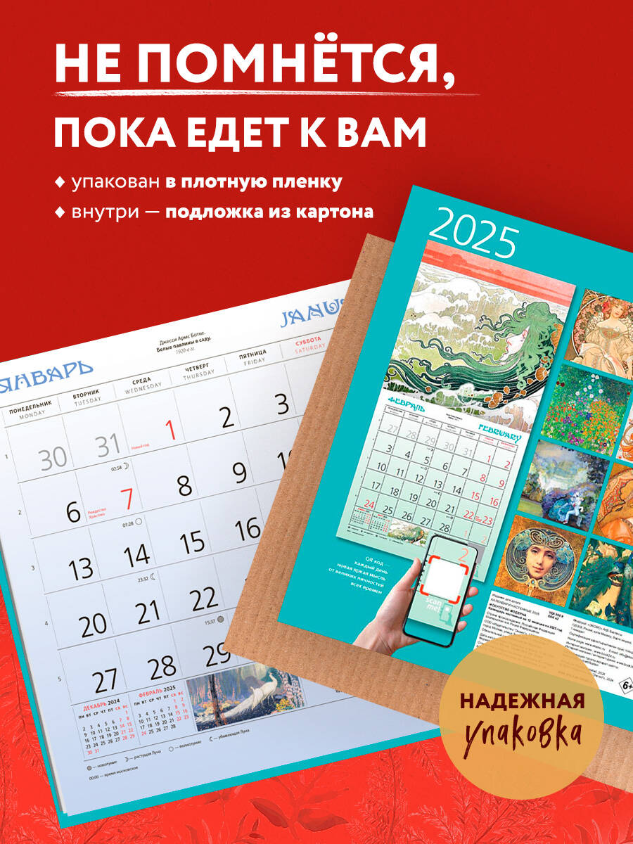 О календаре: В этом настенном перекидном календаре на 2025 год представлены картины художников самого изысканного времени в истории человечества - Прекрасной эпохи. Эстетика арт-нуво - волнующая, эстетичная, модерная. Belle Epoque - это сценарий жизни, в котором мечта о красоте окружающего мира получает вещественное воплощение в каждой, даже самой незначительной вещи. Календарь достойно украсит интерьер вашего дома или рабочего места. А календарный блок напомнит о важных событиях года. В центре календаря помещен большой арт-постер, который может стать отдельным декоративным украшением интерьера. О серии: Наши настенные календари отличаются высоким качеством исполнения! Тщательно подобранные иллюстрации, напечатанные на глянцевой бумаге высочайшего качества, станут настоящим украшением дома, а в календарной сетке найдется место для ваших планов: большие клетки позволят делать записи и организовать свой год! В календаре также отмечены все государственные праздники. В серии настенных календарей издательства «ЭКСМО» каждый найдет тему по вкусу: великие художники, великолепные подборки с самыми знаменитыми произведениями искусства, легендарные кинематографические саги и игры, главные книжные авторы и бестселлеры, фотографии и иллюстрации любимых животных и многое-многое другое! Для кого: Высокое качество полиграфического исполнения прекрасно дополняет репродукции шедевров живописи, что непременно будет по достоинству оценено людьми с хорошим вкусом. Технические параметры: Тип календаря - настенный перекидной Год - 2025 Календарная сетка - с разбивкой по месяцам Вид скрепления - скрепка Ширина - 30 см Высота - 30 см Внутренний блок - мелованная бумага 130 г/м2 Подложка - плотный гофрокартон для поддержания формы Индивидуальная упаковка в плотный целлофановый пакет.