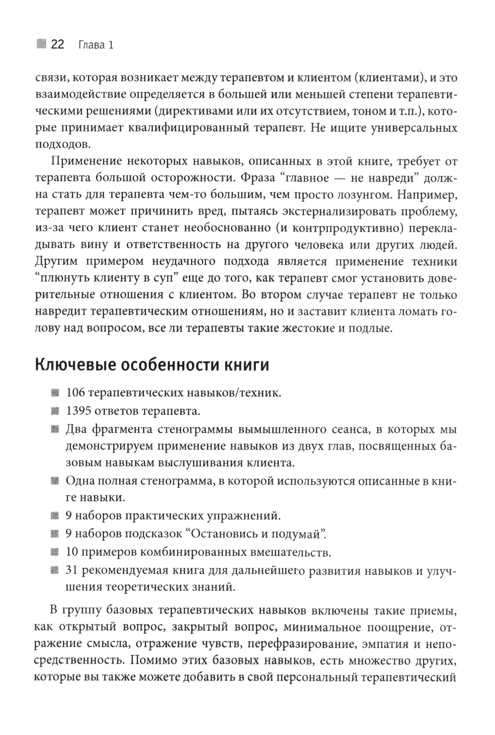 Данное пособие предназначено в первую очередь для студентов, изучающих психологическое консультирование. Книга включает более ста методик и свыше тысячи полезных фраз и клише, которые помогут консультанту создать прочный терапевтический альянс и повысить эффективность сеансов. Авторы рассматривают проверенные навыки и приемы психотерапии, соответствующие наиболее распространенным методикам консультирования, таким как КПТ, краткая и гештальт-терапия, семейные и групповые занятия, а также арт-терапия. Помимо этого, приводятся рекомендации по выбору терапевтических подходов, задания для самостоятельной работы и стенограммы сеансов, в которых собраны примеры использования терапевтических клише.| Издательство | Вильямс |