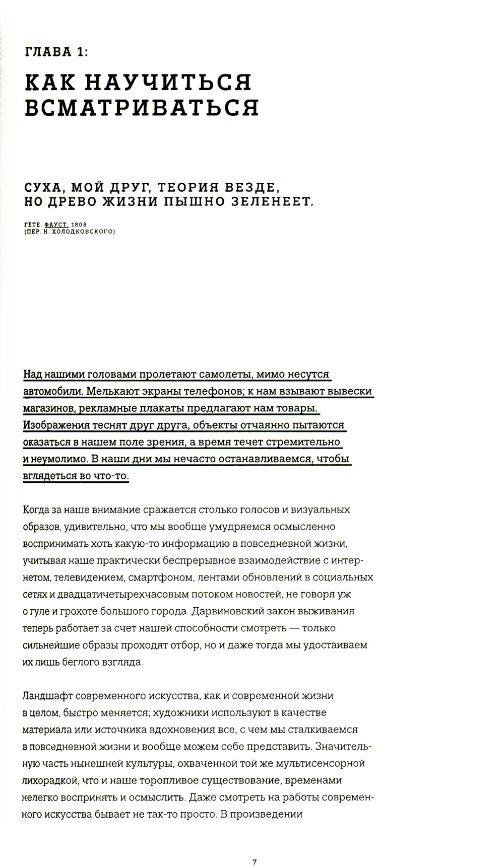 Нет ничего зазорного в том, чтобы пристально рассматривать произведение искусства. Даже наоборот: это минимум того, что вы можете сделать. Остановитесь. Дышите. Расслабьтесь. Не думайте, просто смотрите, впустите его в себя. Впитайте окружающую обстановку, ощутите пространство перед собой, освободите сознание, дайте внутреннему монологу отойти на второй план, а глазам - привыкнуть. Когда вы в последний раз позволяли себе такое? Поскольку я художественный критик по профессии, моя работа - препарировать красоту и рассуждать о глубине, но даже мне приходится заставлять себя не спешить с выводами.| Издательство | Ад Маргинем Пресс |